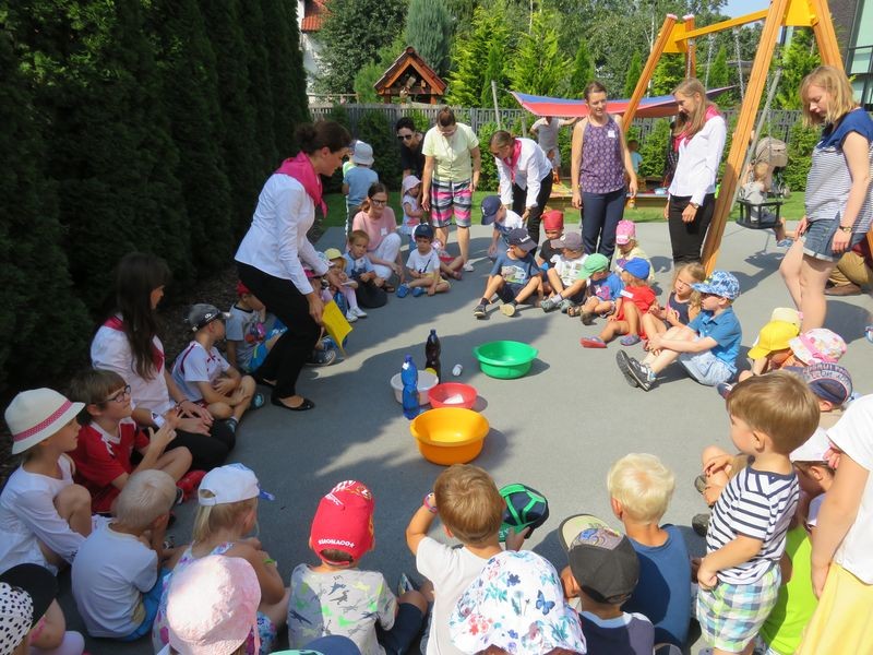 W pierwszym dniu przedszkola Dzieci powitały lody na drugie śniadanie i było...pysznie :) Następnego dnia w przedszkolu pojawił się..."Cyrk"! Tylko czy to na pewno przedszkole? I czy to Panie Nauczycielki? Pani Clown - Monika - żonglowała piłeczkami i nauczyła wszystkie Dzieci tej "sztuczki"; trzeba było też wykazać się dużą zręcznością podczas zabawy z liną, a co odważniejsze Dzieci "wchodziły" w rolę Pani Moniki. Pani Akrobatka - Agnieszka - pokazała Dzieciom najciekawsze sztuczki gimnastyczne - skoki przez przeszkody, rzuty do celu i chodzenie po linie, co wymagało niezwykłej precyzji i równowagi. Pani Iluzja - Diana -A tu się działo: Dzieci wywołały królika, odnalazły zaginioną piłkę i zatańczyły radosny taniec z wstążkami. a na koniec zabawy Dzieci i Panie nauczycielki przygotowały prawdziwą niespodziankę!