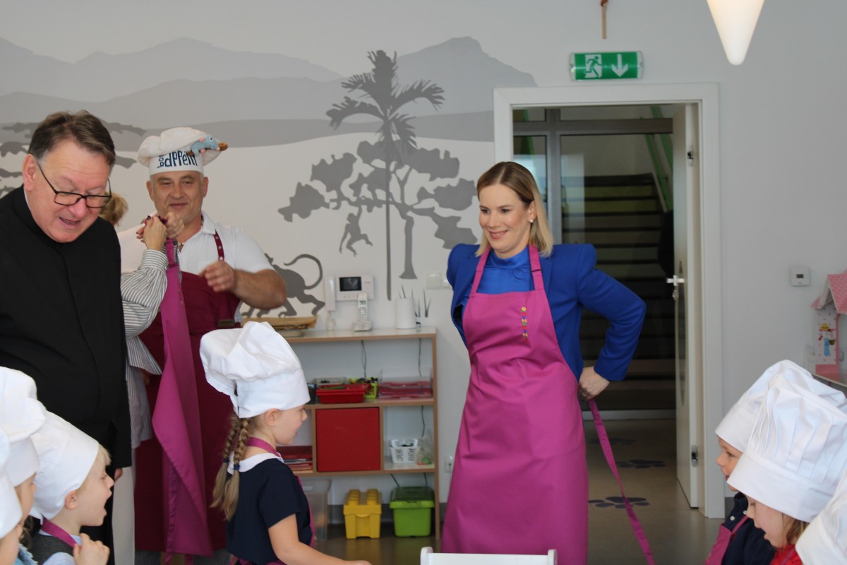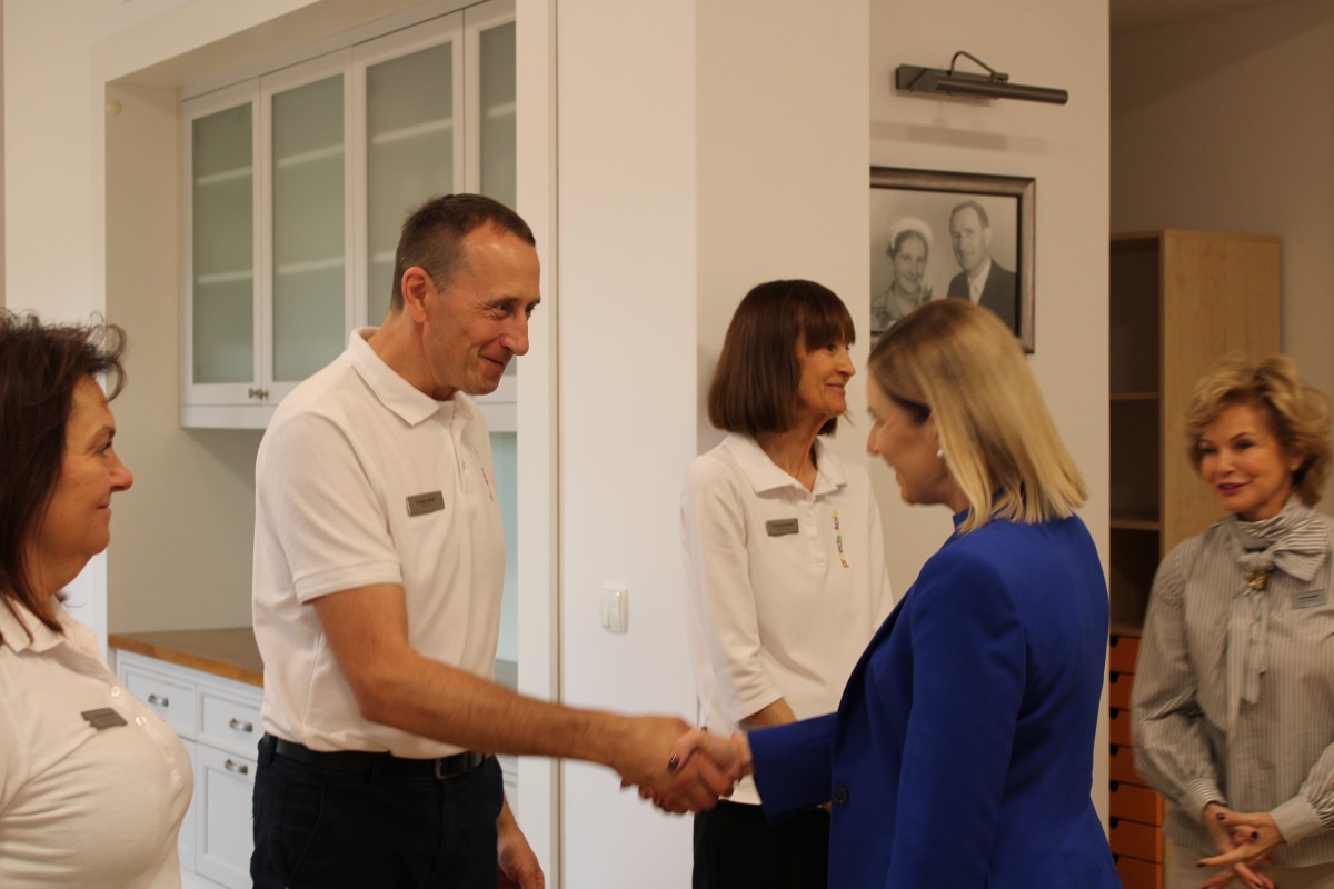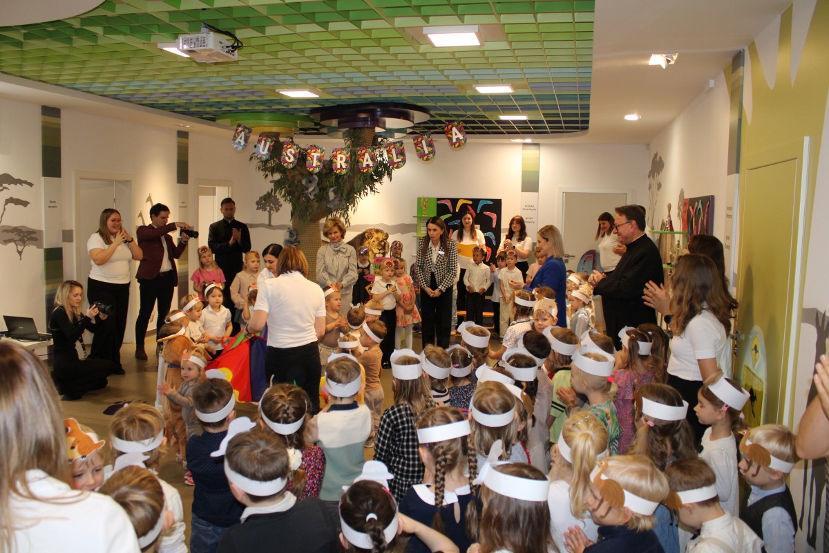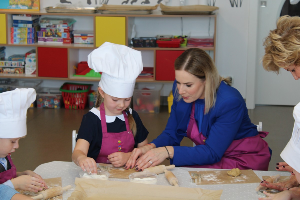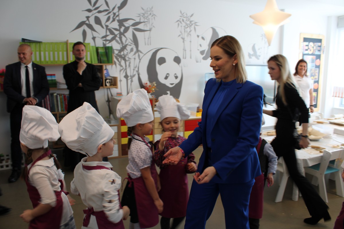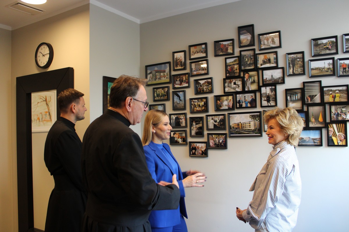 Wizyta Małżonki Prezydenta Polski, Pani Marty Nawrockiej w Pijarskim Przedszkolu w Warszawie, 13.10.2025 r.W ramach trwającego Jubileuszu Pijarskiego Przedszkola w Warszawie i przed dzień Święta Edukacji Narodowej odwiedziła nas Małżonka Prezydenta Polski - Pani Marta Nawrocka. Po przywitaniu przez Dyrekcję Przedszkola Panią Ewę, Panią Agnieszkę, o. Bogdana SP i o. Rafała SP, Rektora Kolegium Zakonu Pijarów Pierwsza Dama zwiedziła nasze przedszkole. Na początku zobaczyła salę poświęconą Państwu Halinie i Kazimierzowi Wąsowskich, naszym darczyńcom, następnie kuchnię a także spotkała się z jej personelem. Pani Dyrektor Ewa zapoznała naszego Gościa z historią Pijarskiego Przedszkola i pokazała galerię zdjęć z jego budowy. Dzieci z wychowawcami oraz pracownicy przedszkola były zebrane na holu pod Baobabem, gdzie Pani Dyrektor Ewa przywitała Małżonkę Prezydenta Polski, dzieci oraz pracowników przedszkola. Pani Wicedyrektor Agnieszka zaprosiła wszystkich do obejrzenia występu Grupy Kangury. W ramach programu „Mały Europejczyk zwiedza świat” dzieci z opiekunkami przedstawiły nam Australię i zwierzątka tam żyjące oraz zaśpiewały i zatańczyły piosenkę o kangurkach. Następnie dzieci z grupy Pingwiny zadawały małżonce Prezydenta Polski pytania. Po pytaniach przedszkole zaśpiewało piosenkę o św. Józefie Kalasancjuszu pt. „ W dalekiej Hiszpanii”. Następnie nasz Gość uczestniczył w warsztatach kulinarnych z grupą Pandy, gdzie wspólnie z dziećmi Pierwsza Dama robiła ciasteczka w kształcie kangurków. Na zakończenie delegacja dzieci podziękowała Małżonce Prezydenta Polski Pani Marcie Nawrockiej za wizytę wręczając własnoręcznie wykonaną laurkę oraz bukiet kwiatów.Wspólnota Pijarskiego Przedszkola w Warszawie bardzo dziękuje Pierwszej Damie za poświęcony czas, przemiłą wizytę oraz za prezenty przekazane wszystkim przedszkolakom i żłobkowiczom - piękne gry i książki.