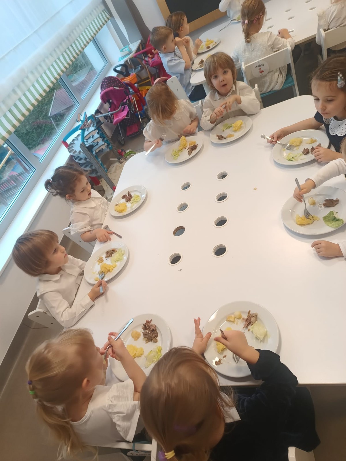 11 listopada to nie tylko Święto Niepodległości. Tego dnia swój dzień obchodzi św. Marcin, który w ikonografii często pojawia się w otoczeniu gęsi. Według jednej z nich, Marcin, aby uniknąć przyjęcia święceń biskupich, ukrył się w gęsiarni. Gęsi, jak to mają w naturze, głośno zagdakały, zdradzając kryjówkę. Z tego powodu św. Marcin kojarzony jest z gęsiną, a w wielu krajach, w tym w Polsce, gęś stała się symbolem dnia 11 listopada - „Na świętego Marcina najlepsza gęsina!”Dzisiaj na obiad w naszym przedszkolu kucharze przygotowali pyszną gęsinę.