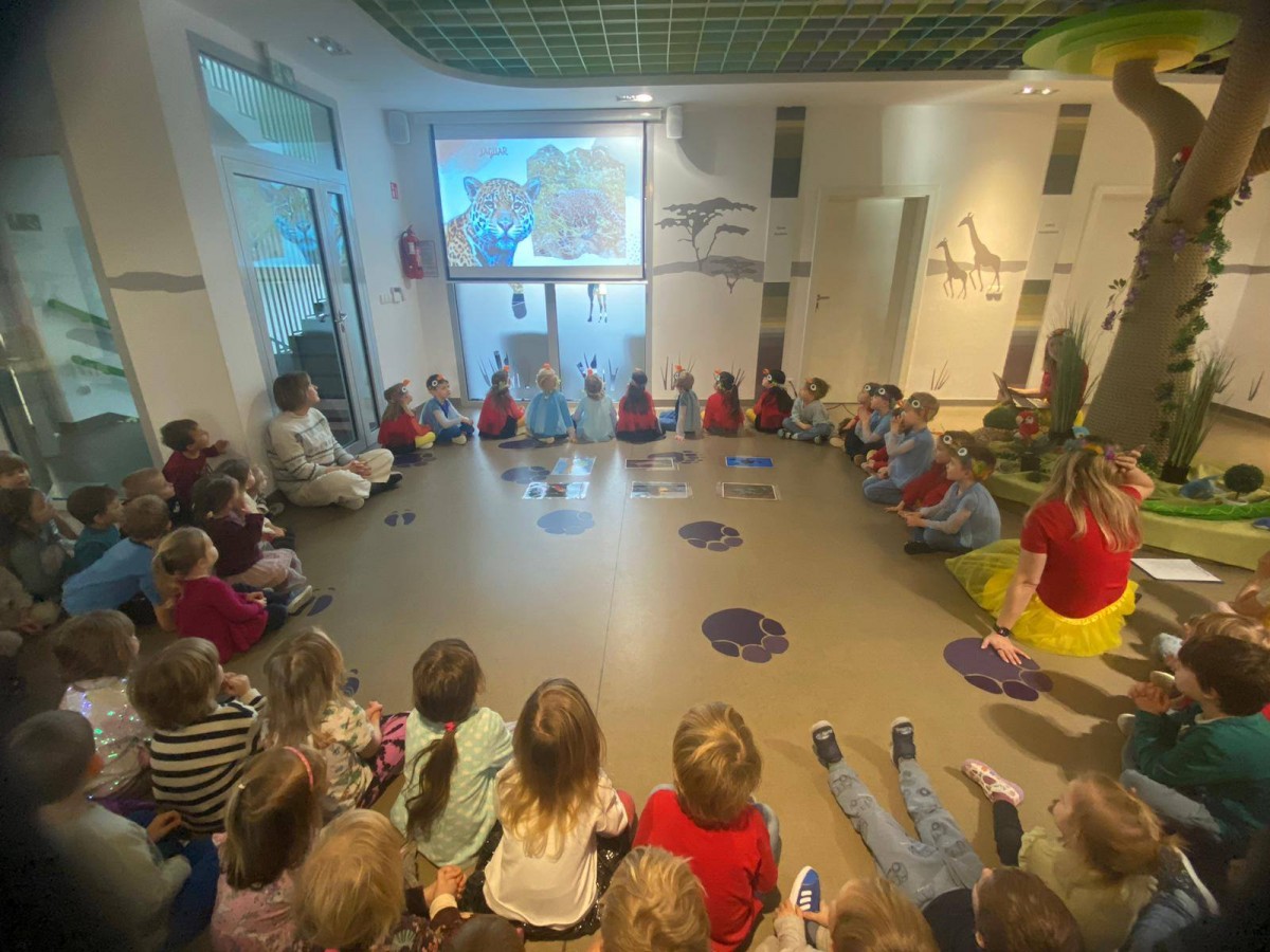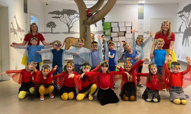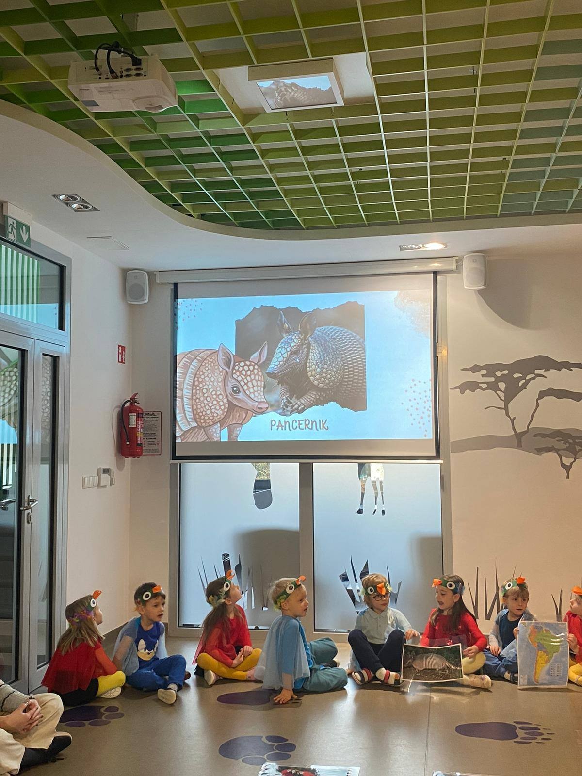 Dzisiaj w ramach Klubu Małego Europejczyka, grupa Pancerniki wraz z nauczycielkami, przygotowała prezentację o zwierzętach Ameryki Południowej, na której były pokazywane nie tylko piękne kadry z tamtego rejonu ale i zwierzęta takie jak lama, anakonda czy kolorowe papugi ary . W nawiązaniu do ostatnich zwierząt, grupa przygotowała wesoły papugowy występ. Serdeczne dziękujemy Pani Kindze, która przygotowała choreografię i nadzorowała nią podczas tego wyjątkowego dnia.