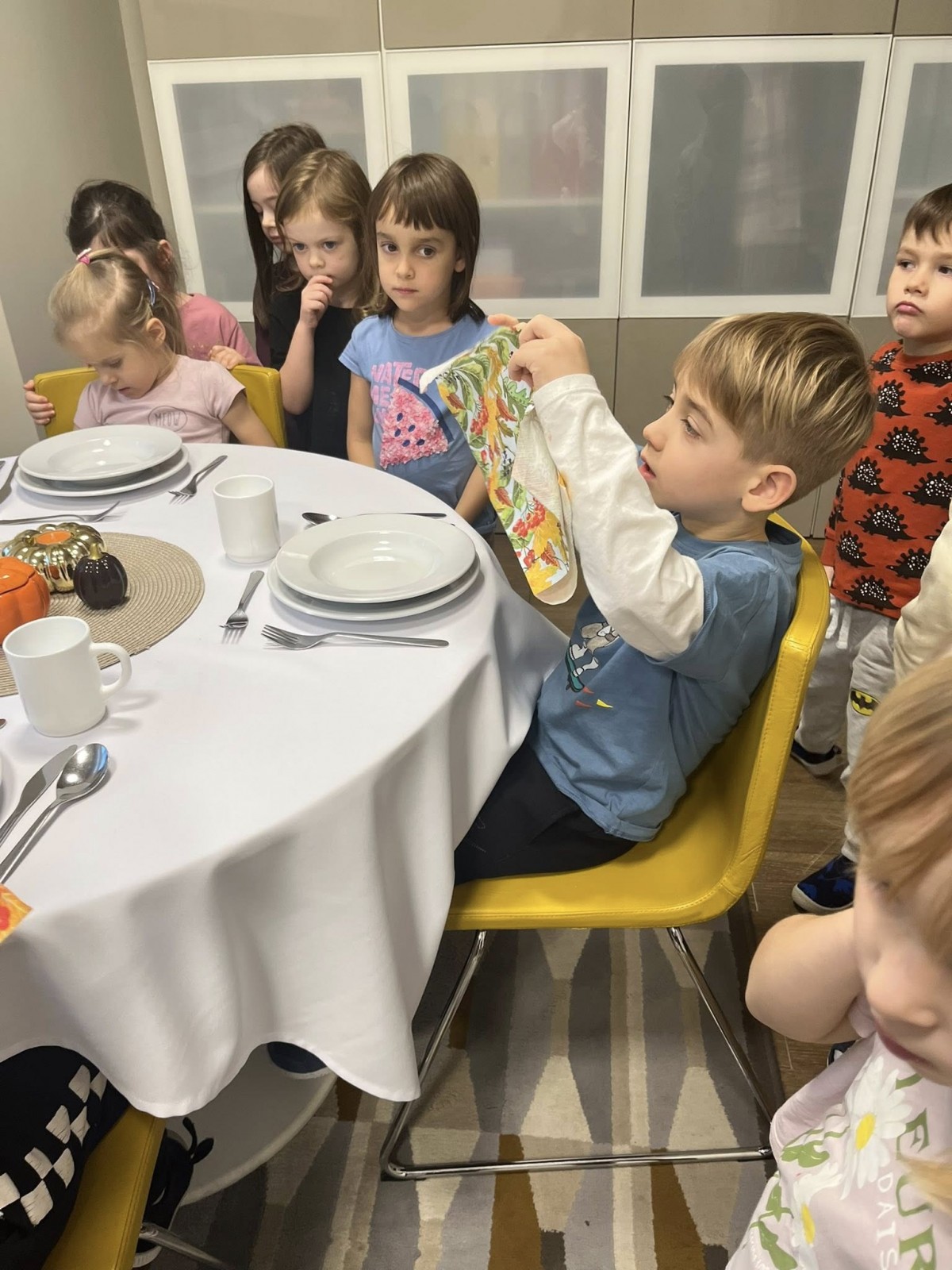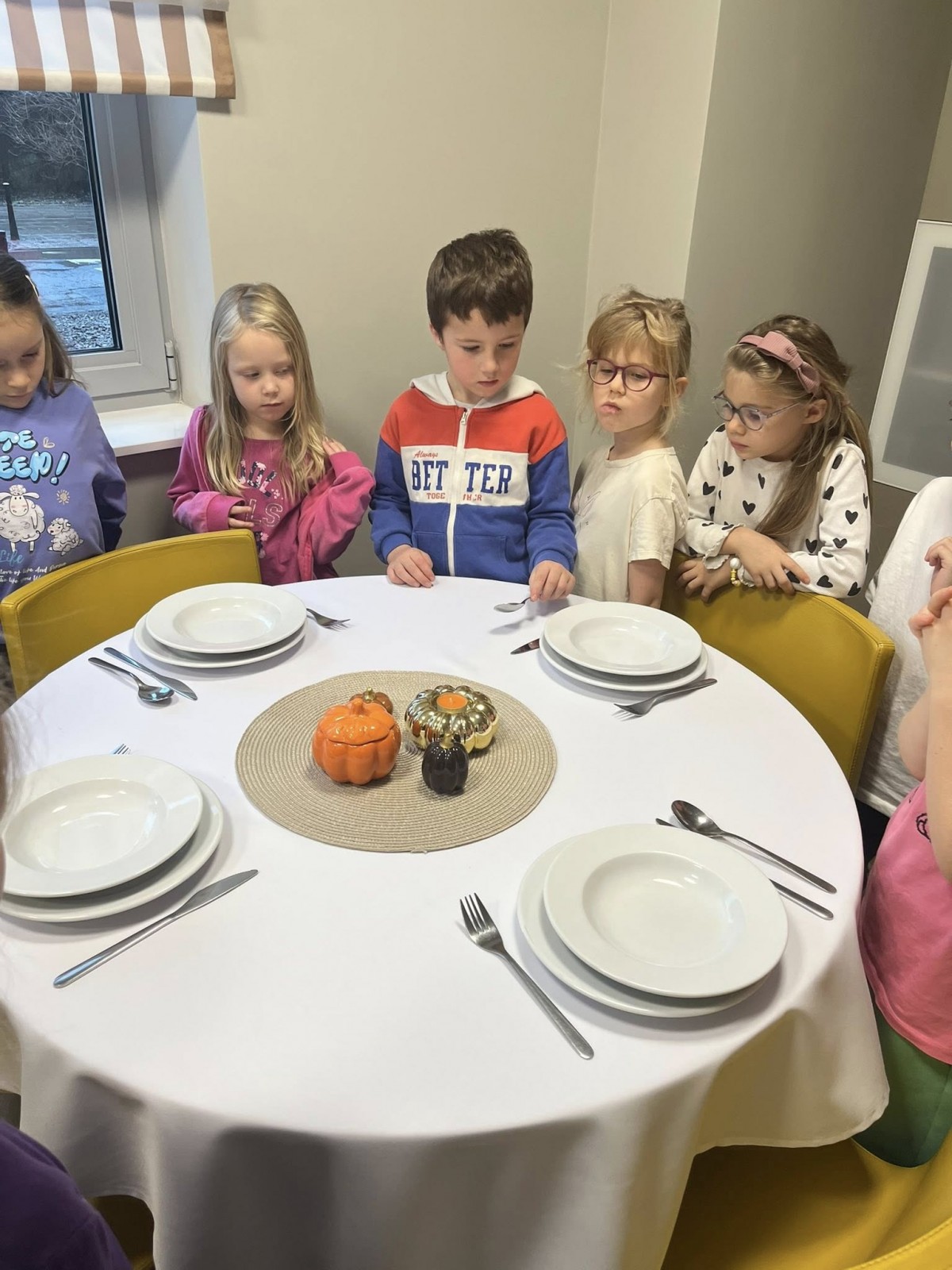 W ramach zajęć Bon czy ton - Savoir vivre w tym miesiącu dzieci uczyły się nakrywania do stołu, układania talerzy, sztućców, serwetek, podawania kolejności dań oraz właściwego ich spożywania.