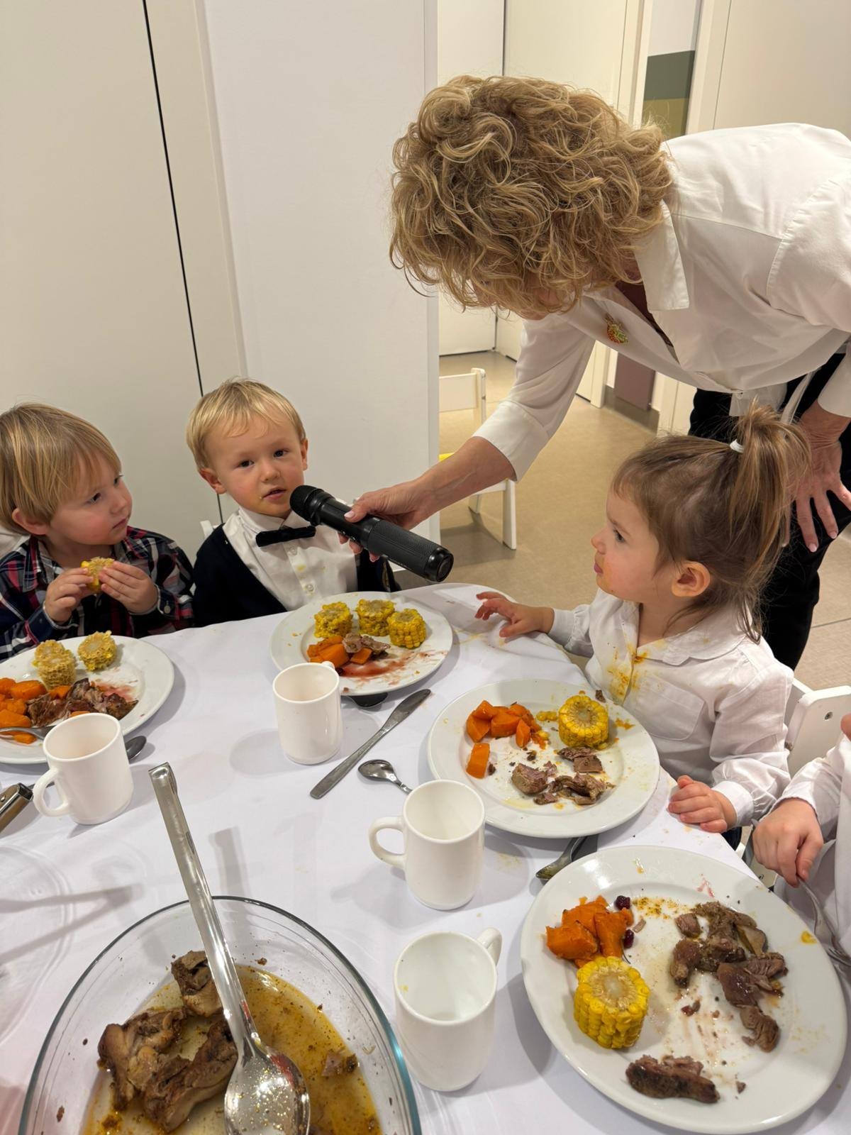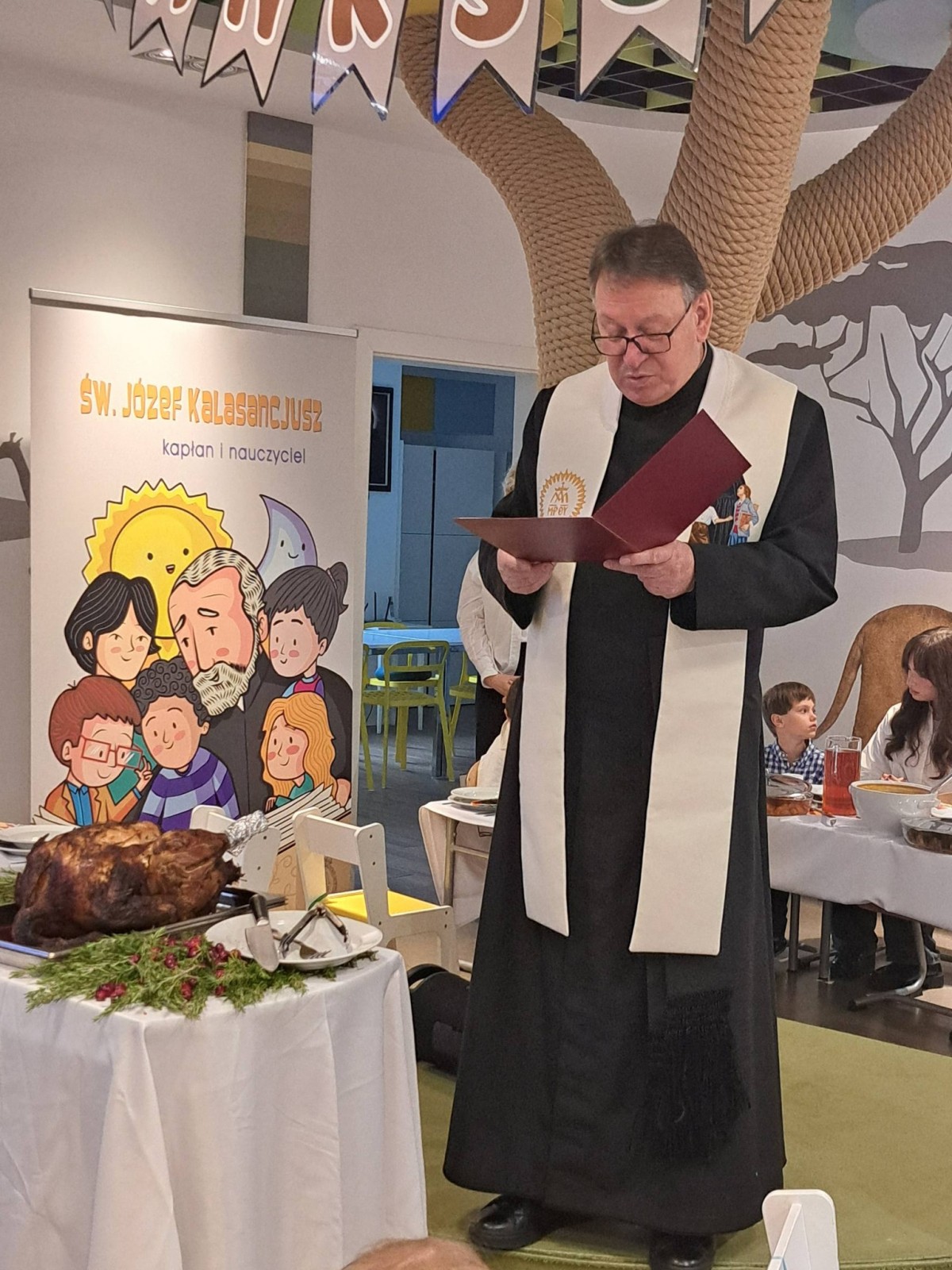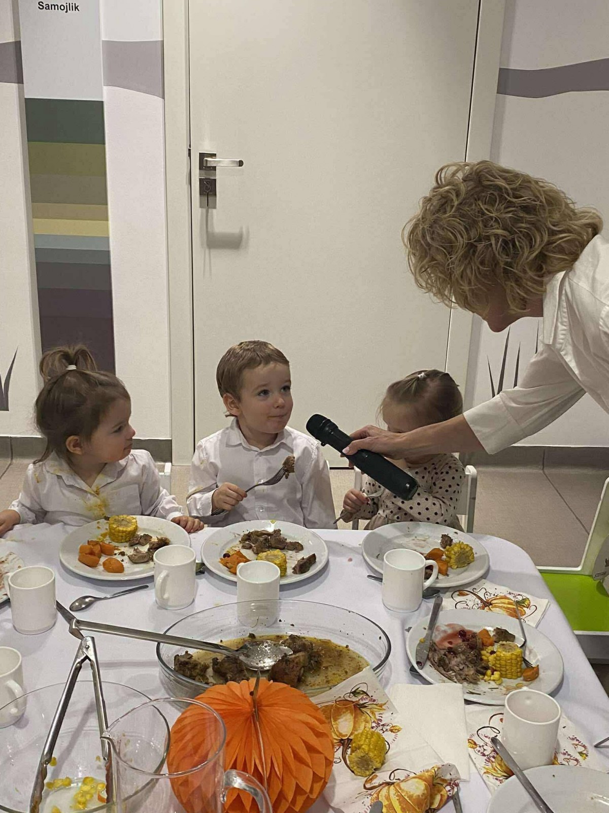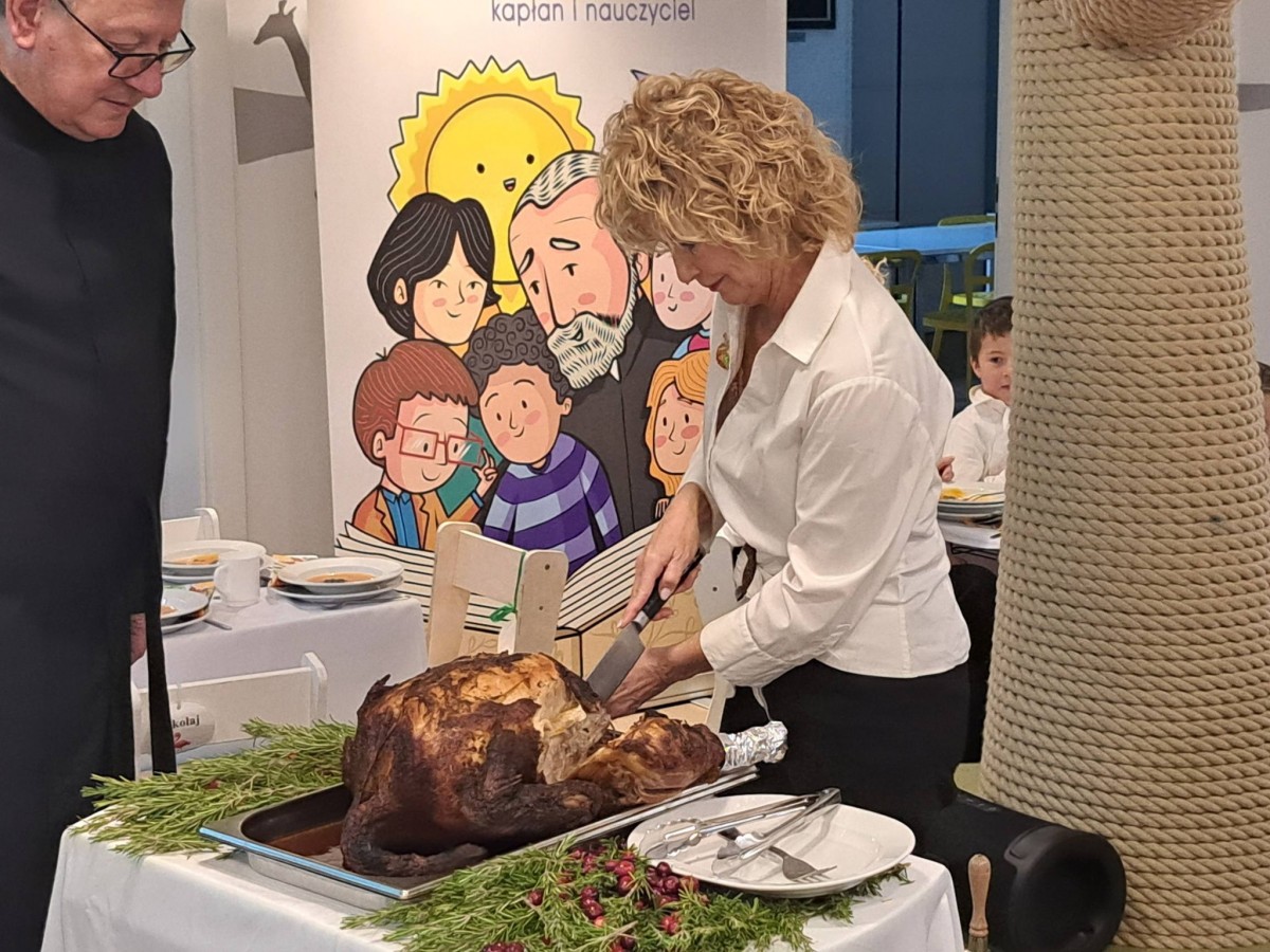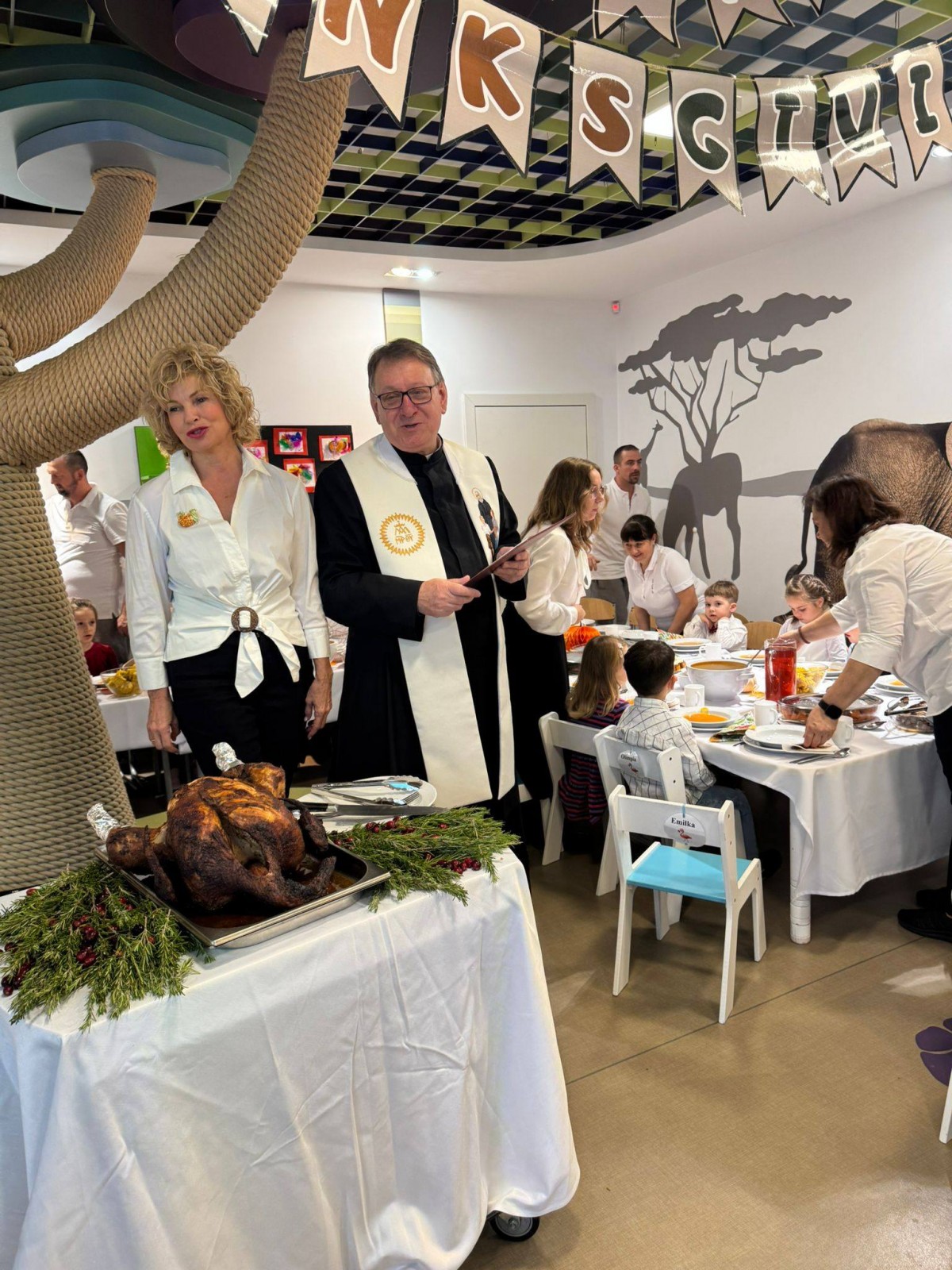 Dzisiaj nasze przedszkole wypełniło się wyjątkową atmosferą Święta Dziękczynienia. To piękna tradycja, która sięga 1621 roku, kiedy osadnicy z Plymouth, wraz z rdzenną ludnością Ameryki, po raz pierwszy zasiedli razem do stołu, by w jedności i wdzięczności podziękować Bogu za życie, plony i wzajemną życzliwość. Ta historia wciąż przypomina, jak ważne jest zatrzymanie się i dostrzeżenie dobra, które otrzymujemy każdego dnia od Pana Boga.Właśnie w tym duchu usiedliśmy dziś wszyscy do wspólnego, przedszkolnego stołu.A nasze dzieci były absolutnie cudowne. Podczas posiłku dziękowały za to, co dla nich najważniejsze: za rodzinę, rodziców, rodzeństwo, za swoje panie, za rytmikę, za angielski i hiszpański za zabawki, za przedszkole i za pokój na świecie. Ich proste, szczere słowa wzruszały i przypominały, jak wiele piękna kryje się w dziecięcej wdzięczności.Na naszych stołach nie zabrakło tradycyjnych potraw: pysznego indyka, smakowitych dodatków i obowiązkowego ciasta dyniowego.Z serca dziękujemy naszym kucharzom za pracę, której owocem był ten niezwykły posiłek. To był dzień pełen ciepła, wdzięczności i bycia razem.Dzień, który na długo zostanie w naszej pamięci.