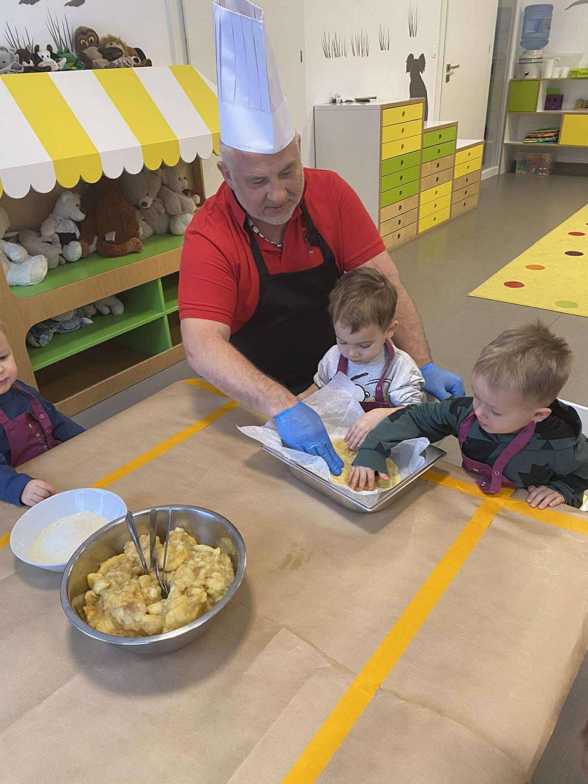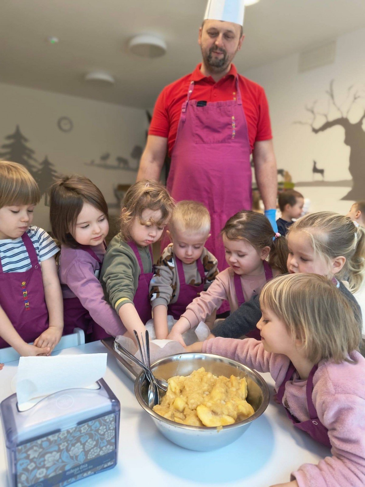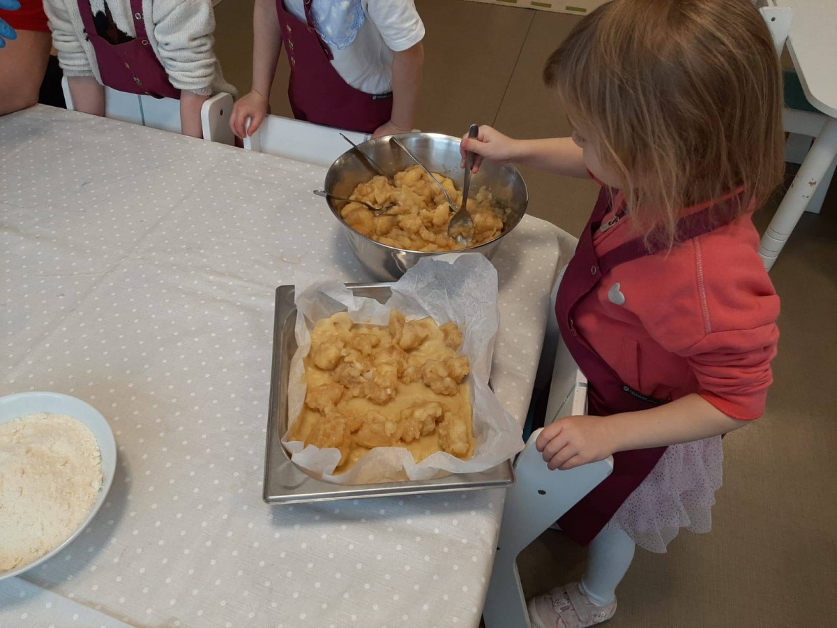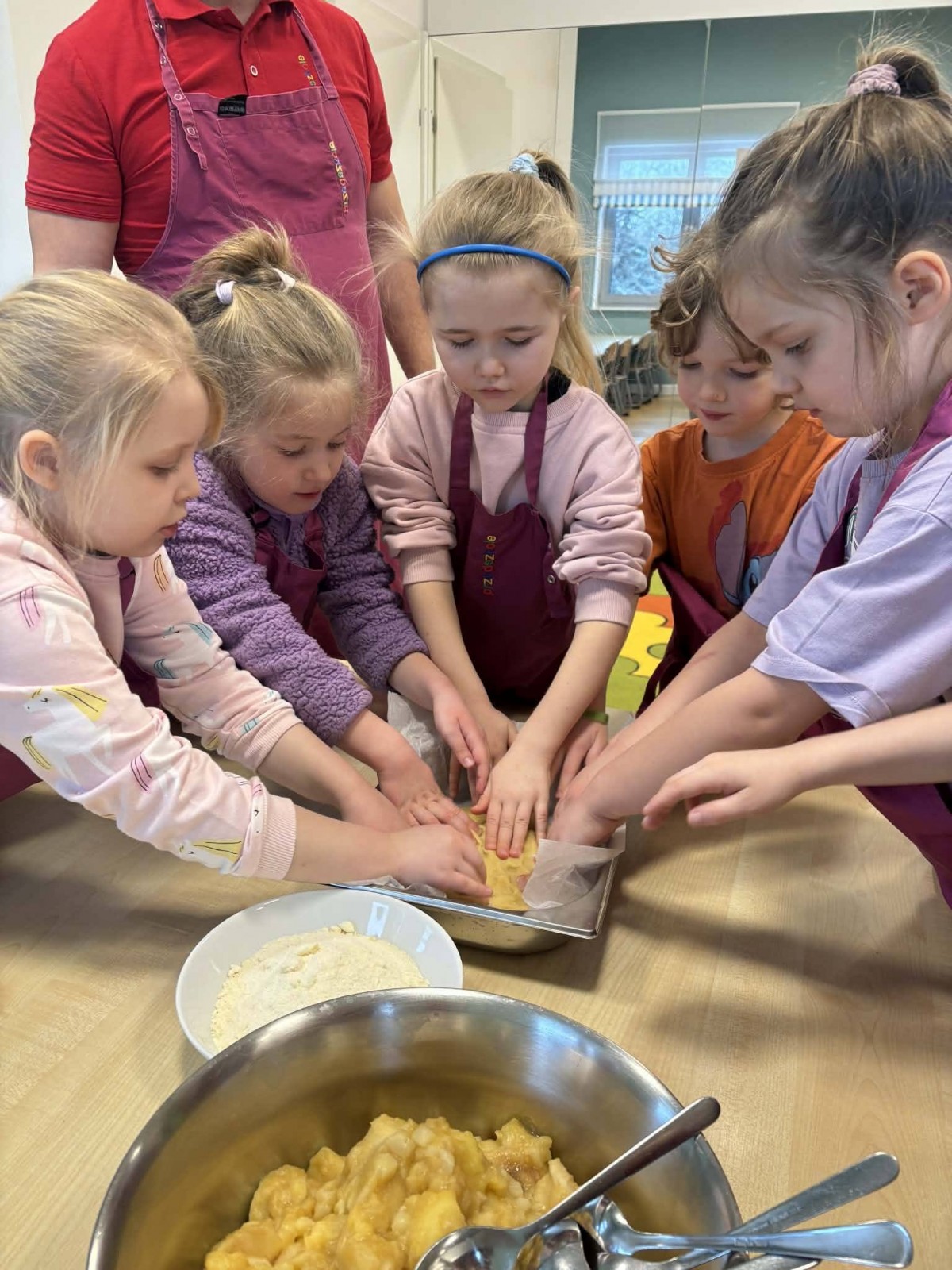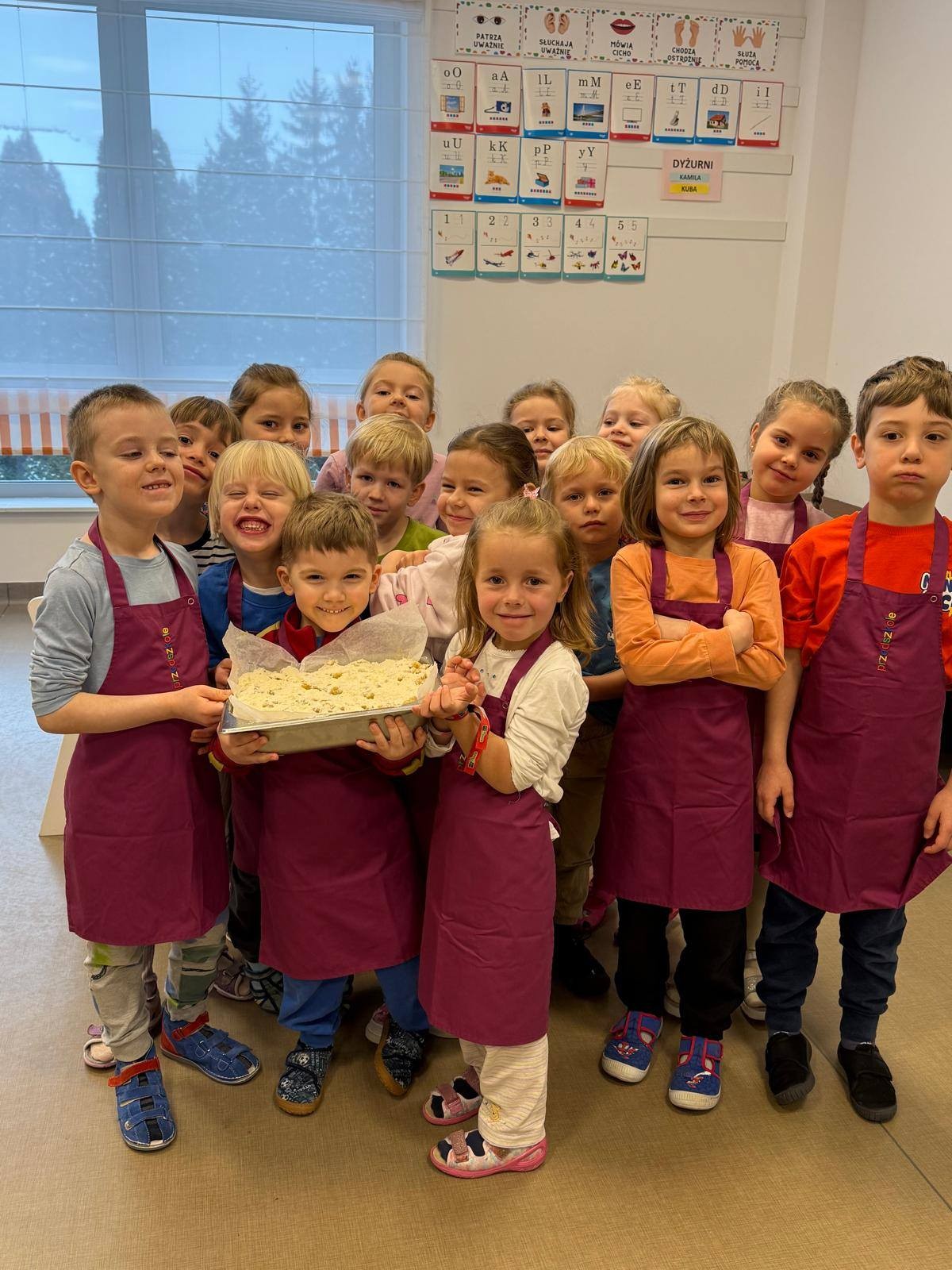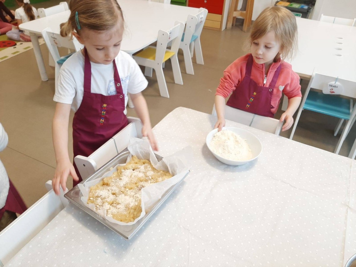 Nasze przedszkolaki wspólnie z kucharzami przygotowali na Dzień Babci i Dziadka pyszne szarlotki.