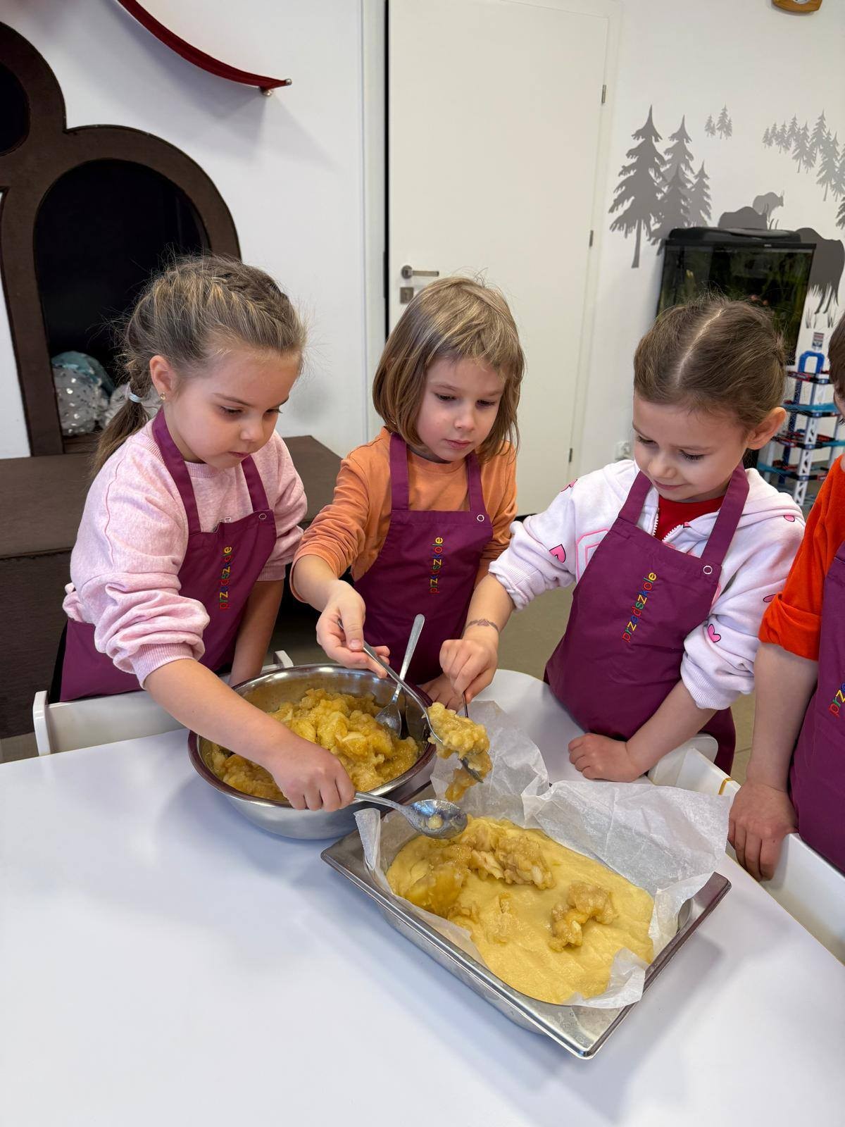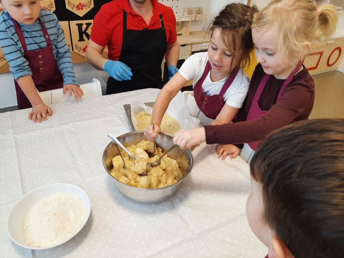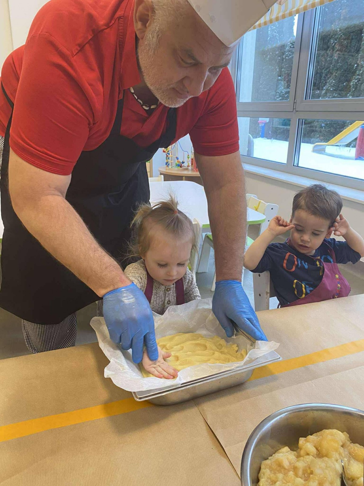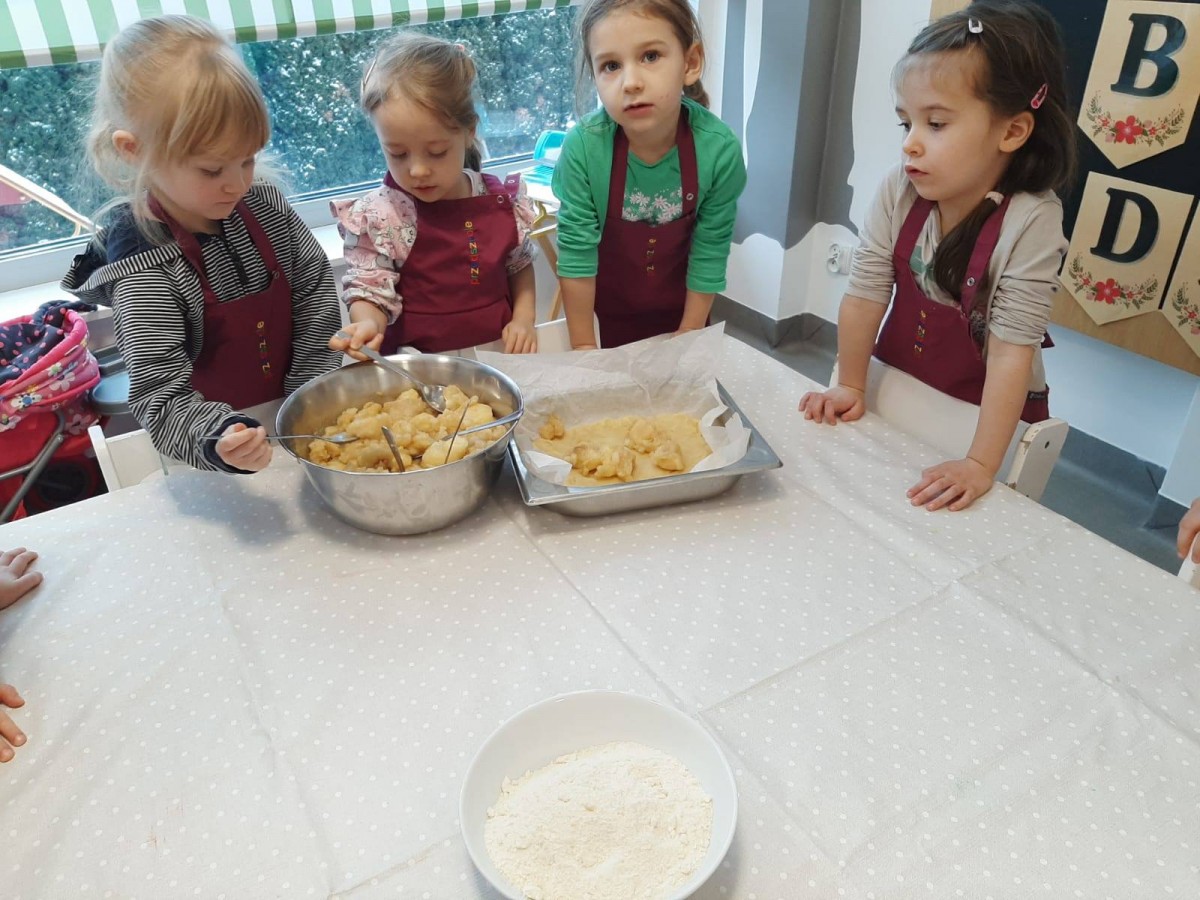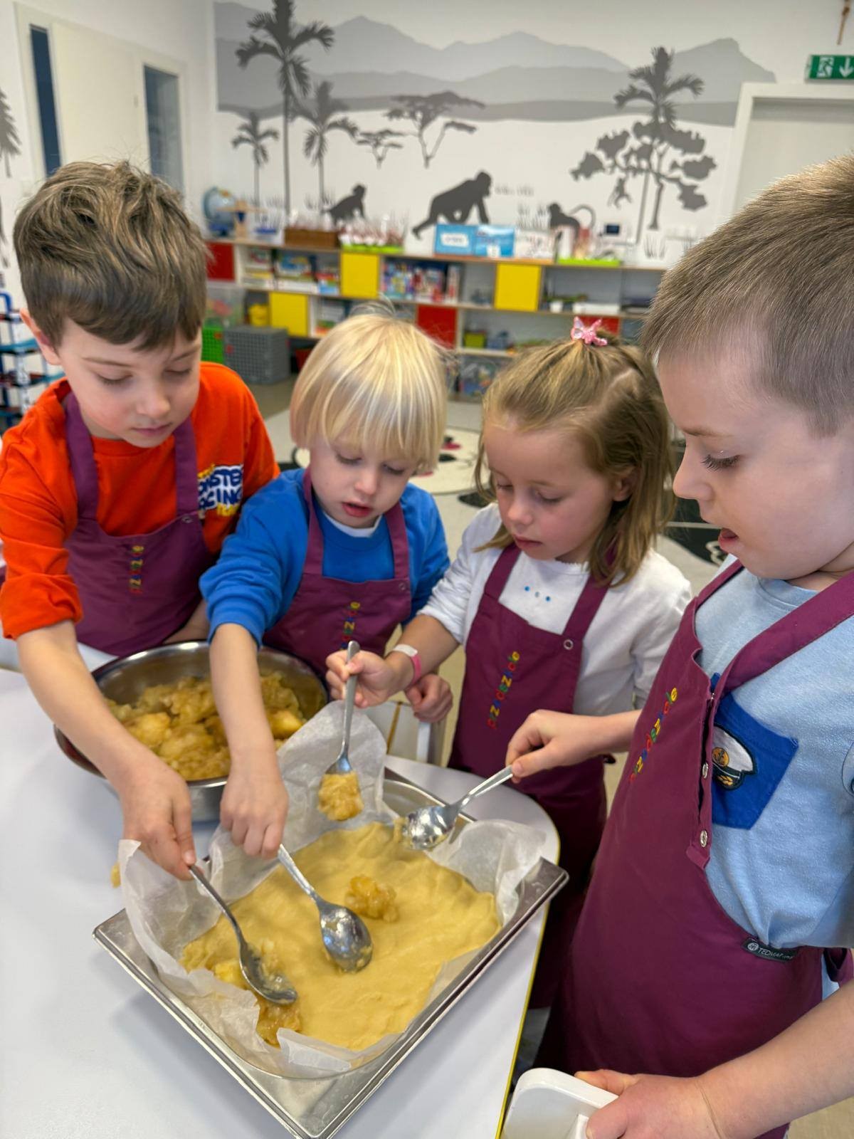 Nasze przedszkolaki wspólnie z kucharzami przygotowali na Dzień Babci i Dziadka pyszne szarlotki.