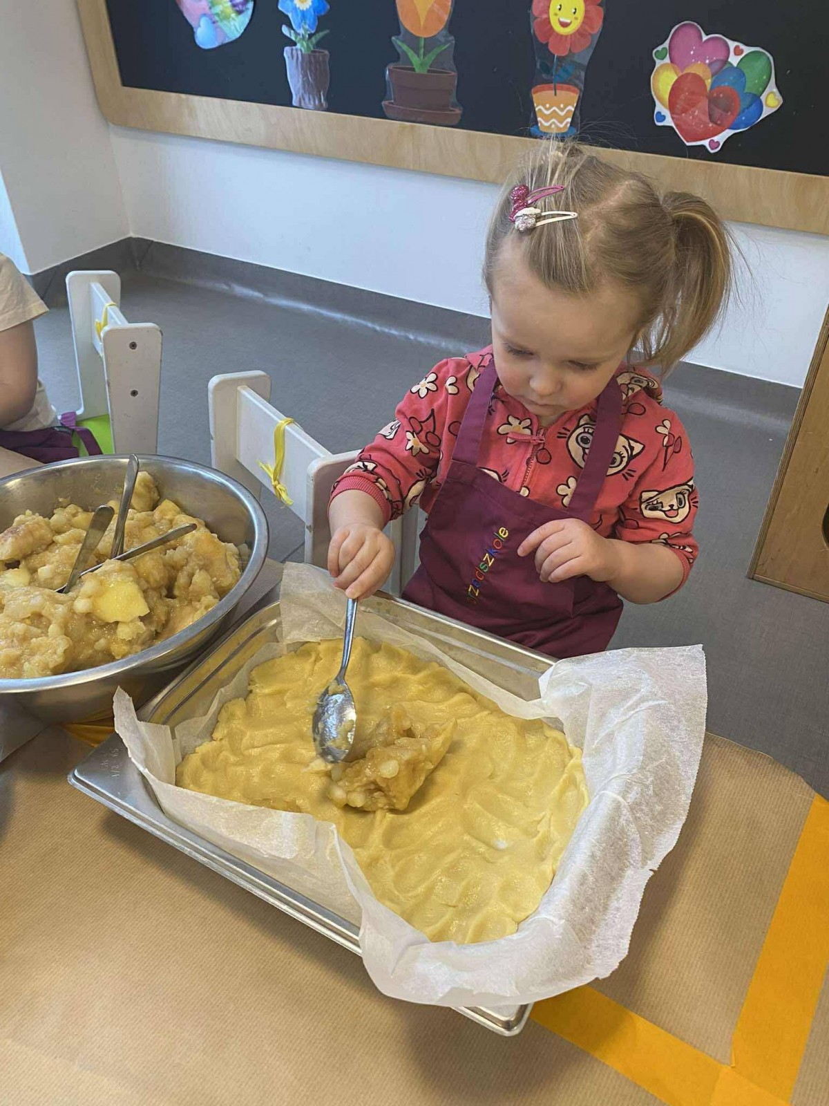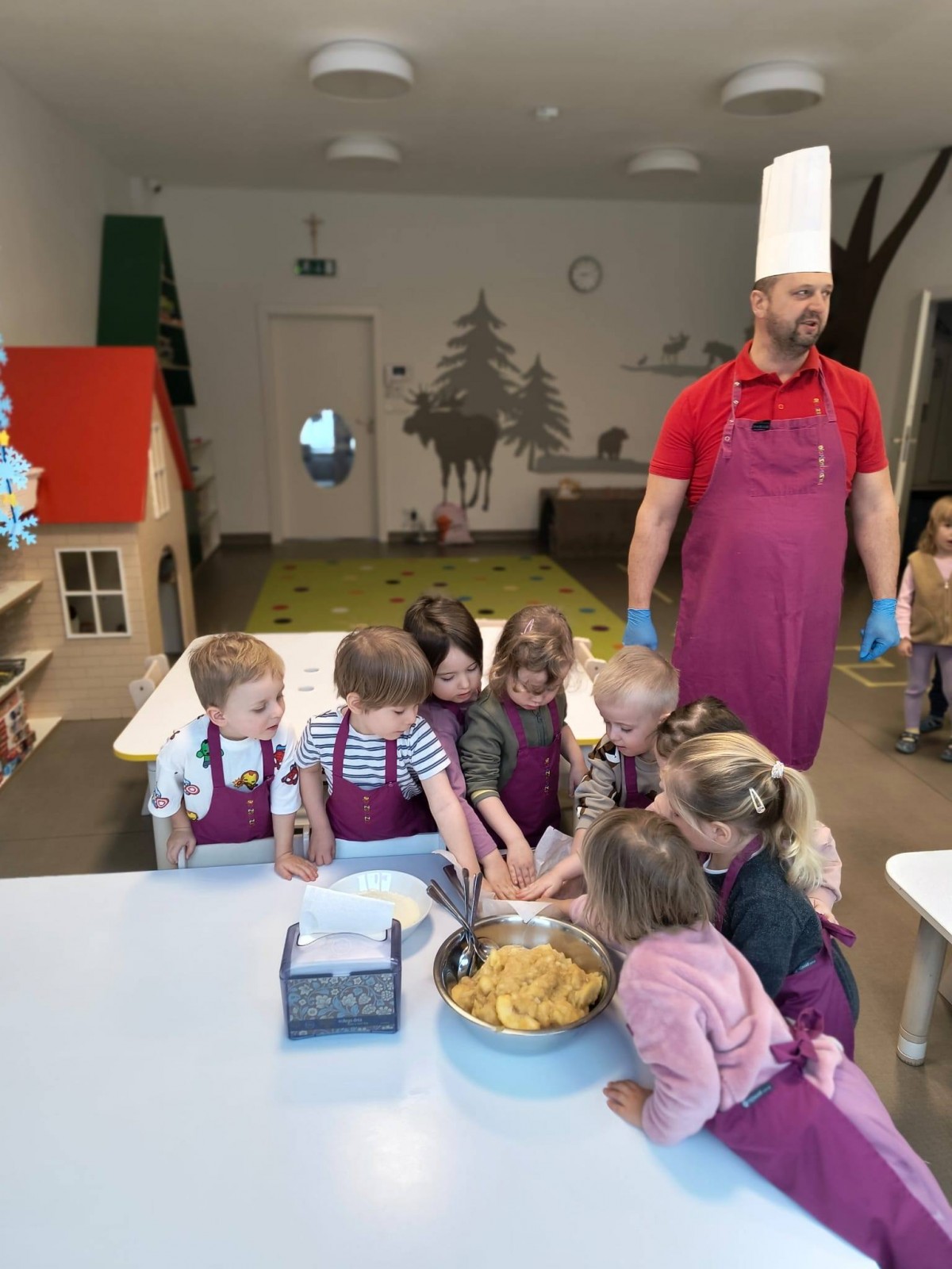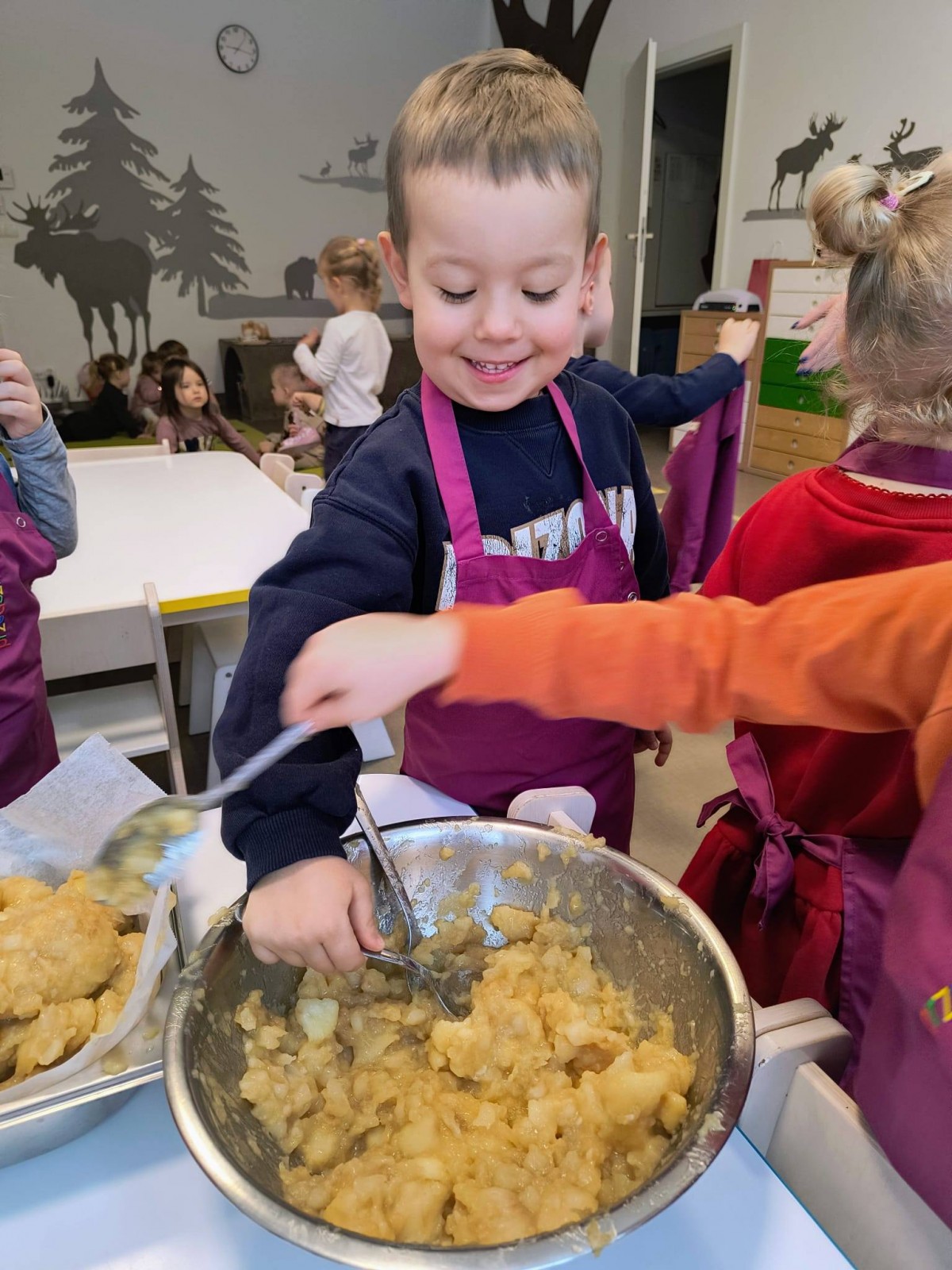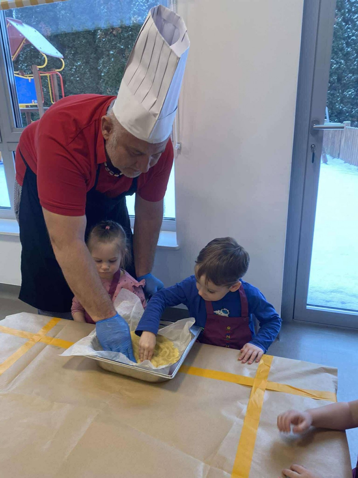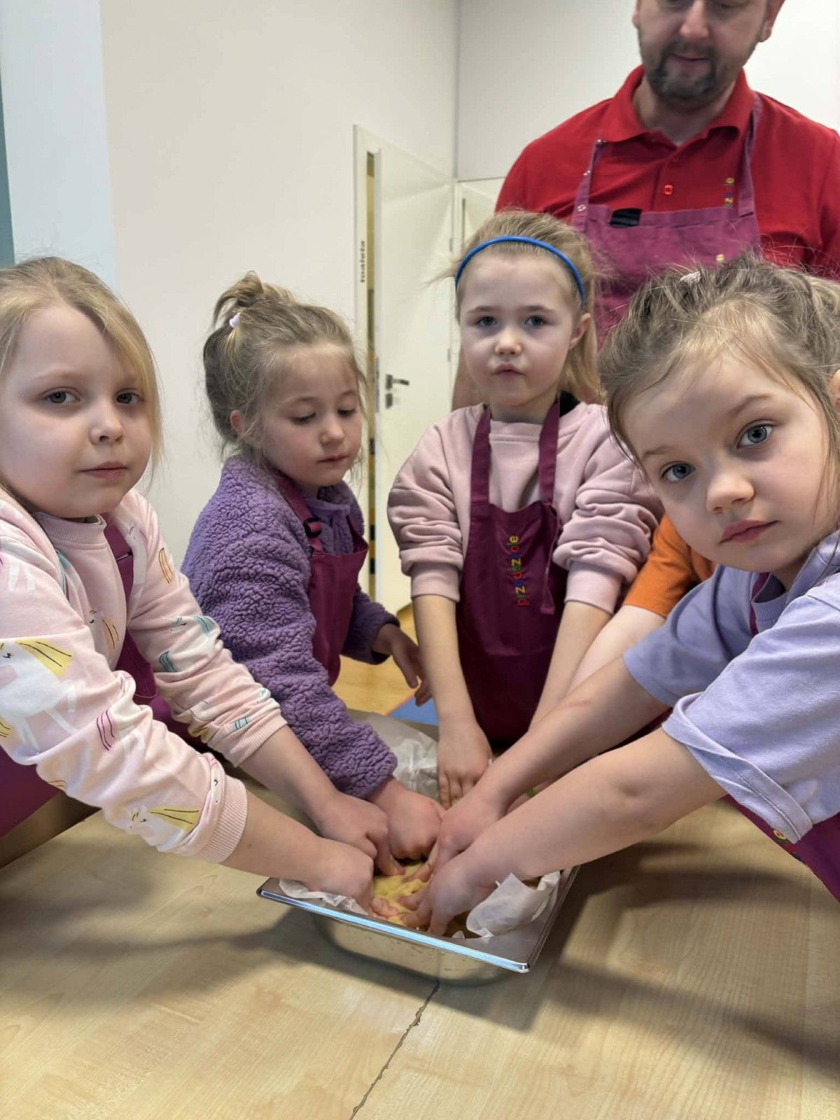Nasze przedszkolaki wspólnie z kucharzami przygotowali na Dzień Babci i Dziadka pyszne szarlotki.