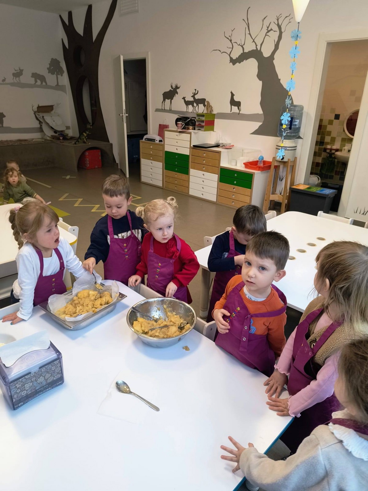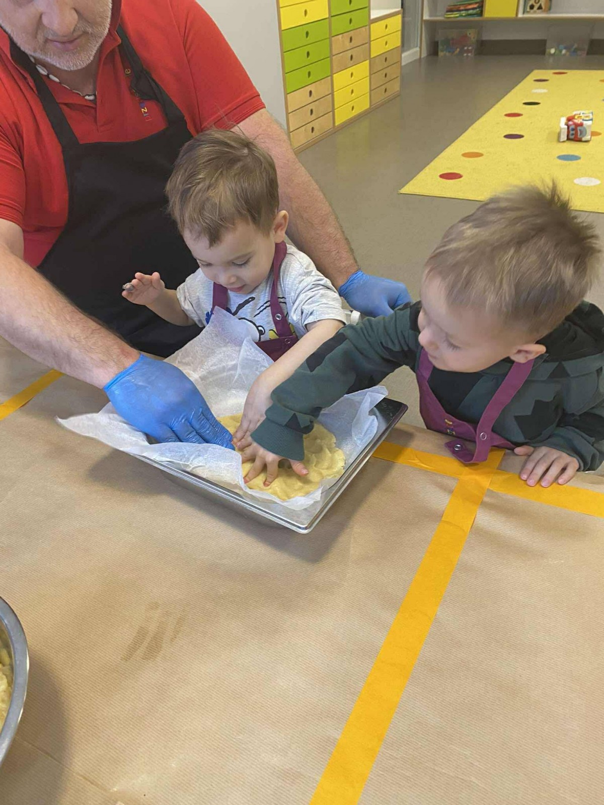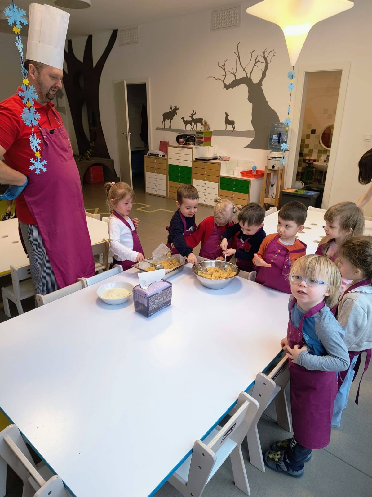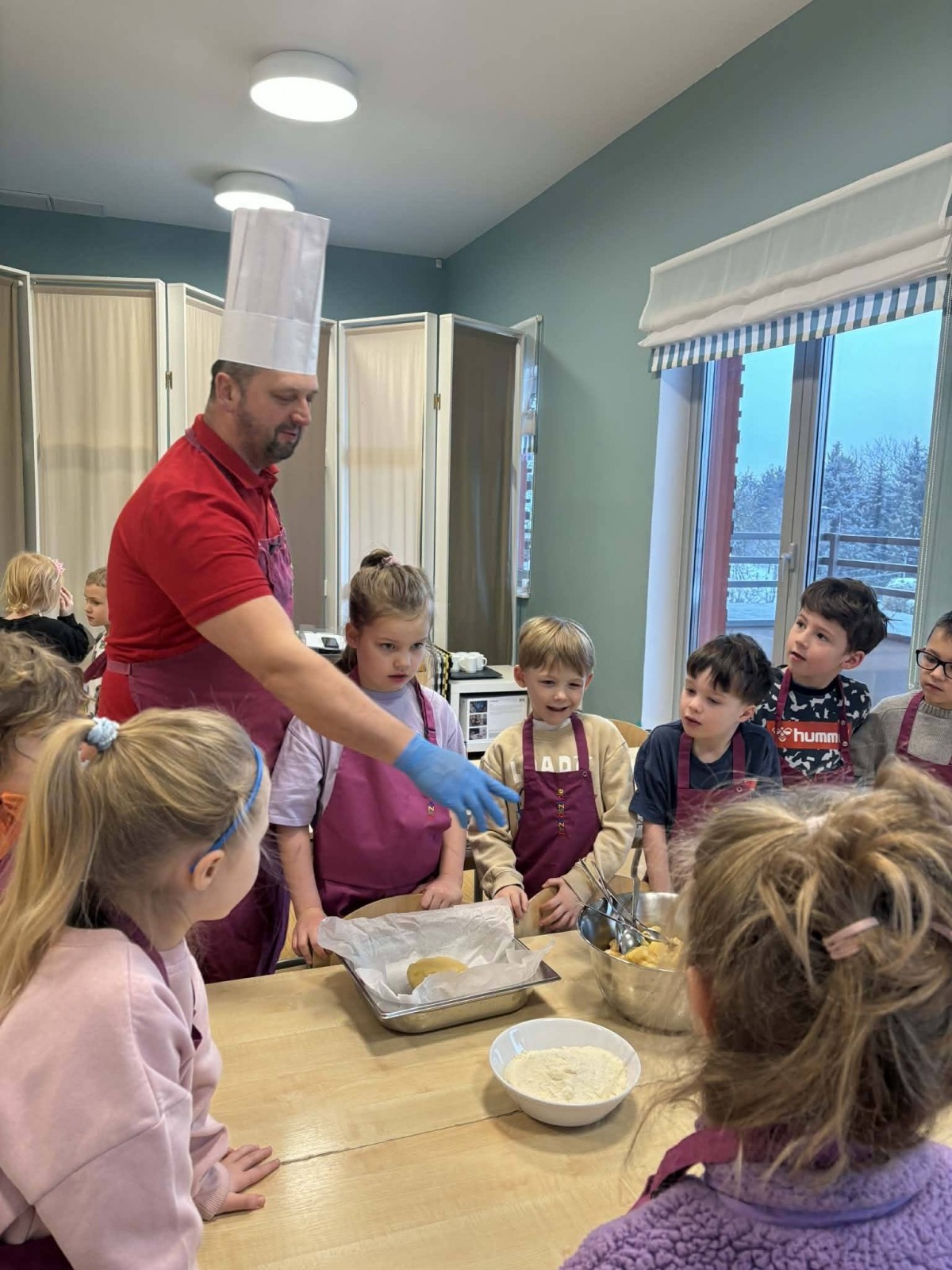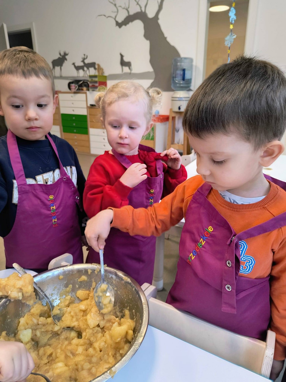 Nasze przedszkolaki wspólnie z kucharzami przygotowali na Dzień Babci i Dziadka pyszne szarlotki.