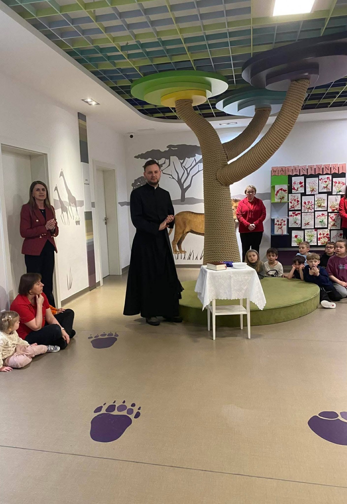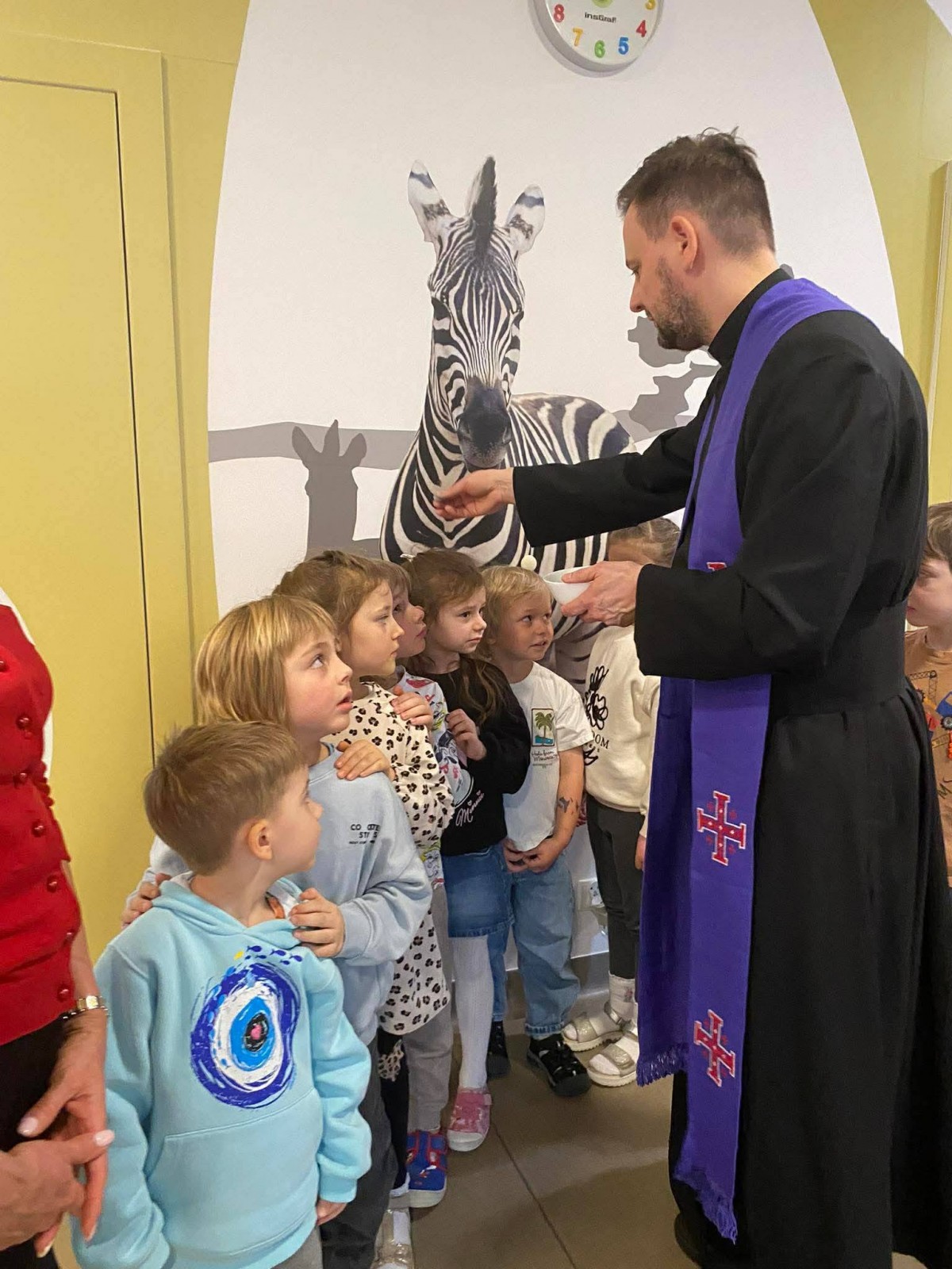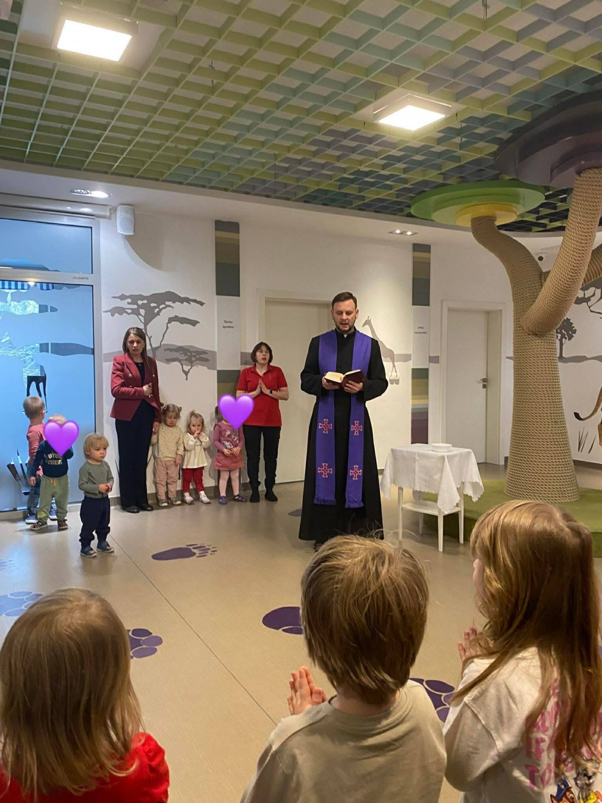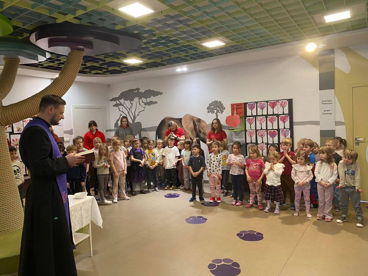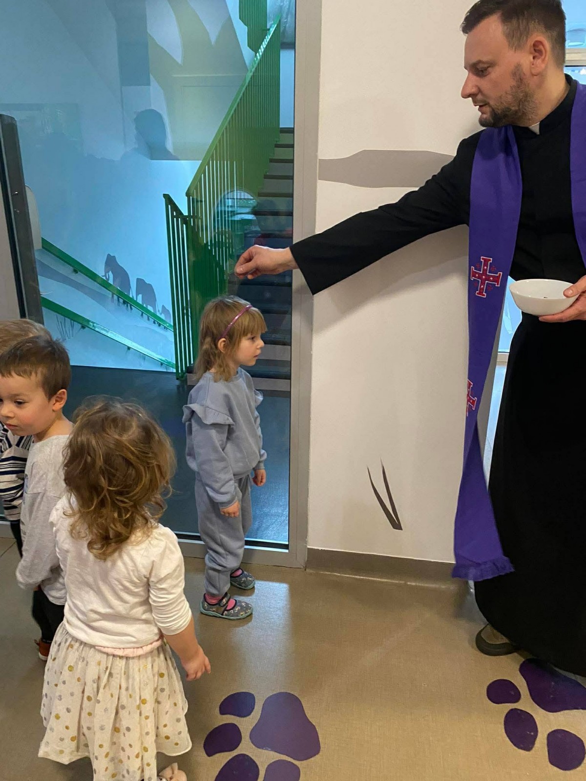 Dzisiaj w naszym przedszkolu obchodziliśmy Środę Popielcową. Ojciec Rafał odczytał fragment Ewangelii, która wprowadziła nas w nowy czas okresu liturgicznego- Wielki Post.Na znak rozpoczęcia okresu pokutnego nasze głowy zostały posypane popiołem. Przez post, modlitwę i jałmużnę przygotowujemy się do Zmartwychwstania Pańskiego.