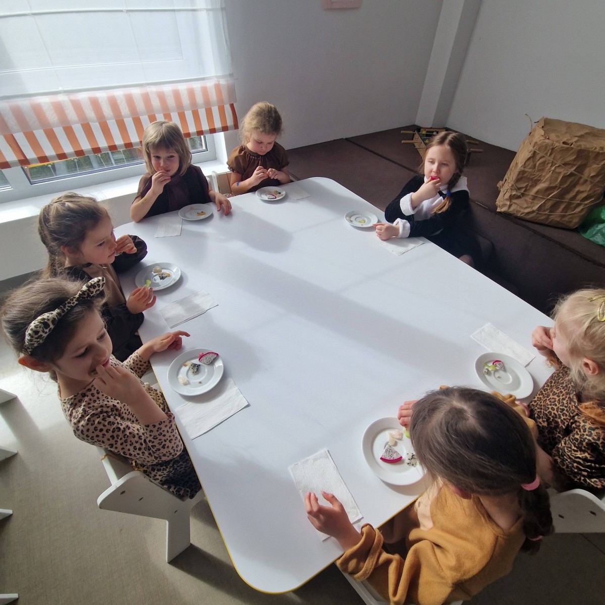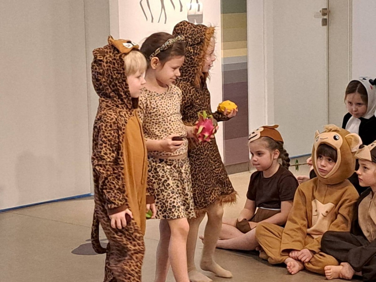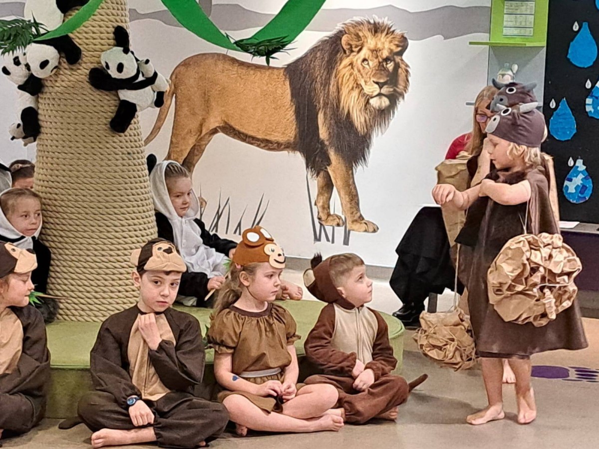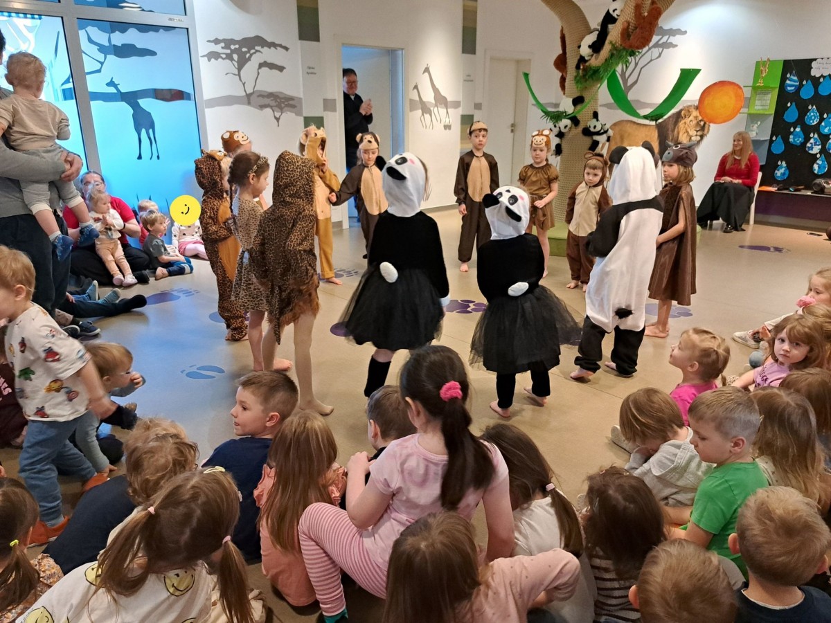 Dziś grupa „Pandy” zabrała nas w wyjątkową podróż do Azji.Dzieci opowiedziały historię o Wielkim Wąwozie Azjatyckim, miejscu niezwykłym i pełnym tajemnic. To właśnie tam spotkali się wyjątkowi goście z różnych zakątków kontynentu. Na przyjęcie przybyły Pandy, Lamparty, Gibony, Orangutany oraz Bawoły. Każde zwierzę miało swoją opowieść, swoje zwyczaje. Dzieci nie tylko świetnie wcieliły się w swoje role, ale też pokazały, że potrafią współpracować i z zaangażowaniem odkrywać świat.To była piękna lekcja o różnorodności, przyjaźni i o tym, że choć mieszkamy w różnych miejscach, możemy spotkać się razem i stworzyć coś wyjątkowego.Po występie czekała na nas jeszcze jedna niespodzianka – wspólna degustacja azjatyckich owoców. Mieliśmy okazję spróbować liczi, smoczego owocu, rambutanu, marakui oraz karamboli. To była prawdziwa podróż smaków i świetne zakończenie naszego azjatyckiego dnia.
