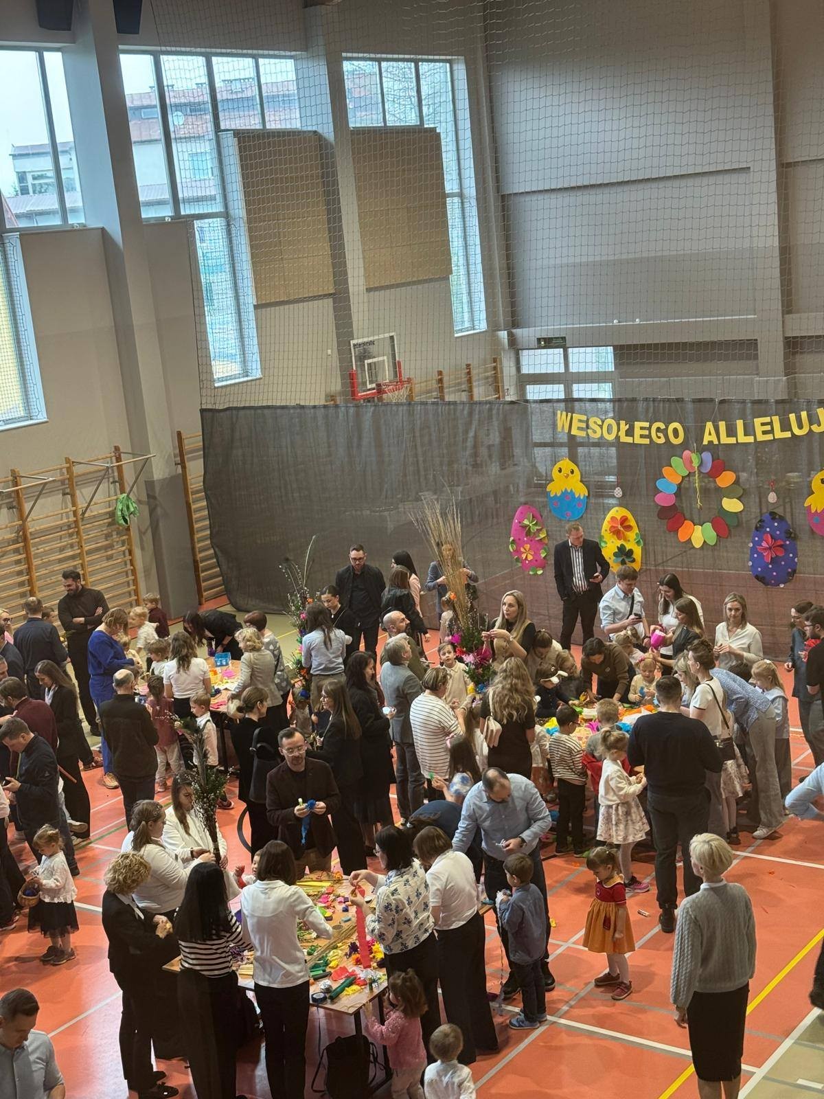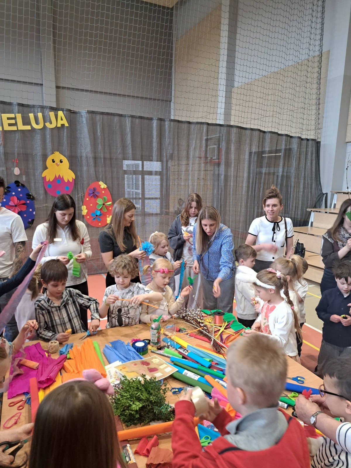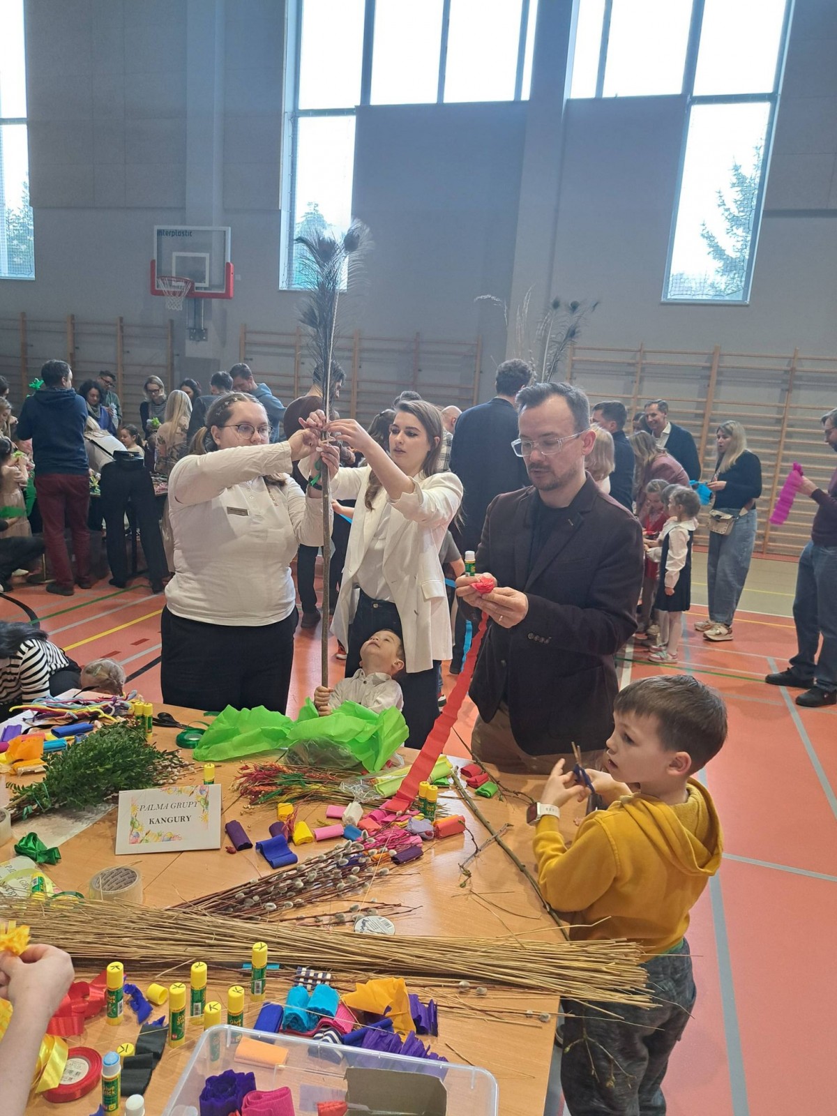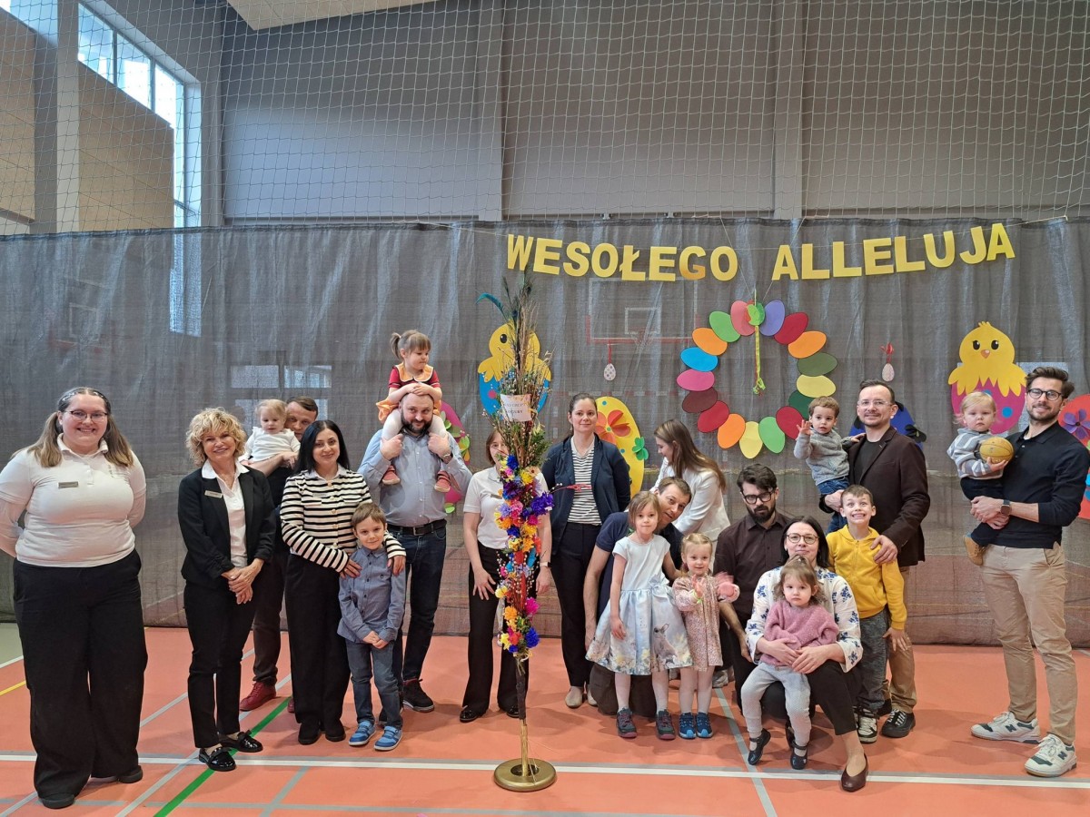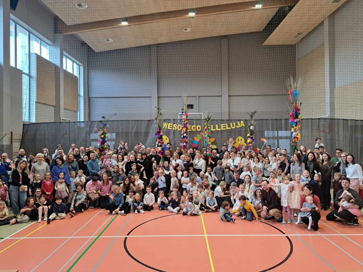 Wczoraj po południu gościła nas Pijarska Szkoła Podstawowa. O godzinie 15.00 całe Pijarskie Przedszkole z grupą żłobkową, Rodzice i Pracownicy Przedszkola zgromadziliśmy się w sali sportowej, aby podtrzymać naszą przedszkolną tradycję i przed Niedzielą Palmową wykonać wspólnie palmy. Po przywitaniu wszystkich przez Panią Dyrektor Ewę, grupy zabrały się do wykonania jednej wspólnej palmy. Powstałe palmy są piękne, kolorowe, wiosenne i bardzo radosne. Czujemy już Święta Wielkanocne. W najbliższą niedzielę Palmową o godzinie 16.00, każda grupa ze swoją Palmą w procesji wejdzie do kościoła Sanktuarium na Siekierkach. Niedzielą Palmową rozpoczniemy Wielki Tydzień a w nim Triduum Paschalne.Po wykonaniu palm w drugiej części sali czekał na wszystkich wielkanocny poczęstunek przygotowany przez naszych kucharzy. Po modlitwie i błogosławieństwie pokarmów przez Ojca Bogdana wspólnie świętowaliśmy. Dziękujemy wszystkim za włączenie się i pomoc w przygotowaniu tego świątecznego spotkania, które miało wyjątkowy charakter i pokazało, jak wiele radości może przynieść wspólne tworzenie i pielęgnowanie tradycji wielkanocnych.