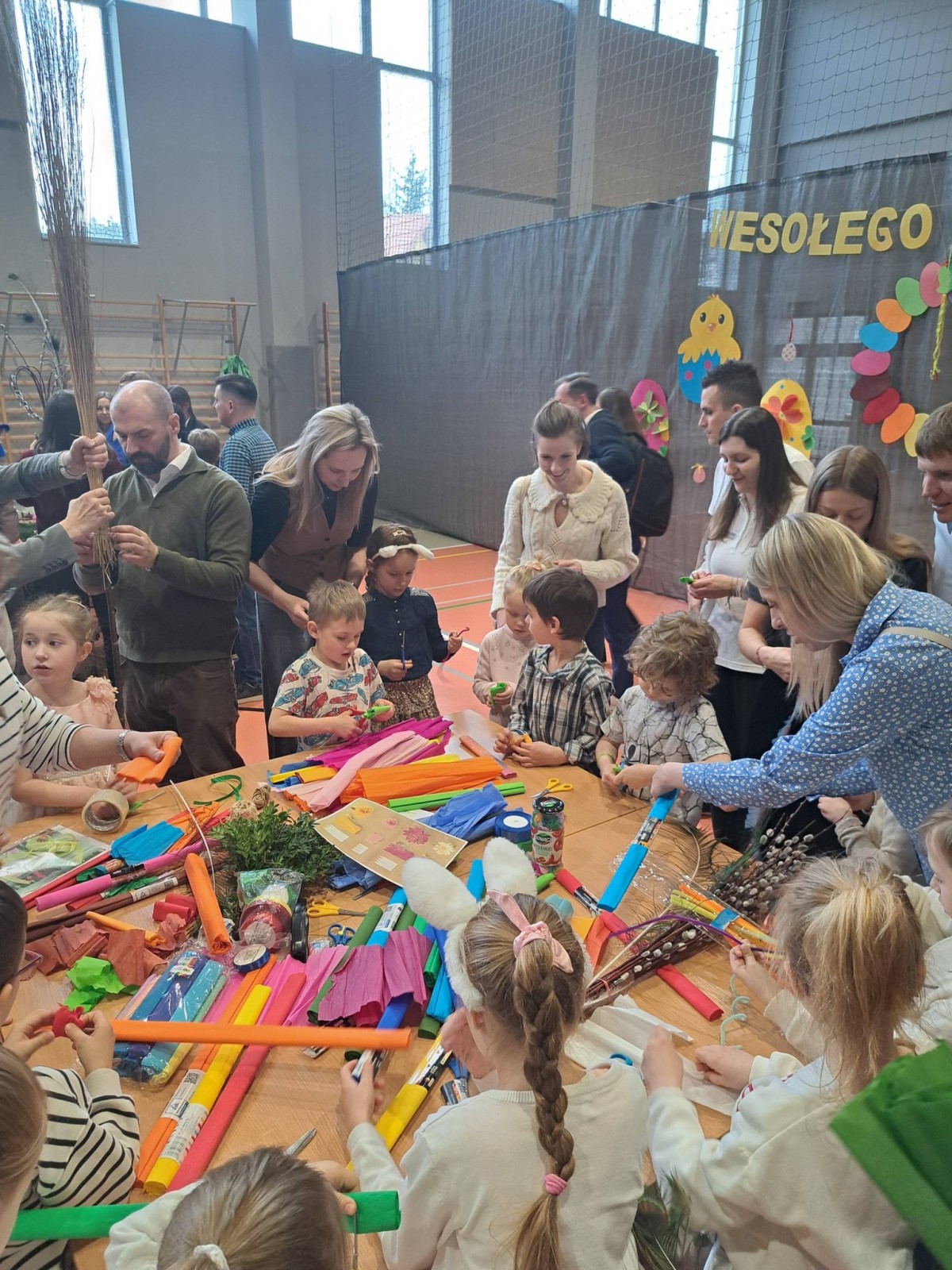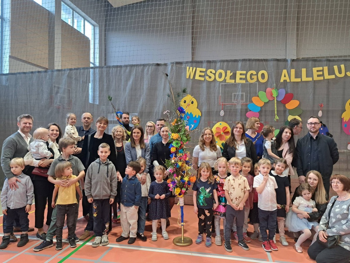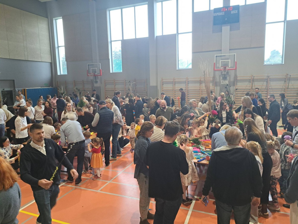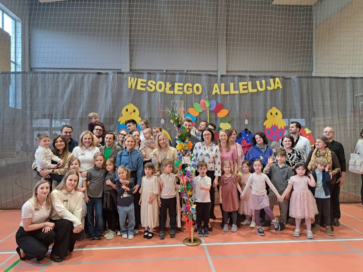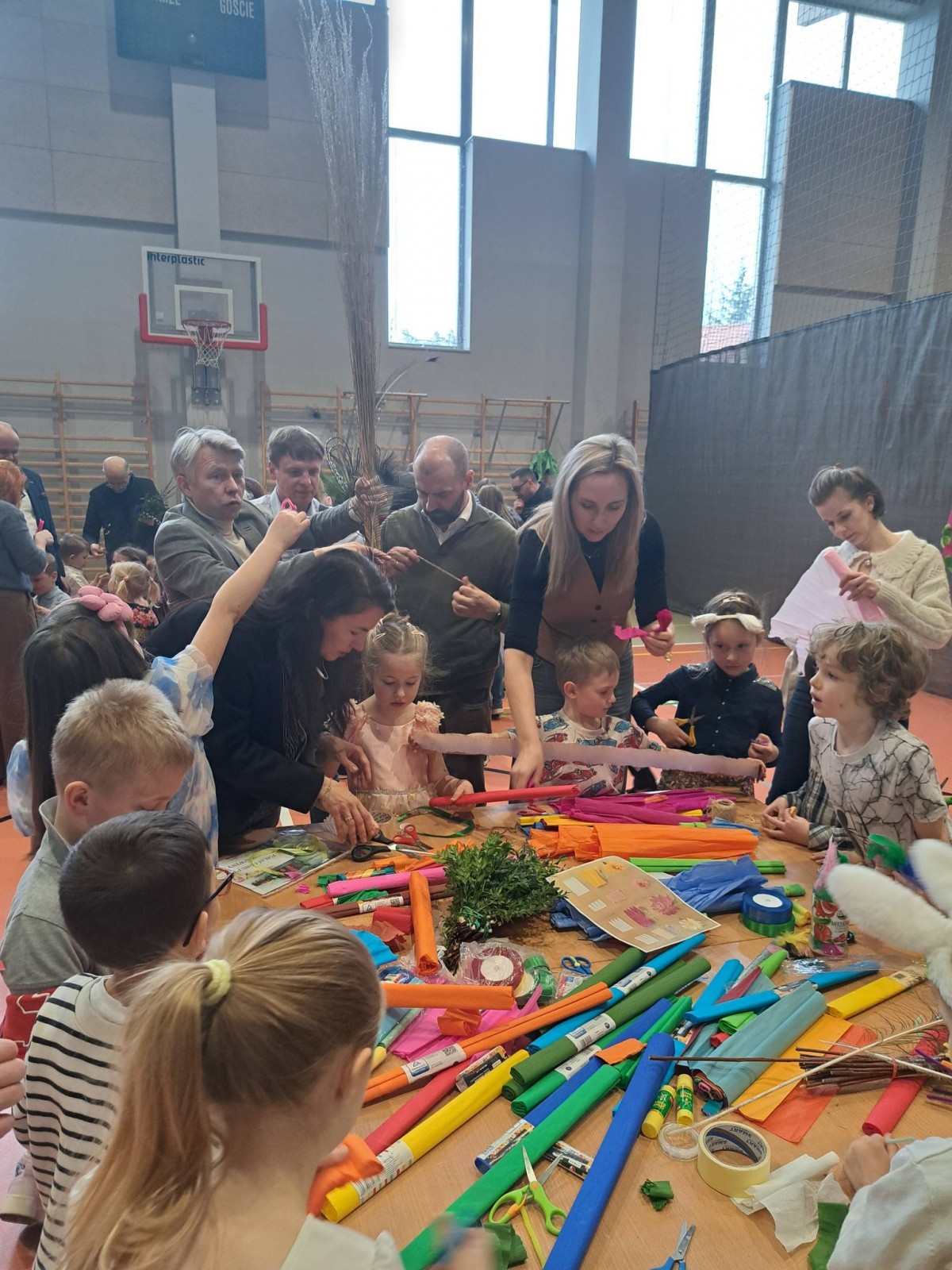 Wczoraj po południu gościła nas Pijarska Szkoła Podstawowa. O godzinie 15.00 całe Pijarskie Przedszkole z grupą żłobkową, Rodzice i Pracownicy Przedszkola zgromadziliśmy się w sali sportowej, aby podtrzymać naszą przedszkolną tradycję i przed Niedzielą Palmową wykonać wspólnie palmy. Po przywitaniu wszystkich przez Panią Dyrektor Ewę, grupy zabrały się do wykonania jednej wspólnej palmy. Powstałe palmy są piękne, kolorowe, wiosenne i bardzo radosne. Czujemy już Święta Wielkanocne. W najbliższą niedzielę Palmową o godzinie 16.00, każda grupa ze swoją Palmą w procesji wejdzie do kościoła Sanktuarium na Siekierkach. Niedzielą Palmową rozpoczniemy Wielki Tydzień a w nim Triduum Paschalne.Po wykonaniu palm w drugiej części sali czekał na wszystkich wielkanocny poczęstunek przygotowany przez naszych kucharzy. Po modlitwie i błogosławieństwie pokarmów przez Ojca Bogdana wspólnie świętowaliśmy. Dziękujemy wszystkim za włączenie się i pomoc w przygotowaniu tego świątecznego spotkania, które miało wyjątkowy charakter i pokazało, jak wiele radości może przynieść wspólne tworzenie i pielęgnowanie tradycji wielkanocnych.