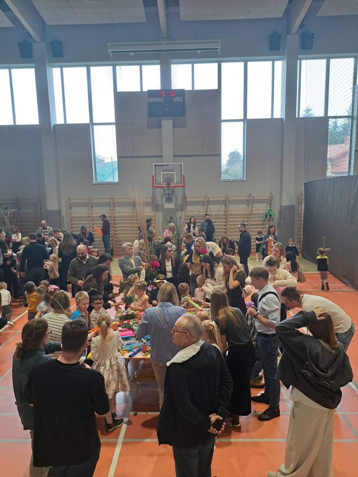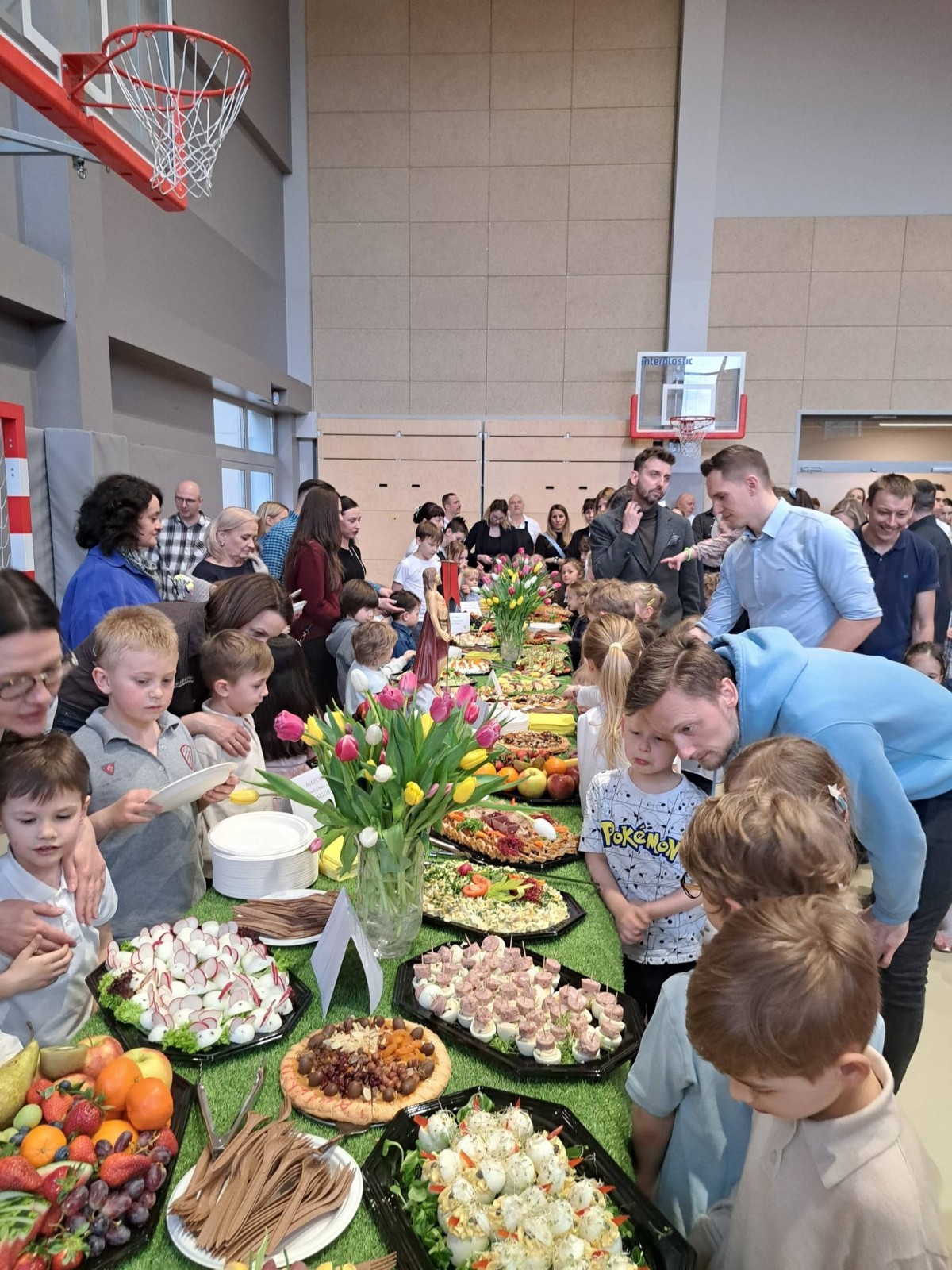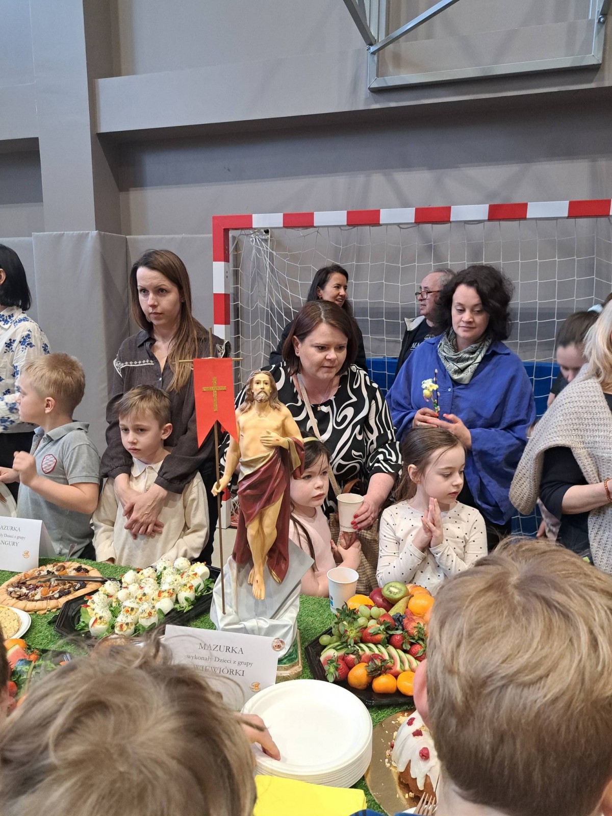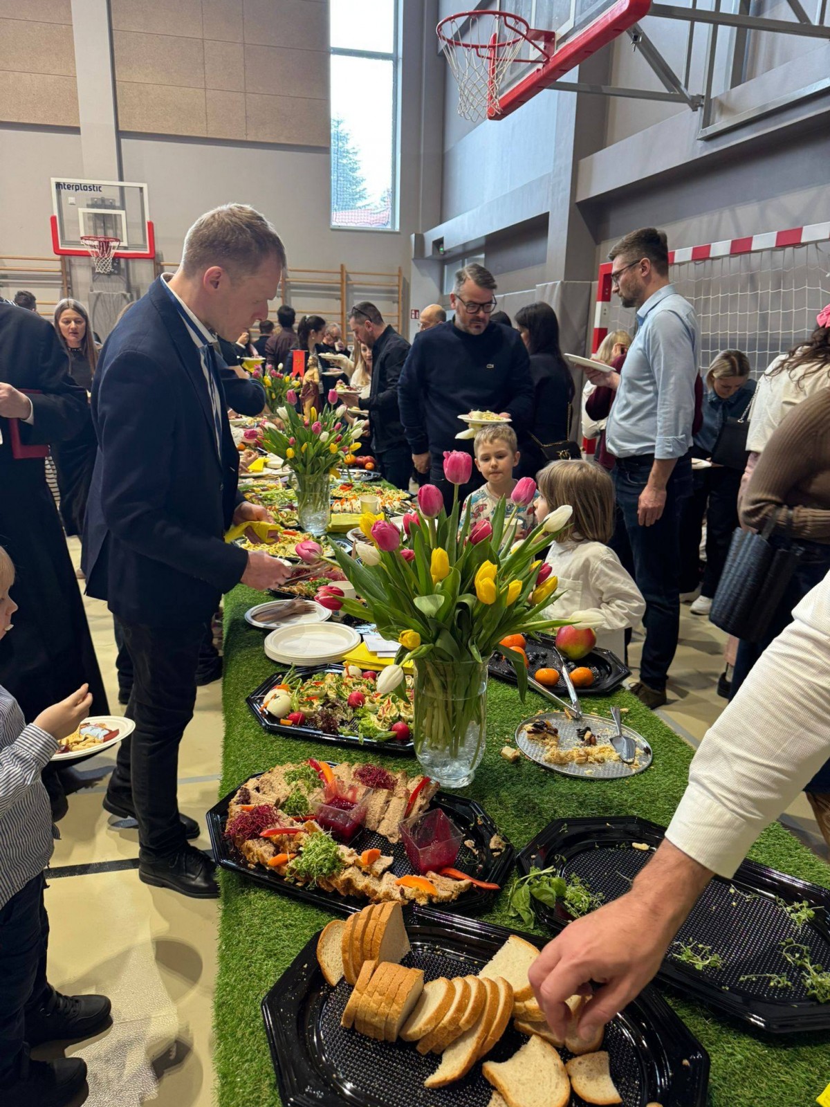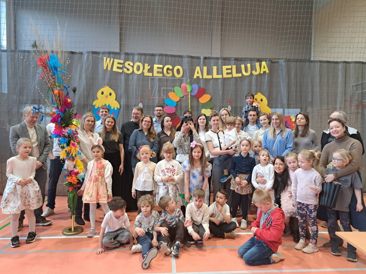 Wczoraj po południu gościła nas Pijarska Szkoła Podstawowa. O godzinie 15.00 całe Pijarskie Przedszkole z grupą żłobkową, Rodzice i Pracownicy Przedszkola zgromadziliśmy się w sali sportowej, aby podtrzymać naszą przedszkolną tradycję i przed Niedzielą Palmową wykonać wspólnie palmy. Po przywitaniu wszystkich przez Panią Dyrektor Ewę, grupy zabrały się do wykonania jednej wspólnej palmy. Powstałe palmy są piękne, kolorowe, wiosenne i bardzo radosne. Czujemy już Święta Wielkanocne. W najbliższą niedzielę Palmową o godzinie 16.00, każda grupa ze swoją Palmą w procesji wejdzie do kościoła Sanktuarium na Siekierkach. Niedzielą Palmową rozpoczniemy Wielki Tydzień a w nim Triduum Paschalne.Po wykonaniu palm w drugiej części sali czekał na wszystkich wielkanocny poczęstunek przygotowany przez naszych kucharzy. Po modlitwie i błogosławieństwie pokarmów przez Ojca Bogdana wspólnie świętowaliśmy. Dziękujemy wszystkim za włączenie się i pomoc w przygotowaniu tego świątecznego spotkania, które miało wyjątkowy charakter i pokazało, jak wiele radości może przynieść wspólne tworzenie i pielęgnowanie tradycji wielkanocnych.