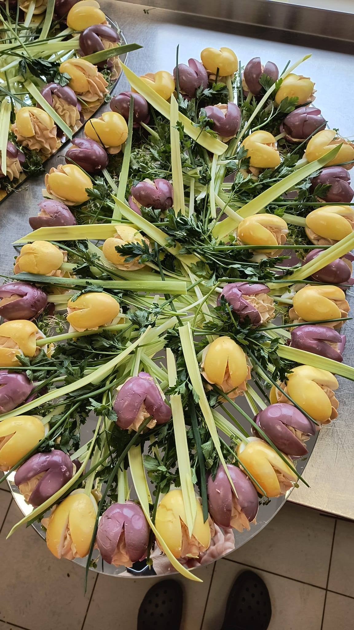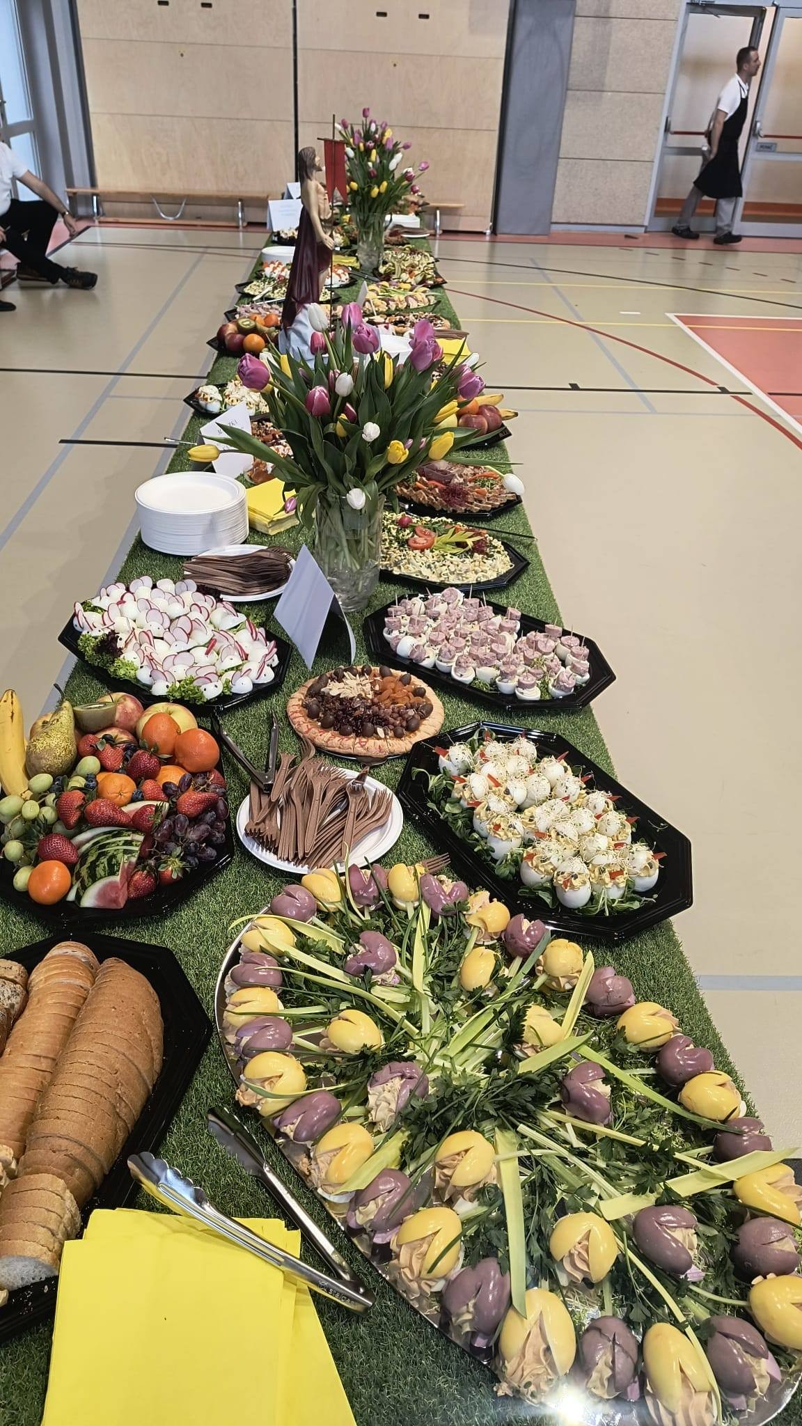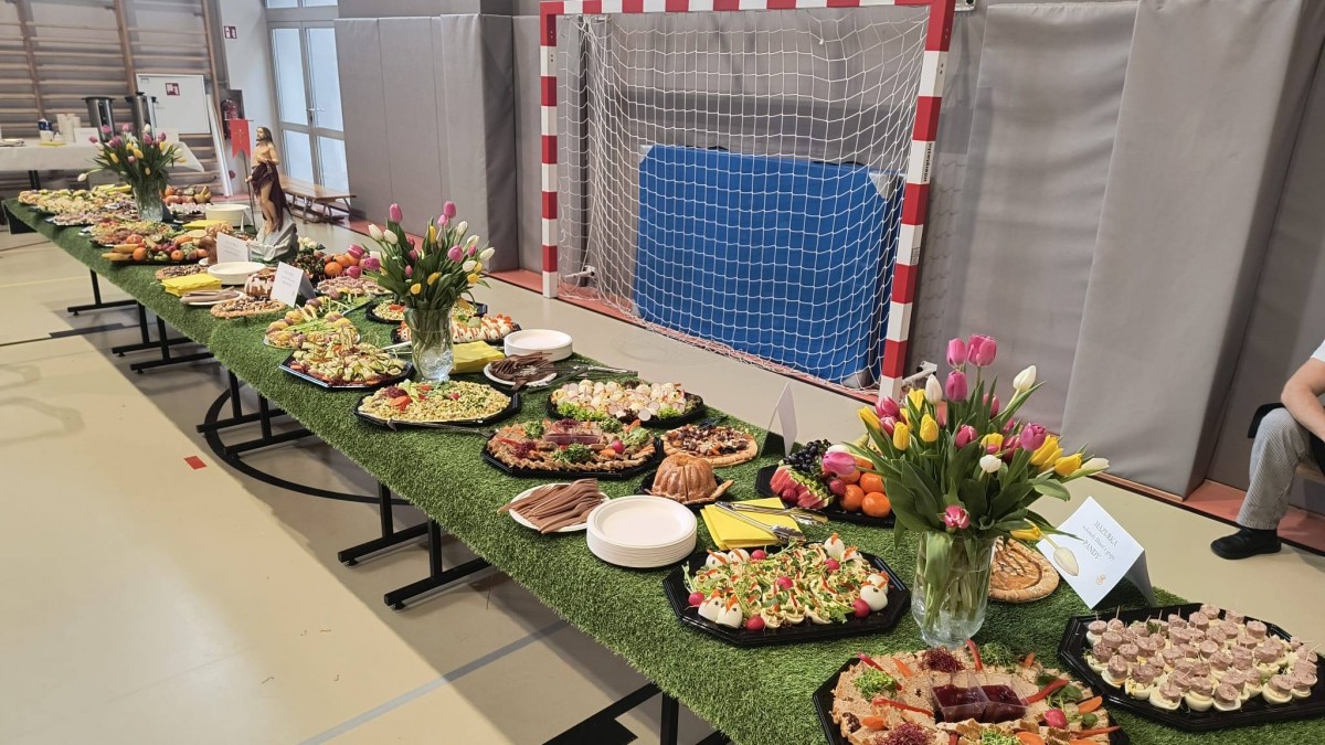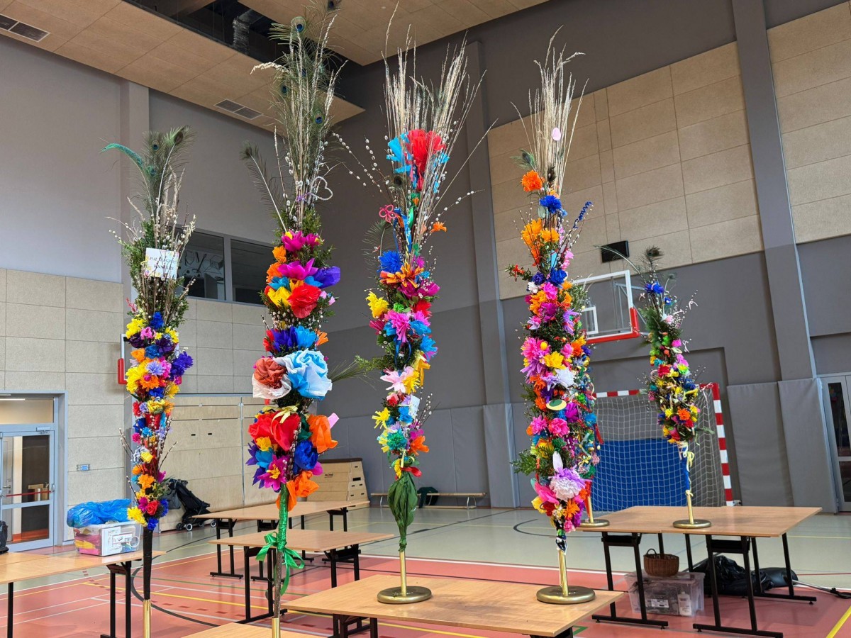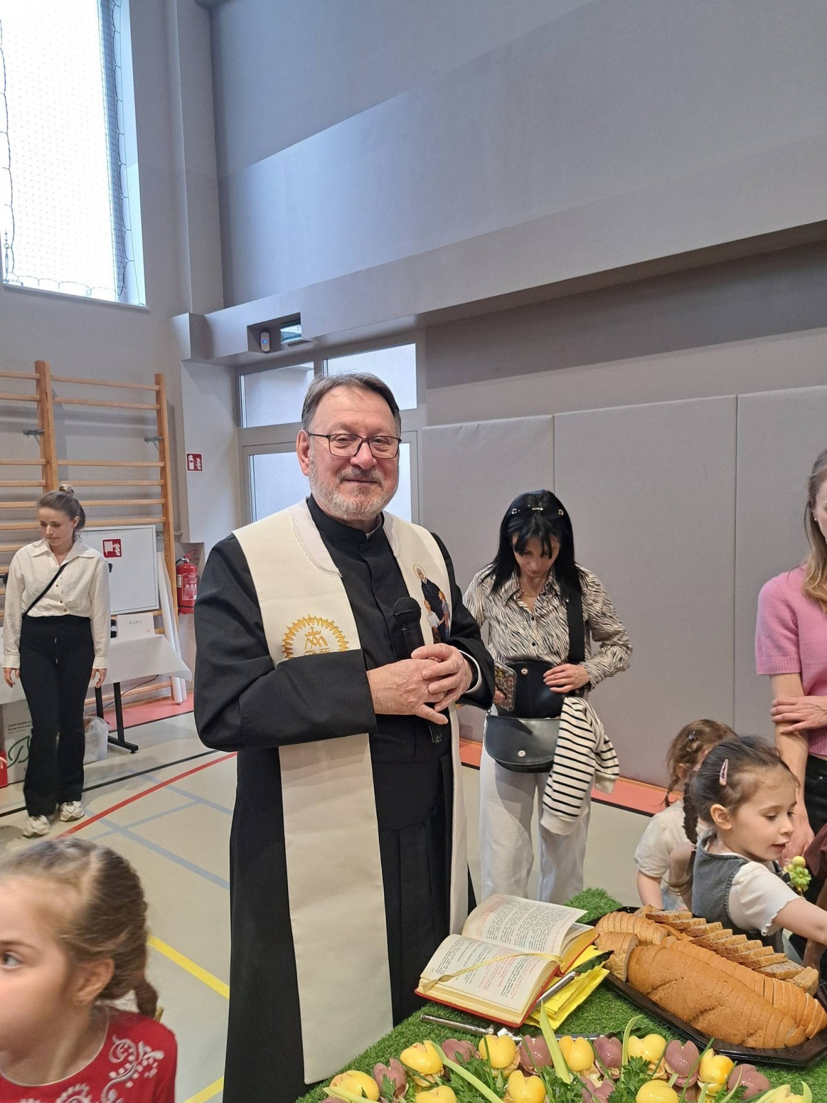 Wczoraj po południu gościła nas Pijarska Szkoła Podstawowa. O godzinie 15.00 całe Pijarskie Przedszkole z grupą żłobkową, Rodzice i Pracownicy Przedszkola zgromadziliśmy się w sali sportowej, aby podtrzymać naszą przedszkolną tradycję i przed Niedzielą Palmową wykonać wspólnie palmy. Po przywitaniu wszystkich przez Panią Dyrektor Ewę, grupy zabrały się do wykonania jednej wspólnej palmy. Powstałe palmy są piękne, kolorowe, wiosenne i bardzo radosne. Czujemy już Święta Wielkanocne. W najbliższą niedzielę Palmową o godzinie 16.00, każda grupa ze swoją Palmą w procesji wejdzie do kościoła Sanktuarium na Siekierkach. Niedzielą Palmową rozpoczniemy Wielki Tydzień a w nim Triduum Paschalne.Po wykonaniu palm w drugiej części sali czekał na wszystkich wielkanocny poczęstunek przygotowany przez naszych kucharzy. Po modlitwie i błogosławieństwie pokarmów przez Ojca Bogdana wspólnie świętowaliśmy. Dziękujemy wszystkim za włączenie się i pomoc w przygotowaniu tego świątecznego spotkania, które miało wyjątkowy charakter i pokazało, jak wiele radości może przynieść wspólne tworzenie i pielęgnowanie tradycji wielkanocnych.