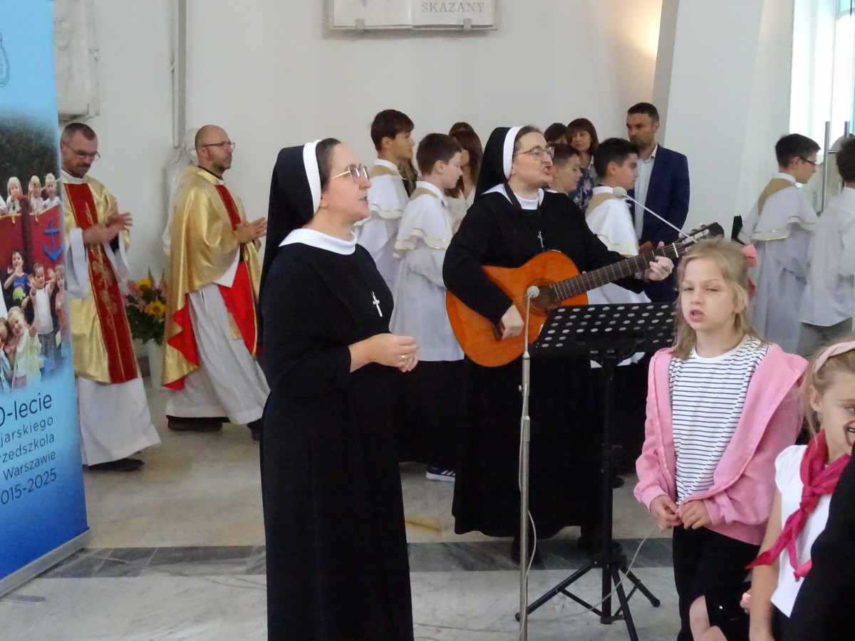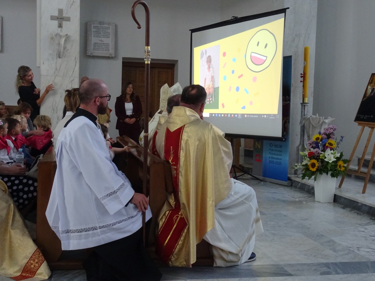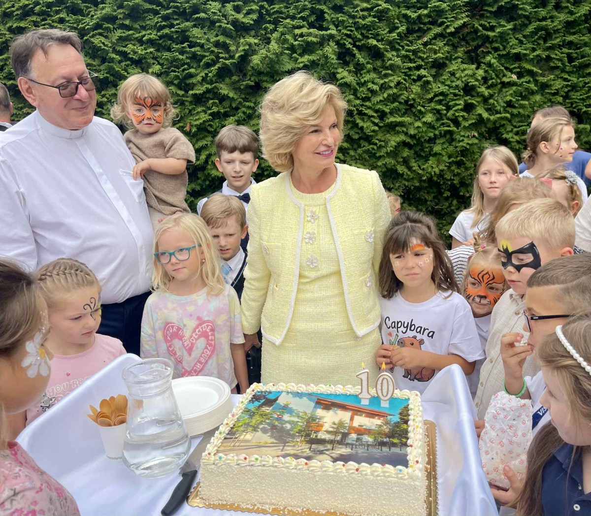 10 lat minęło jak jeden dzień! W minioną sobotę świętowaliśmy jubileusz 10-lecia Pijarskiego Przedszkola w Warszawie. Rozpoczęliśmy ten wyjątkowy dzień uroczystą Mszą Świętą, którą przewodniczył Jego Eminencja ks. Kardynał Kazimierz Nycz. Dyrektor przedszkola Ojciec Bogdan Dufaj powitał wszystkich bardzo serdecznie po czym nastąpiło uroczyste nadanie patrona placówce Czcigodnego Gliceriusza Landrianiego. Po mszy św. przenieśliśmy się do naszego przedszkola, gdzie czekało mnóstwo atrakcji dla małych i dużych.Dzieci mogły korzystać z kącików twórczych – było malowanie buziek, kamieni i wielkiego płótna, a także wspólne odkrywanie w kąciku kulinarnym i eksperymentów. Nie zabrakło też kącika czytelniczego oraz emocji przy kole fortuny, w którym szczęścia próbowali zarówno najmłodsi, jak i dorośli.Na zakończenie na wszystkich czekał pyszny tort z cukierni Czubak, który został pokrojony przez dyrekcję przedszkola Był to piękny czas spotkań, radości i wspomnień – dziękujemy, że jesteście z nami i współtworzycie to miejsce Niech Patron Pijarskiego Przedszkola w Warszawie, Czcigodny Gliceriusz Landriani wyprasza potrzebne łaski u Boga na kolejne 10 lat.