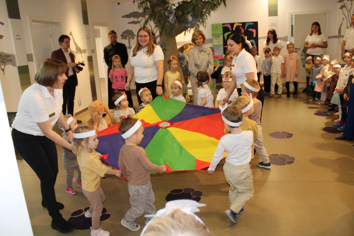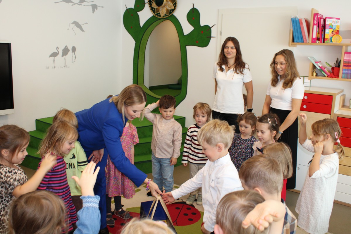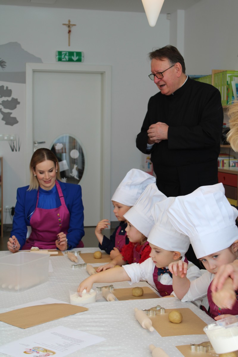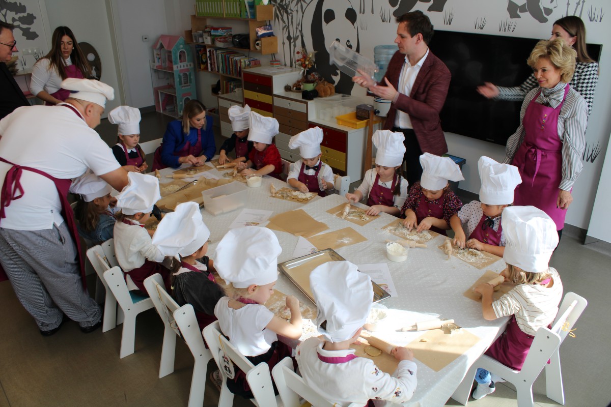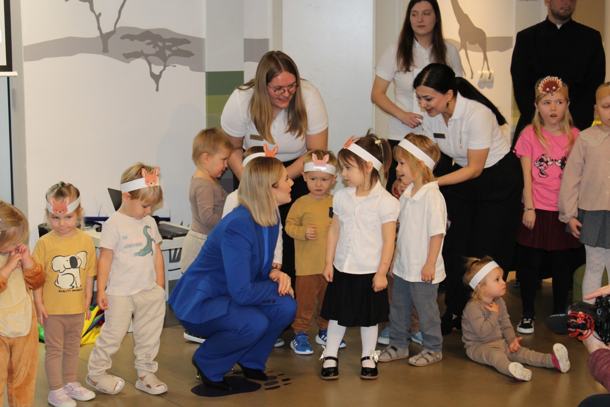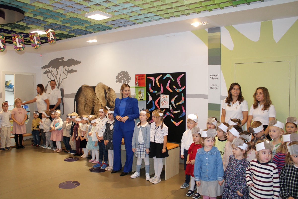 Wizyta Małżonki Prezydenta Polski, Pani Marty Nawrockiej w Pijarskim Przedszkolu w Warszawie, 13.10.2025 r.W ramach trwającego Jubileuszu Pijarskiego Przedszkola w Warszawie i przed dzień Święta Edukacji Narodowej odwiedziła nas Małżonka Prezydenta Polski - Pani Marta Nawrocka. Po przywitaniu przez Dyrekcję Przedszkola Panią Ewę, Panią Agnieszkę, o. Bogdana SP i o. Rafała SP, Rektora Kolegium Zakonu Pijarów Pierwsza Dama zwiedziła nasze przedszkole. Na początku zobaczyła salę poświęconą Państwu Halinie i Kazimierzowi Wąsowskich, naszym darczyńcom, następnie kuchnię a także spotkała się z jej personelem. Pani Dyrektor Ewa zapoznała naszego Gościa z historią Pijarskiego Przedszkola i pokazała galerię zdjęć z jego budowy. Dzieci z wychowawcami oraz pracownicy przedszkola były zebrane na holu pod Baobabem, gdzie Pani Dyrektor Ewa przywitała Małżonkę Prezydenta Polski, dzieci oraz pracowników przedszkola. Pani Wicedyrektor Agnieszka zaprosiła wszystkich do obejrzenia występu Grupy Kangury. W ramach programu „Mały Europejczyk zwiedza świat” dzieci z opiekunkami przedstawiły nam Australię i zwierzątka tam żyjące oraz zaśpiewały i zatańczyły piosenkę o kangurkach. Następnie dzieci z grupy Pingwiny zadawały małżonce Prezydenta Polski pytania. Po pytaniach przedszkole zaśpiewało piosenkę o św. Józefie Kalasancjuszu pt. „ W dalekiej Hiszpanii”. Następnie nasz Gość uczestniczył w warsztatach kulinarnych z grupą Pandy, gdzie wspólnie z dziećmi Pierwsza Dama robiła ciasteczka w kształcie kangurków. Na zakończenie delegacja dzieci podziękowała Małżonce Prezydenta Polski Pani Marcie Nawrockiej za wizytę wręczając własnoręcznie wykonaną laurkę oraz bukiet kwiatów.Wspólnota Pijarskiego Przedszkola w Warszawie bardzo dziękuje Pierwszej Damie za poświęcony czas, przemiłą wizytę oraz za prezenty przekazane wszystkim przedszkolakom i żłobkowiczom - piękne gry i książki.