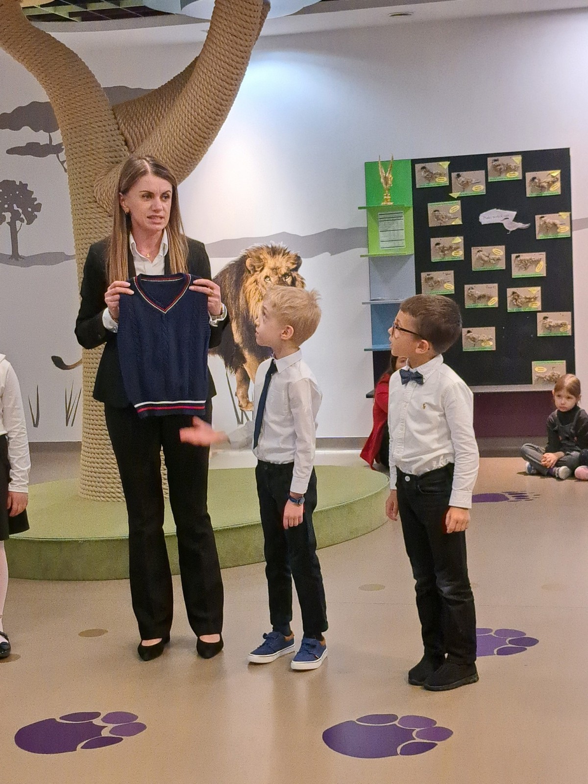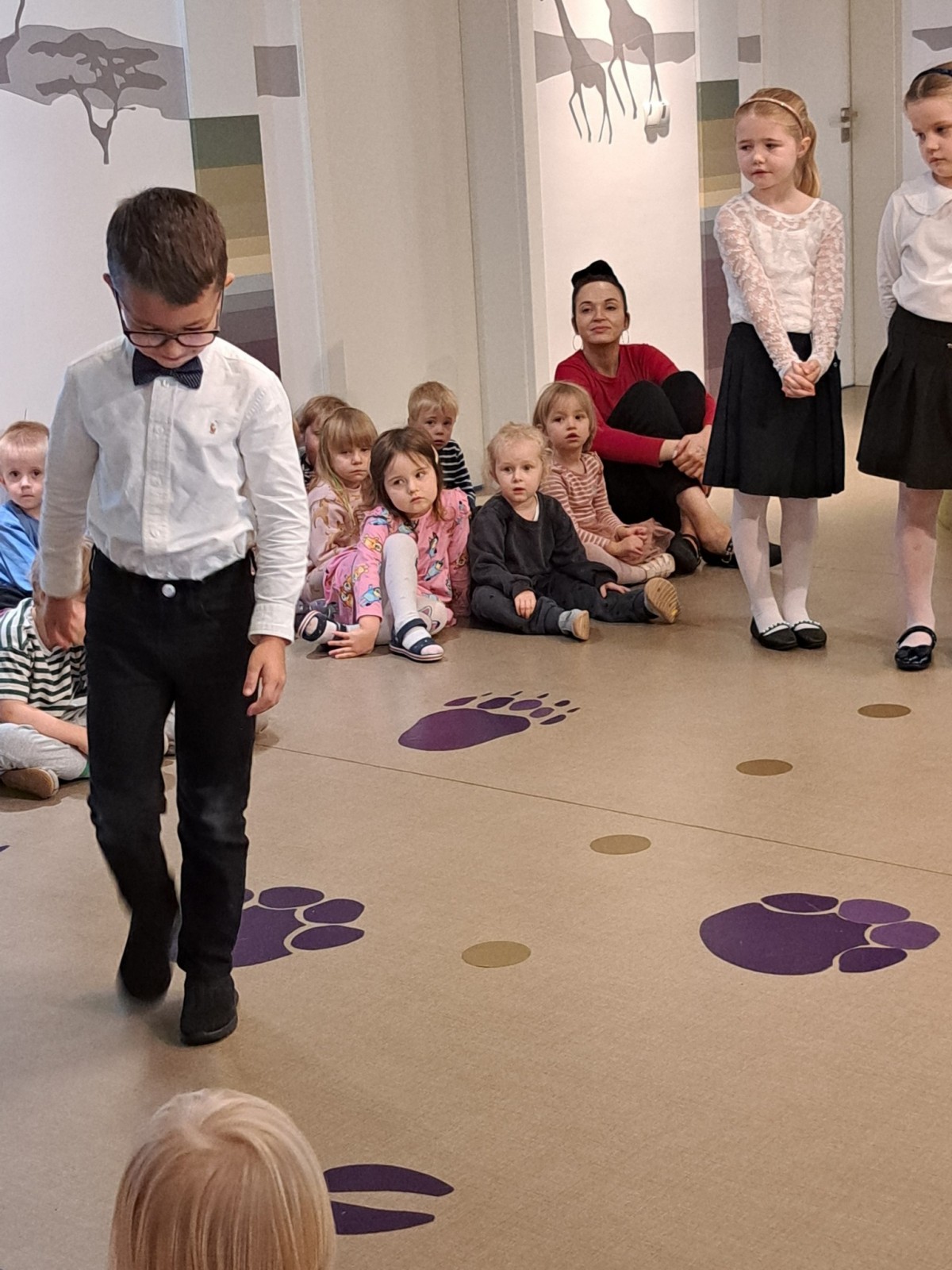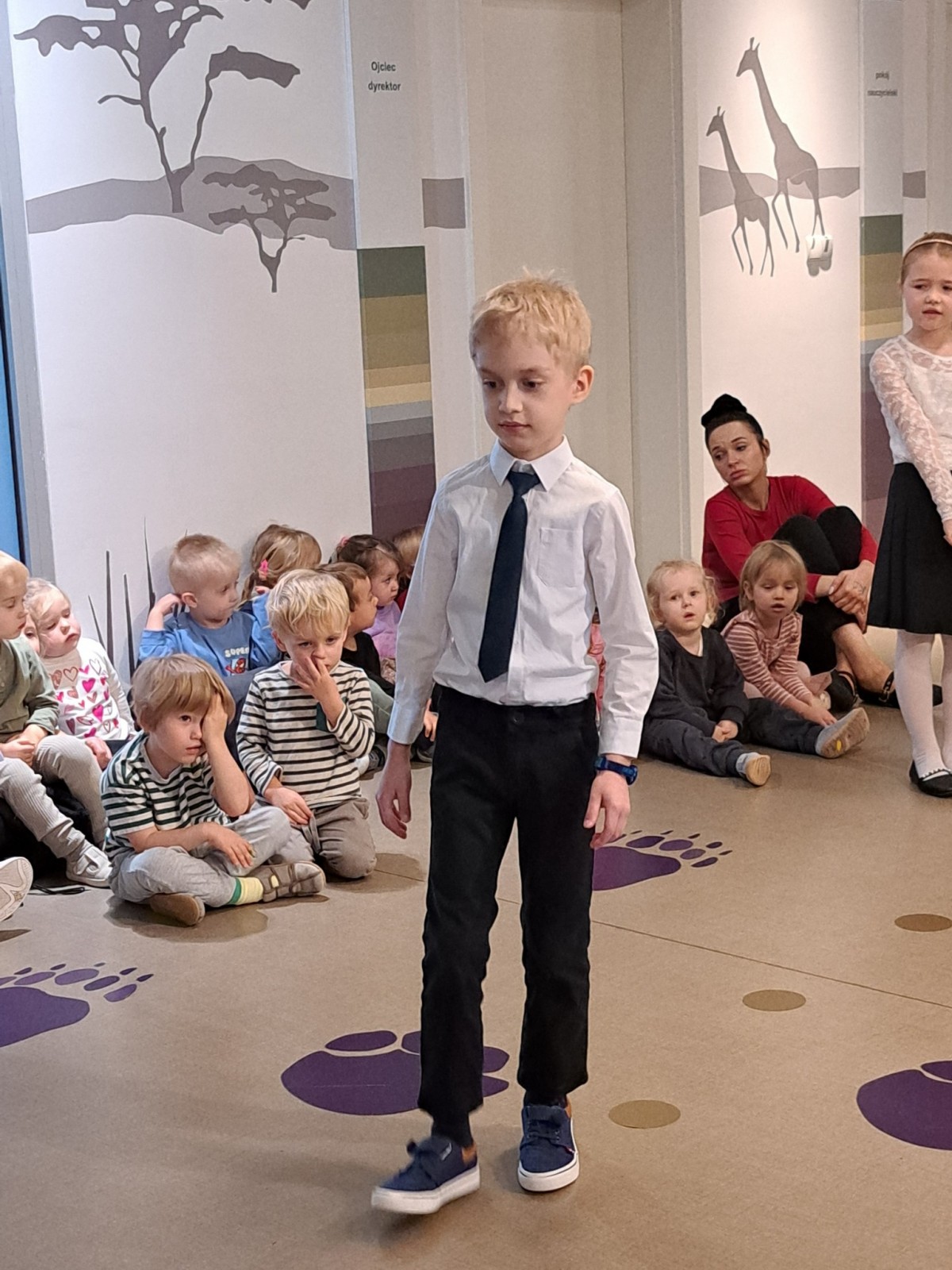 W ramach zajęć Bon czy ton - Savoir vivre dla Dzieci przedszkolaki dowiedziały się jaki strój galowy obowiązuje w naszym przedszkolu i na jakie okazje go zakładamy.Dla dziewczynki: biała bluzka/koszula,czarna/granatowa spódniczka lub czarna/granatowa sukienka z białym kołnierzykiem. Dla chłopca: biała bluzka/koszula, czarne/granatowe spodnie. Do tego czarne/granatowe pantofelki Dziękujemy dzieciom z grupy Pingwiny za prezentację swoich strojów galowych dla wszystkich przedszkolaków.