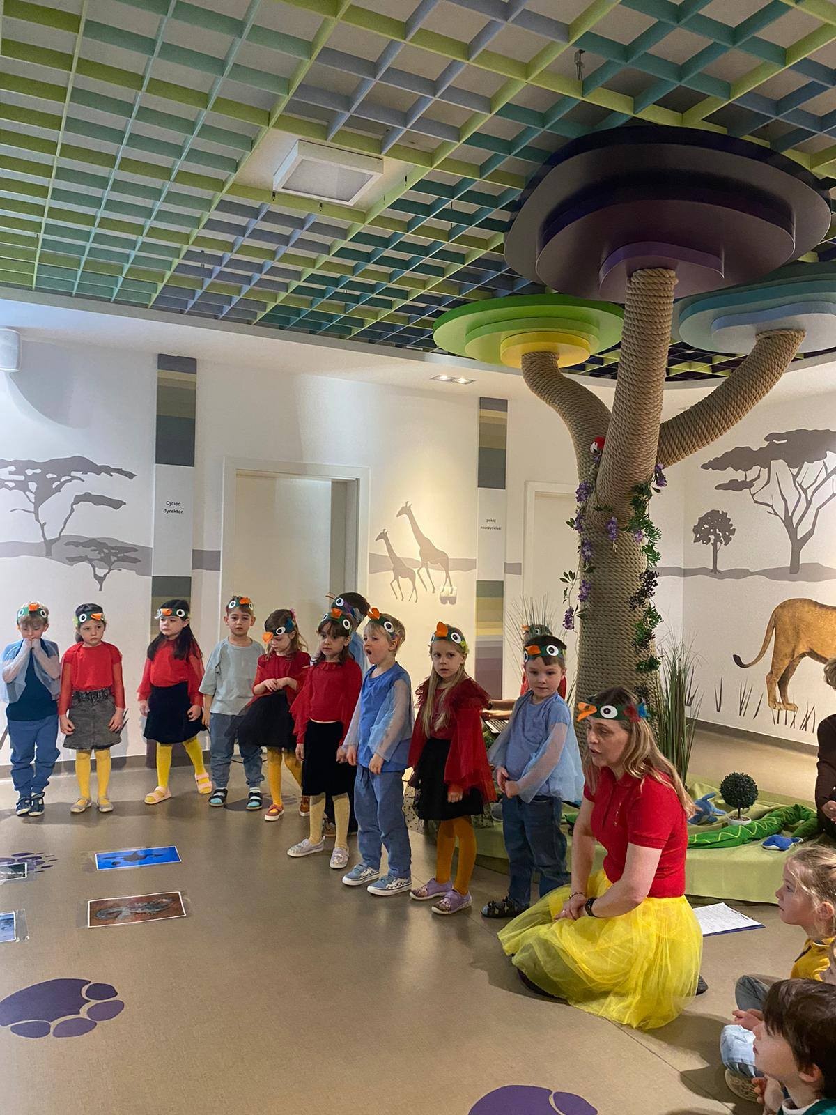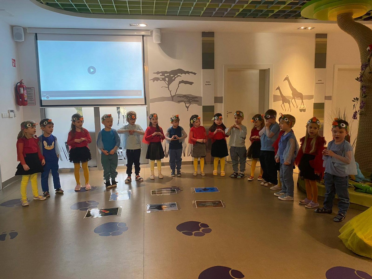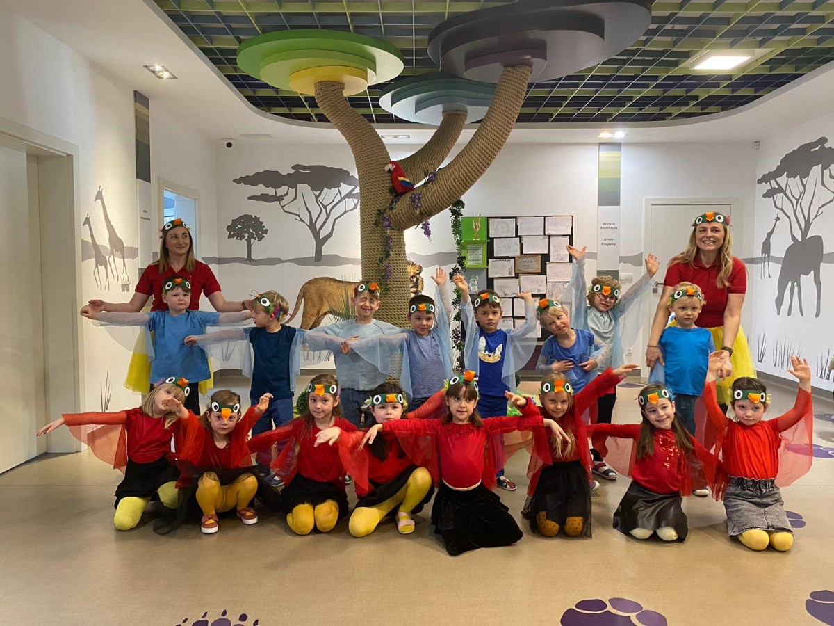 Dzisiaj w ramach Klubu Małego Europejczyka, grupa Pancerniki wraz z nauczycielkami, przygotowała prezentację o zwierzętach Ameryki Południowej, na której były pokazywane nie tylko piękne kadry z tamtego rejonu ale i zwierzęta takie jak lama, anakonda czy kolorowe papugi ary . W nawiązaniu do ostatnich zwierząt, grupa przygotowała wesoły papugowy występ. Serdeczne dziękujemy Pani Kindze, która przygotowała choreografię i nadzorowała nią podczas tego wyjątkowego dnia.