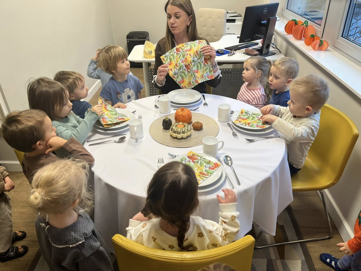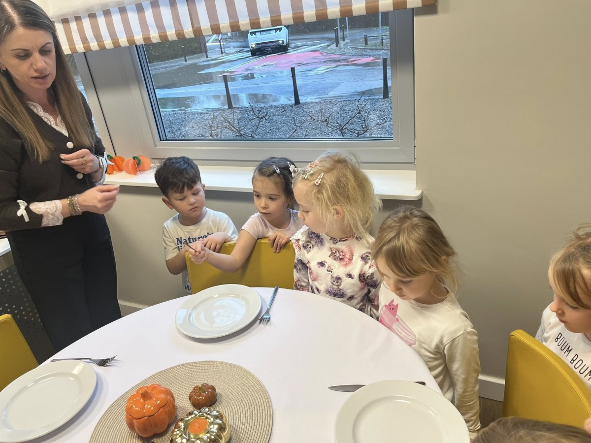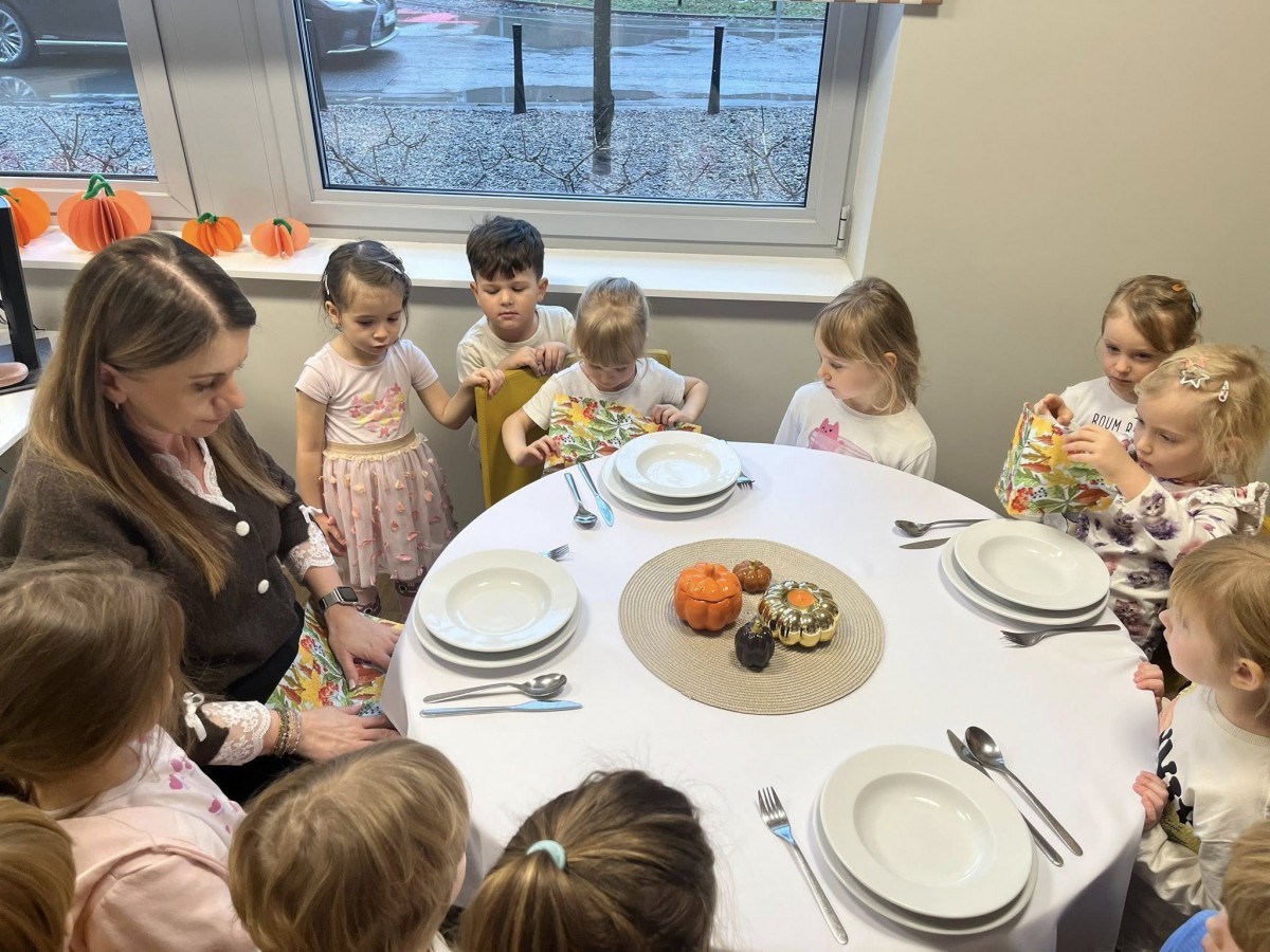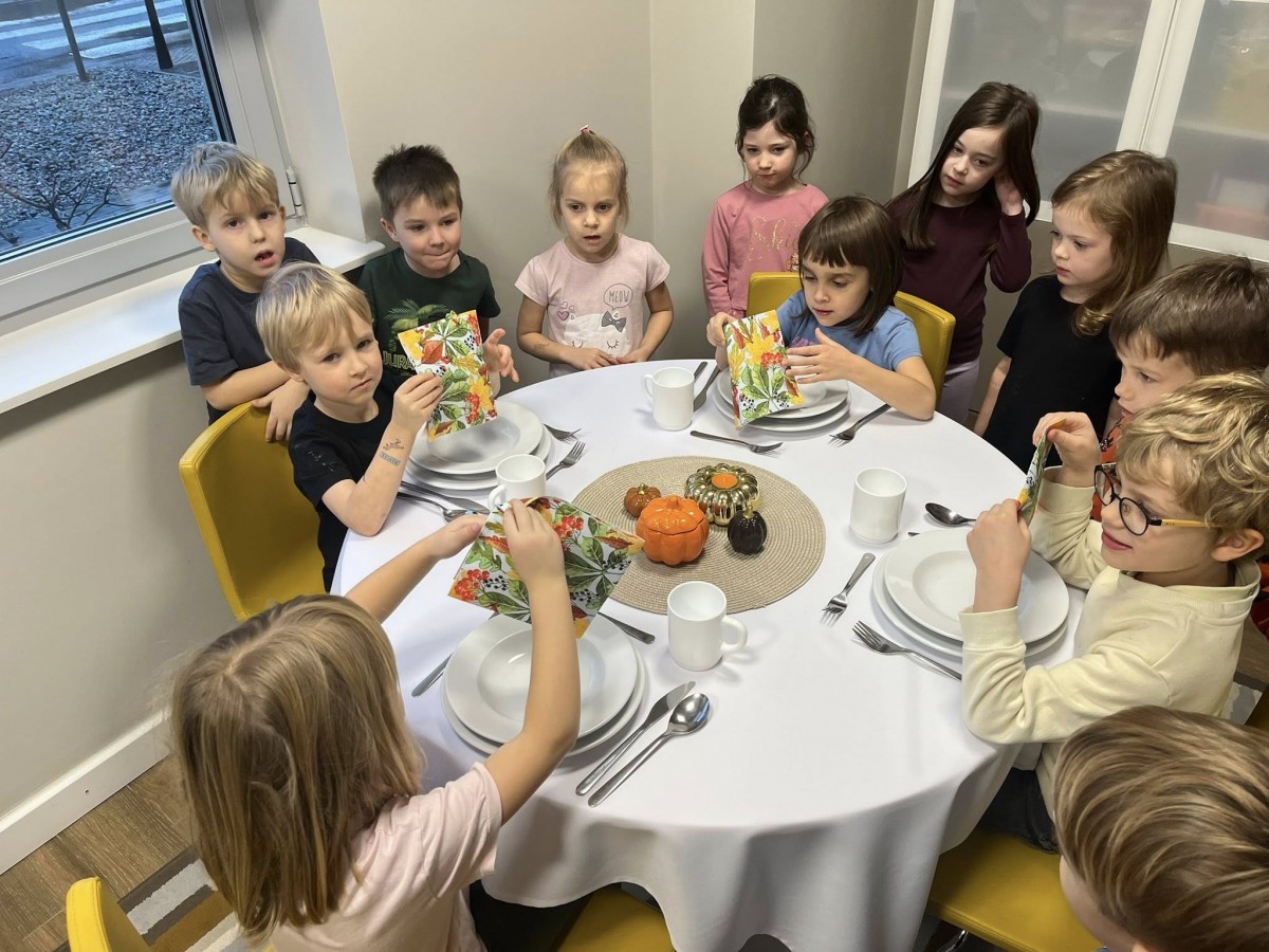W ramach zajęć Bon czy ton - Savoir vivre w tym miesiącu dzieci uczyły się nakrywania do stołu, układania talerzy, sztućców, serwetek, podawania kolejności dań oraz właściwego ich spożywania.