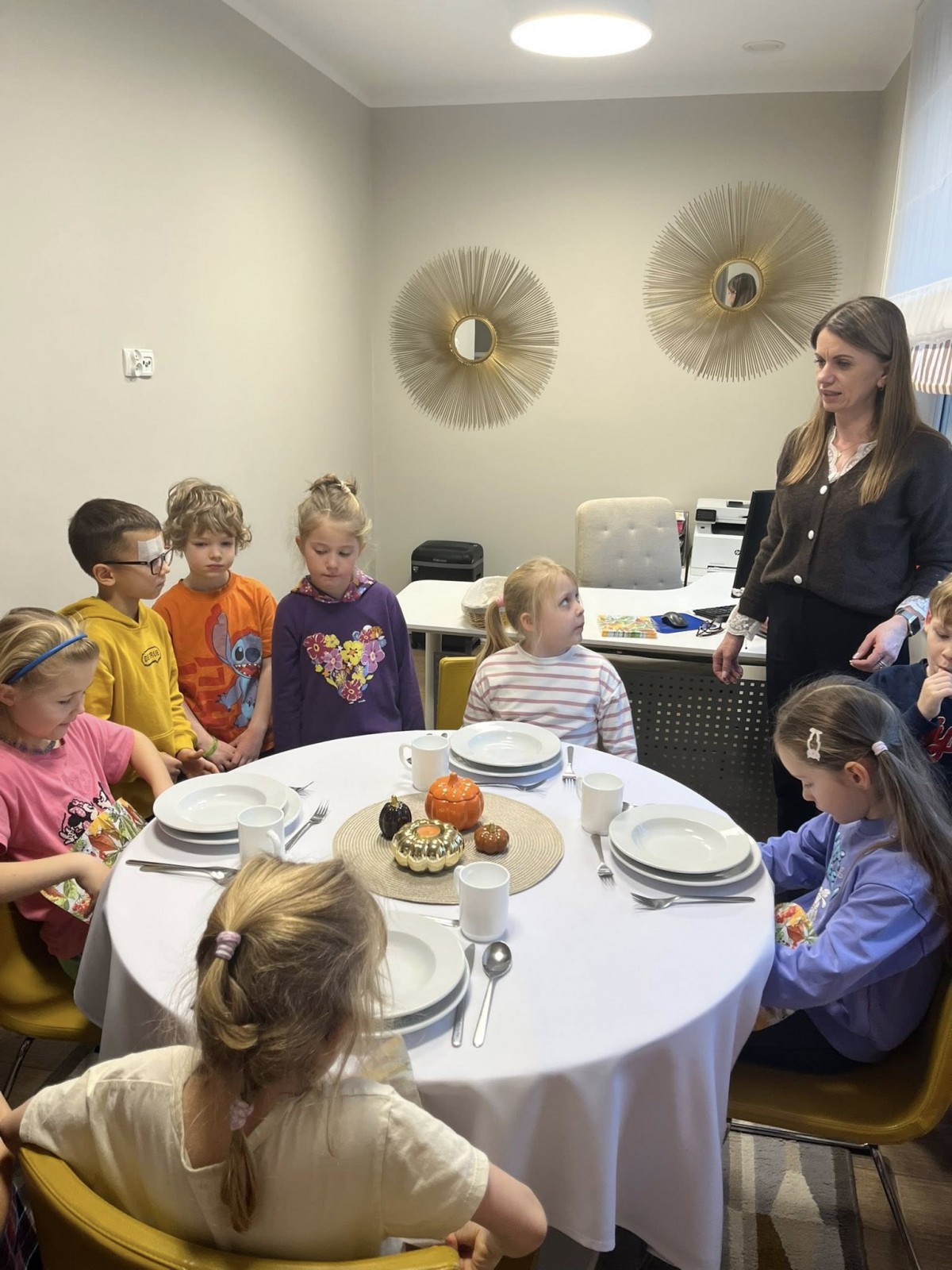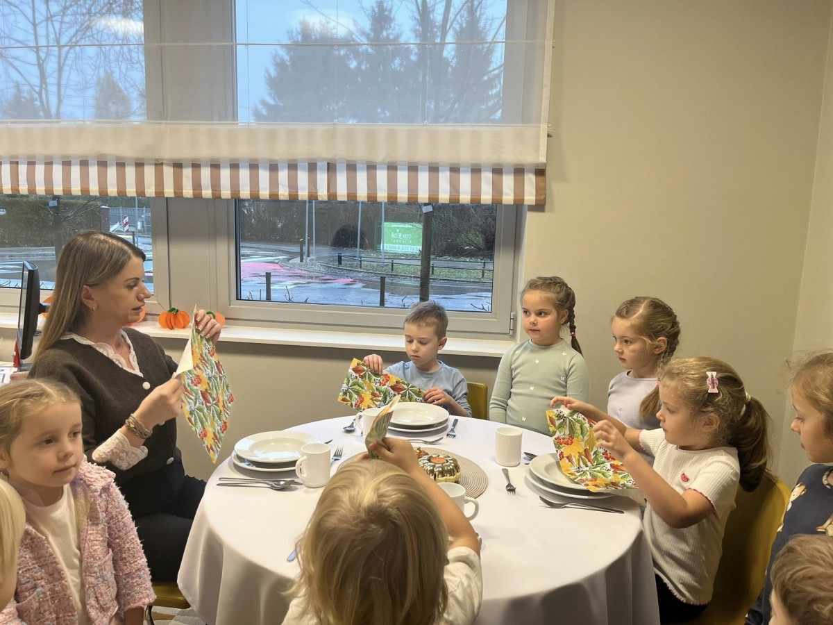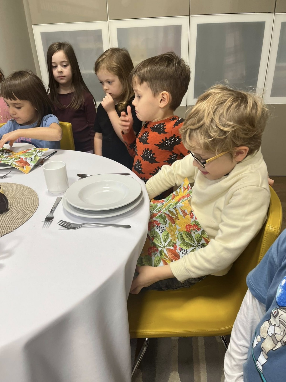 W ramach zajęć Bon czy ton - Savoir vivre w tym miesiącu dzieci uczyły się nakrywania do stołu, układania talerzy, sztućców, serwetek, podawania kolejności dań oraz właściwego ich spożywania.