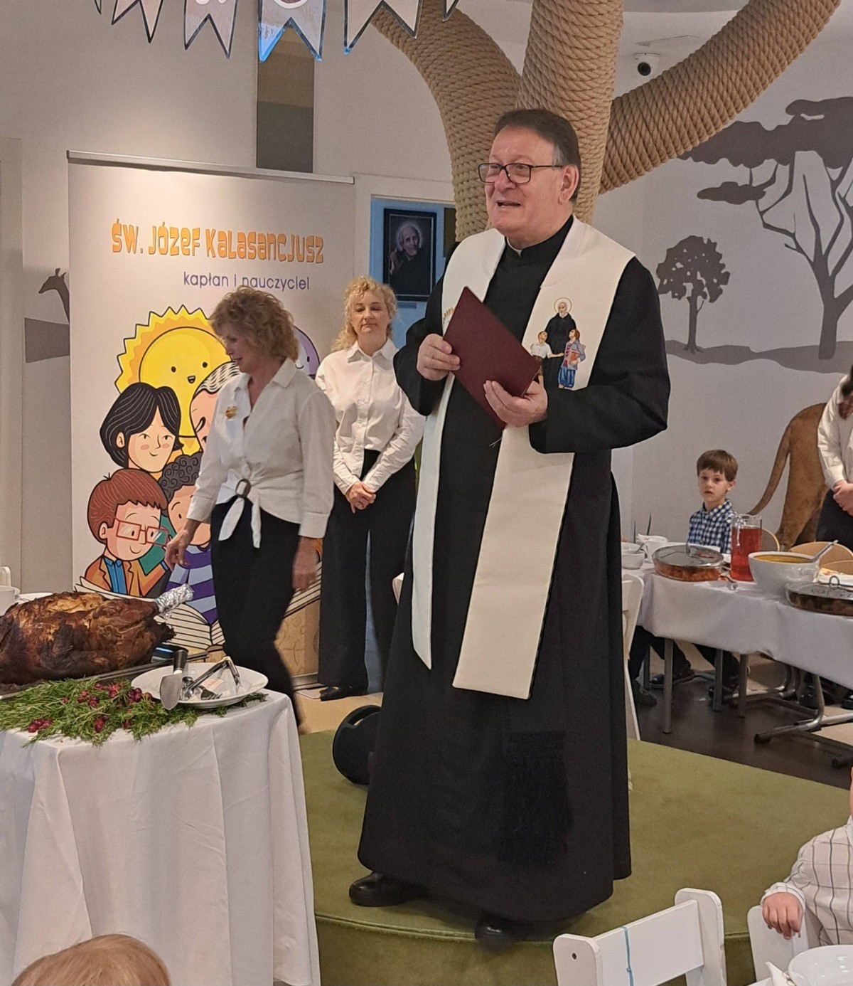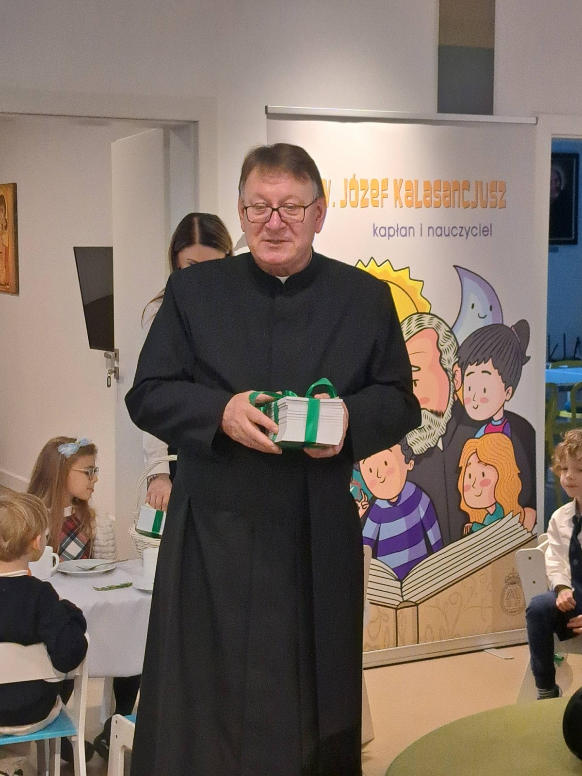 Dzisiaj w naszym przedszkolu obchodziliśmy PATROCINIUM święto opieki św. Józefa Kalasancjusza. Wspólnie z Ojcem Bogdanem modliliśmy się o opiekę św. Józefa Kalasancjusza i na jego cześć zaśpiewaliśmy piosenkę - Kalasancjuszu prowadź nas... Dzieci otrzymały pamiątkowe kolorowanki i książeczki o św. Józefie Kalasancjuszu.
