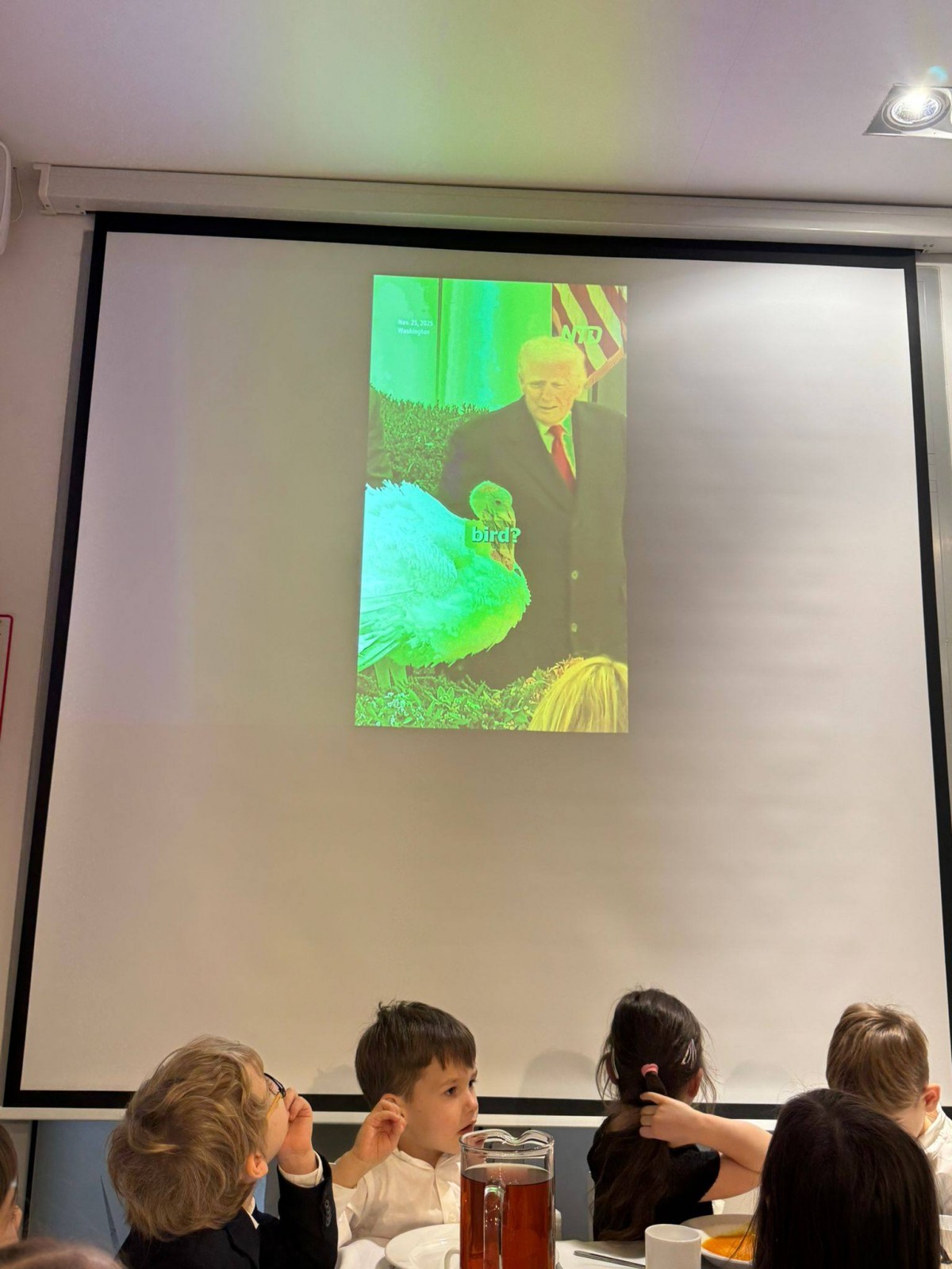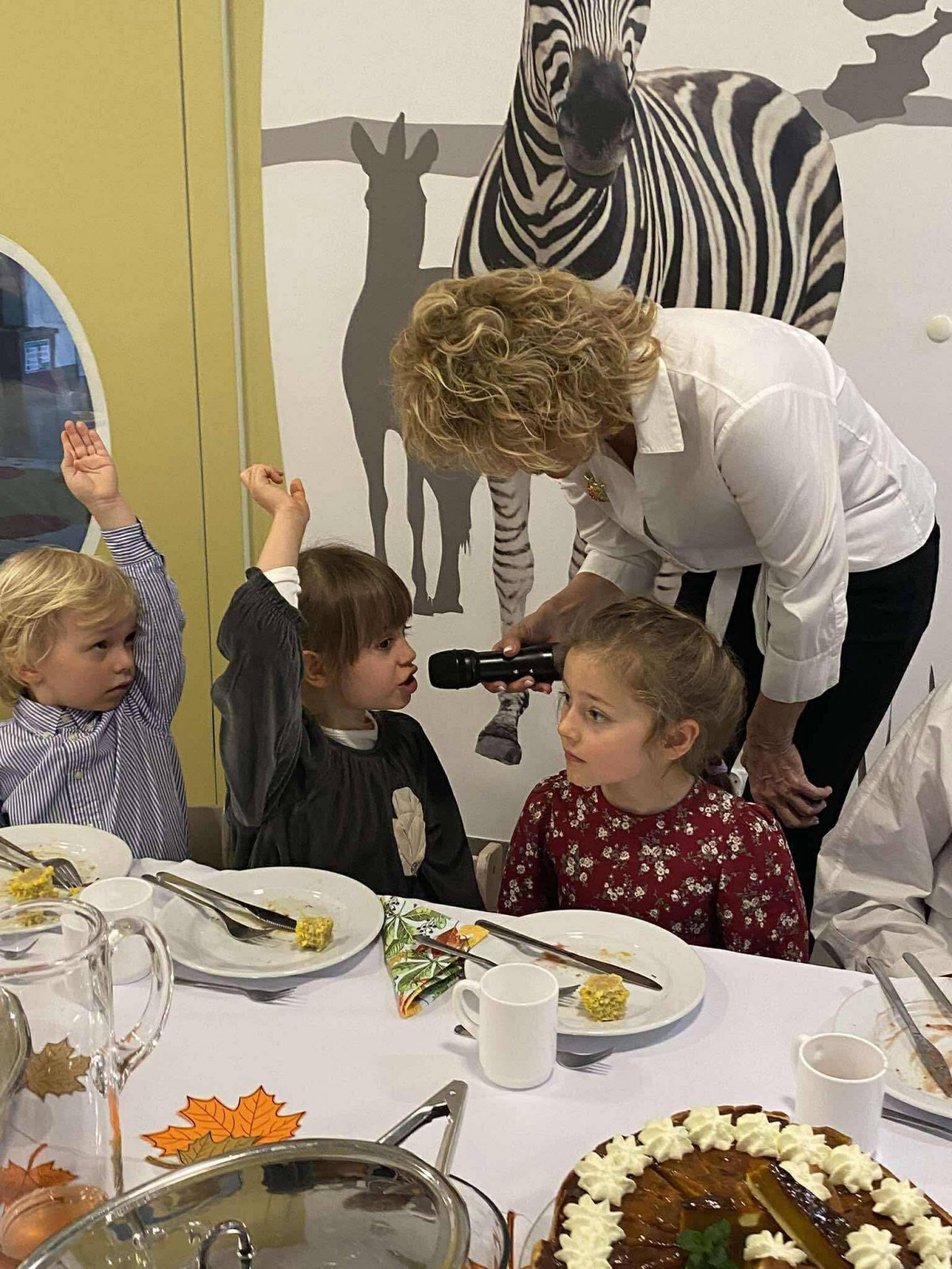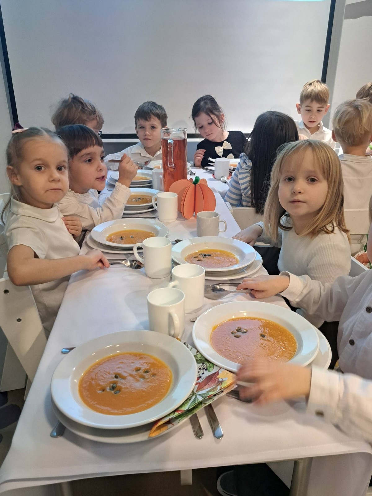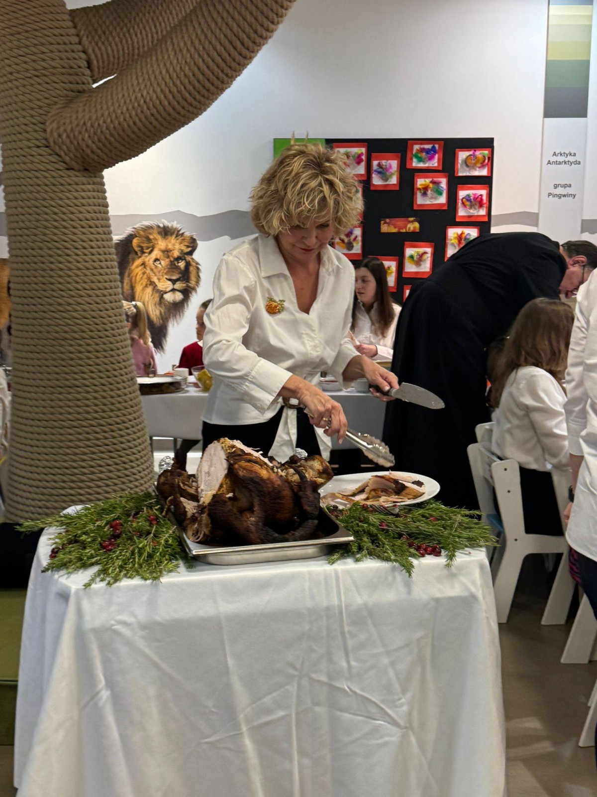 Dzisiaj nasze przedszkole wypełniło się wyjątkową atmosferą Święta Dziękczynienia. To piękna tradycja, która sięga 1621 roku, kiedy osadnicy z Plymouth, wraz z rdzenną ludnością Ameryki, po raz pierwszy zasiedli razem do stołu, by w jedności i wdzięczności podziękować Bogu za życie, plony i wzajemną życzliwość. Ta historia wciąż przypomina, jak ważne jest zatrzymanie się i dostrzeżenie dobra, które otrzymujemy każdego dnia od Pana Boga.Właśnie w tym duchu usiedliśmy dziś wszyscy do wspólnego, przedszkolnego stołu.A nasze dzieci były absolutnie cudowne. Podczas posiłku dziękowały za to, co dla nich najważniejsze: za rodzinę, rodziców, rodzeństwo, za swoje panie, za rytmikę, za angielski i hiszpański za zabawki, za przedszkole i za pokój na świecie. Ich proste, szczere słowa wzruszały i przypominały, jak wiele piękna kryje się w dziecięcej wdzięczności.Na naszych stołach nie zabrakło tradycyjnych potraw: pysznego indyka, smakowitych dodatków i obowiązkowego ciasta dyniowego.Z serca dziękujemy naszym kucharzom za pracę, której owocem był ten niezwykły posiłek. To był dzień pełen ciepła, wdzięczności i bycia razem.Dzień, który na długo zostanie w naszej pamięci.