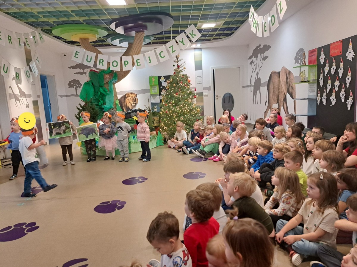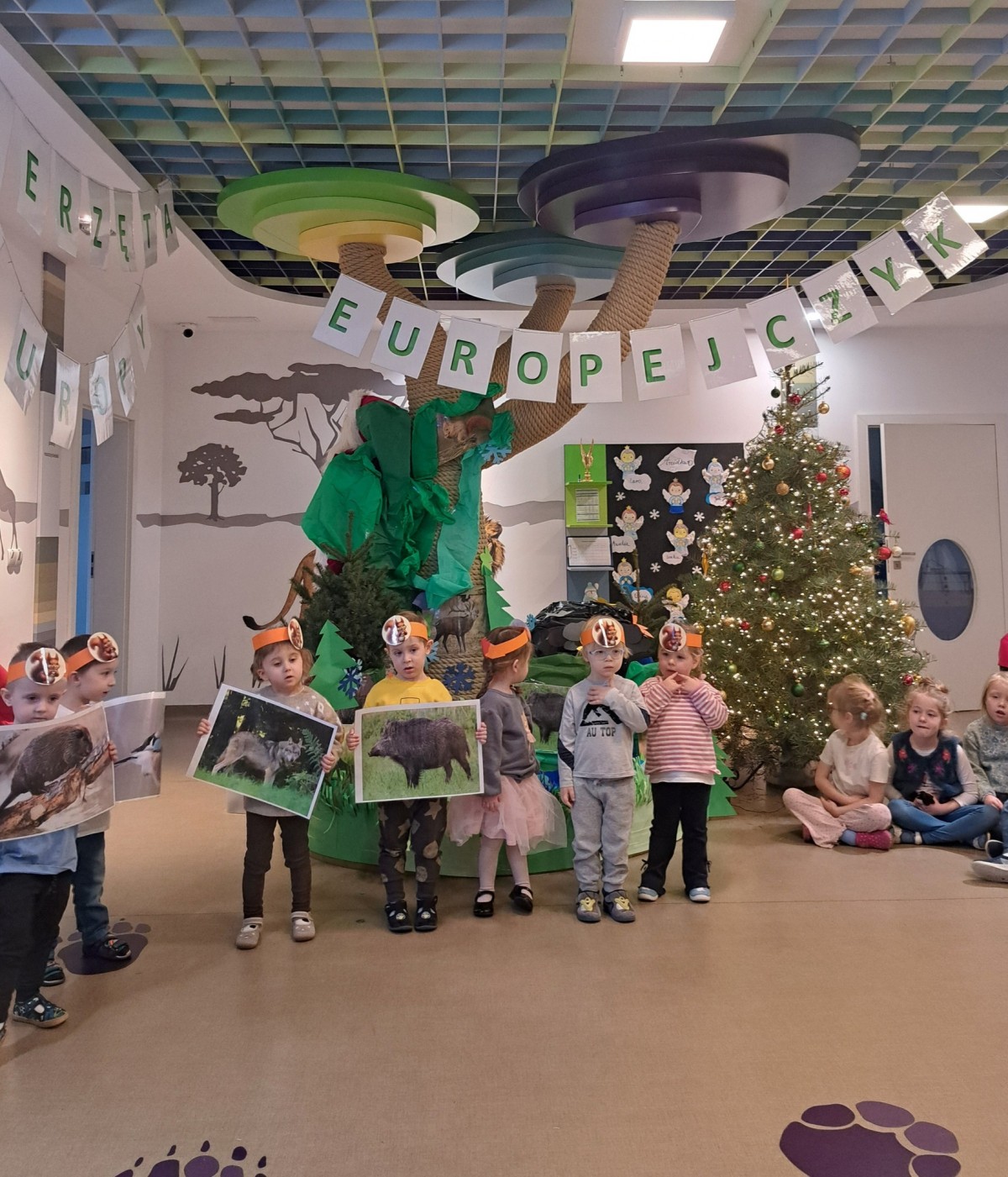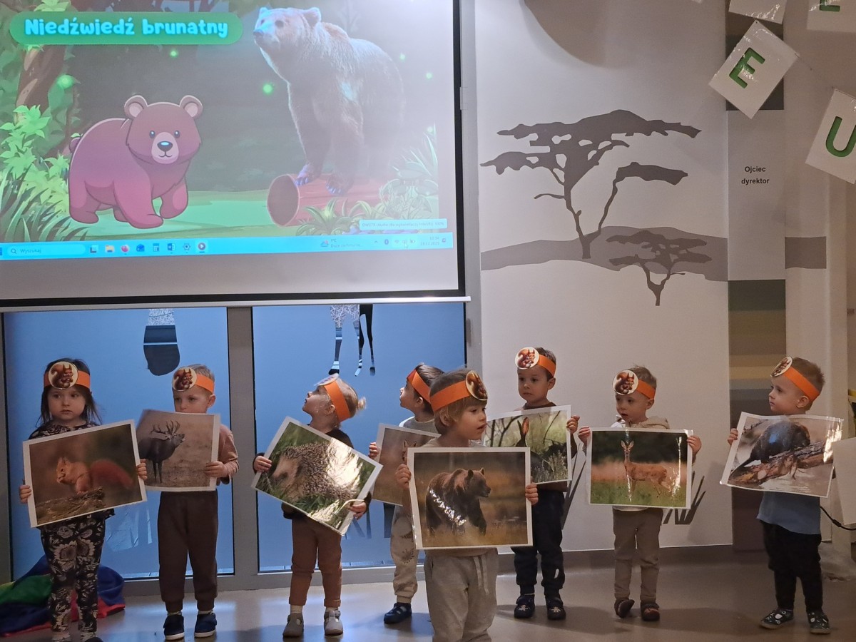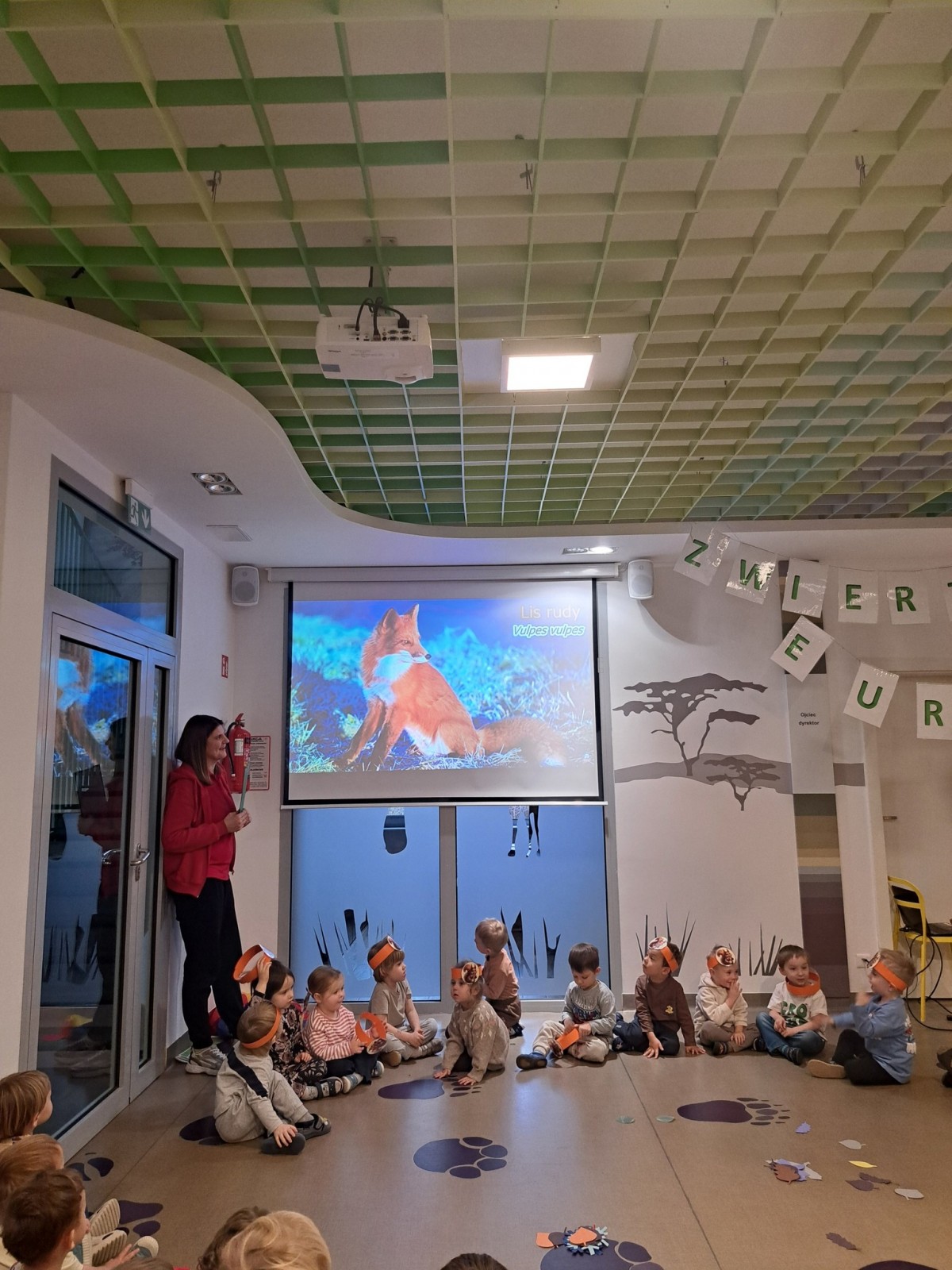 W ramach Klubu Małego Europejczyka, grupa Wiewiórki przygotowała występ na temat Zwierząt Europy- dzików saren, jeleni oraz wiewiórek. Dzieci przedstawiły poszczególne zwierzęta na zdjęciach, opowiedziały o nich oraz zatańczyły kolorowy taniec z chustą Na sam koniec, nauczycielki z grupy zorganizowały quiz wiedzy o zwierzętach oraz słuchowisko Bardzo dziękujemy za uroczy występ!