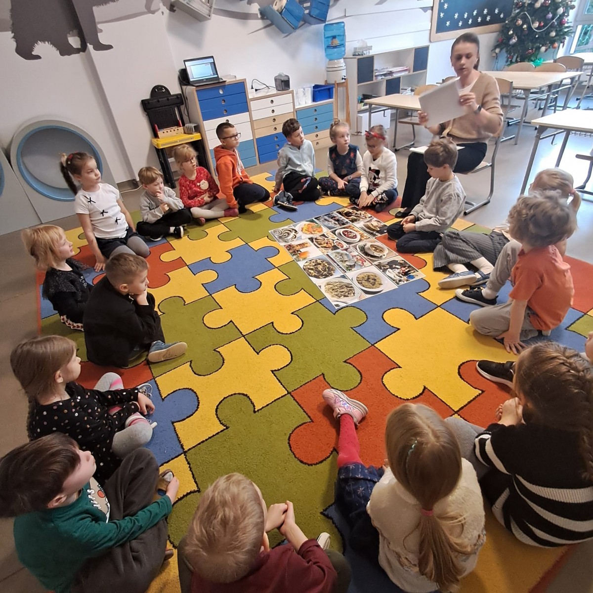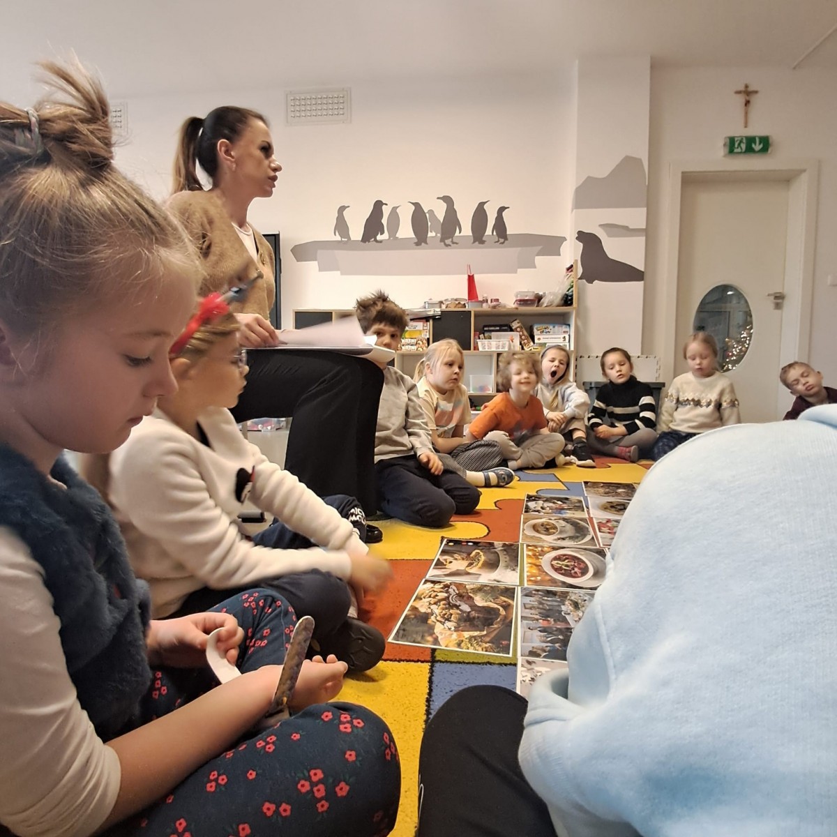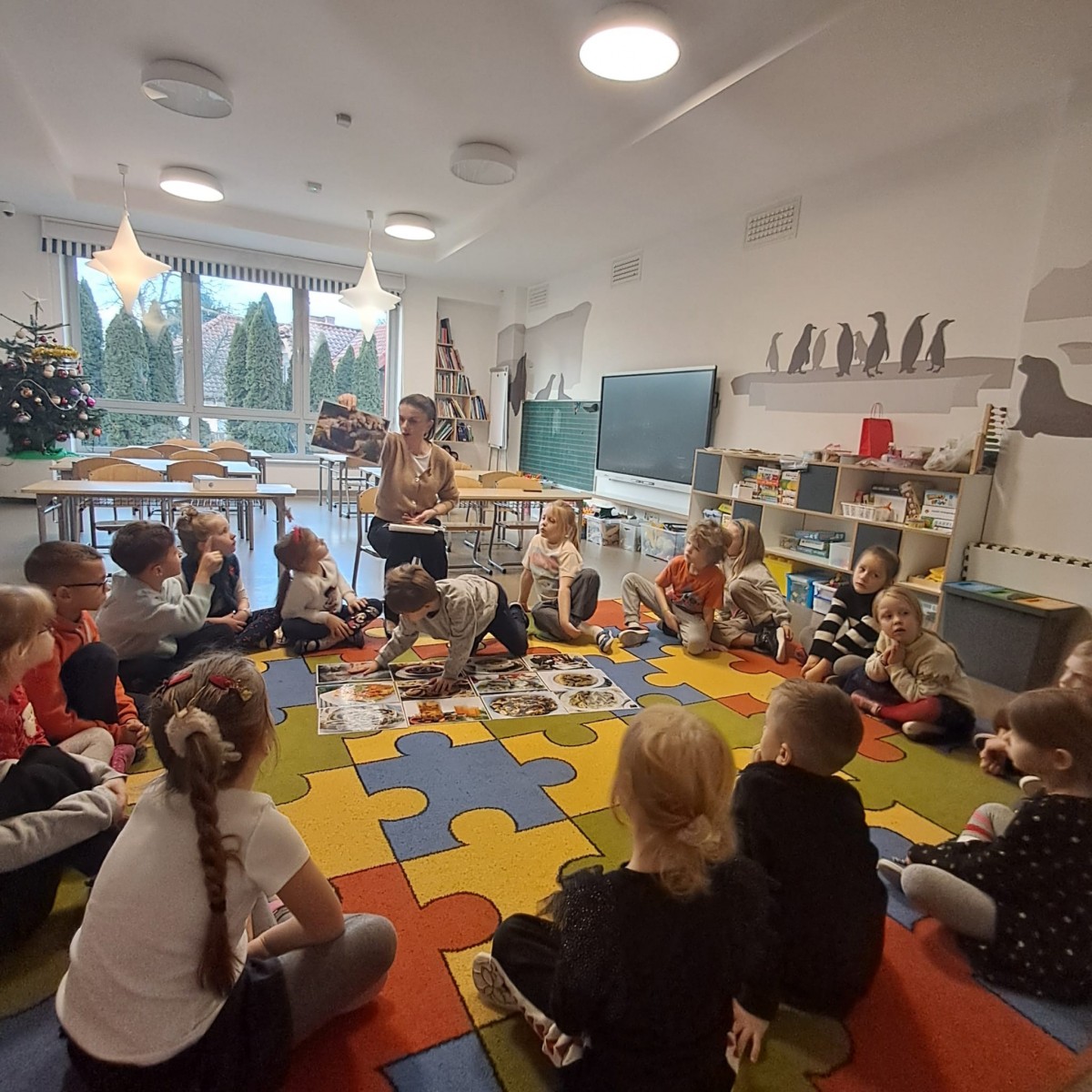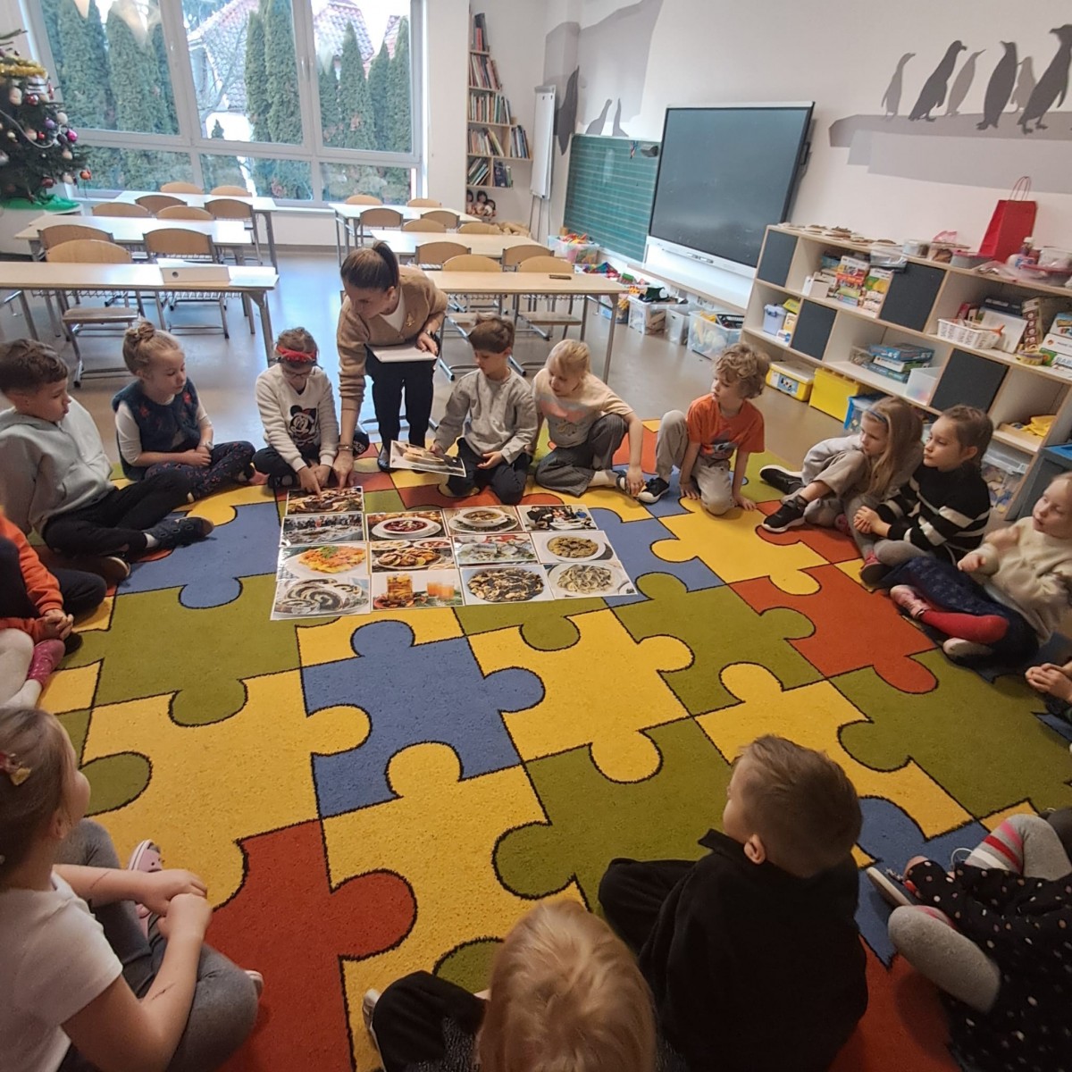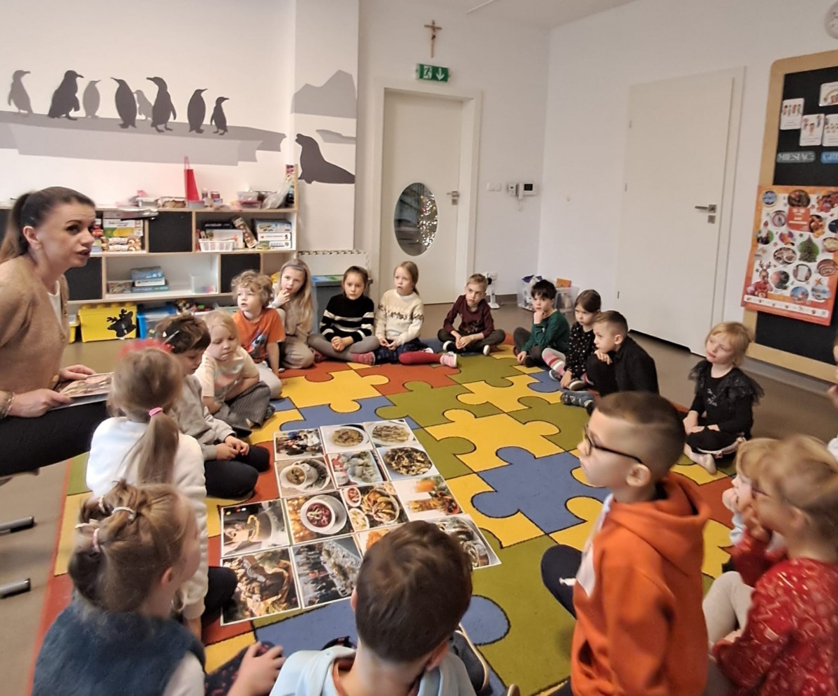 W tym miesiącu w ramach zajęć Savoir-vivre dla Dzieci przedszkolaki dowiedziały się co oznacza słowo "wigilia", jakie są symbole wigilijne, tradycje świąteczne oraz jakie i ile potraw należy przygotować na kolację wigilijną.