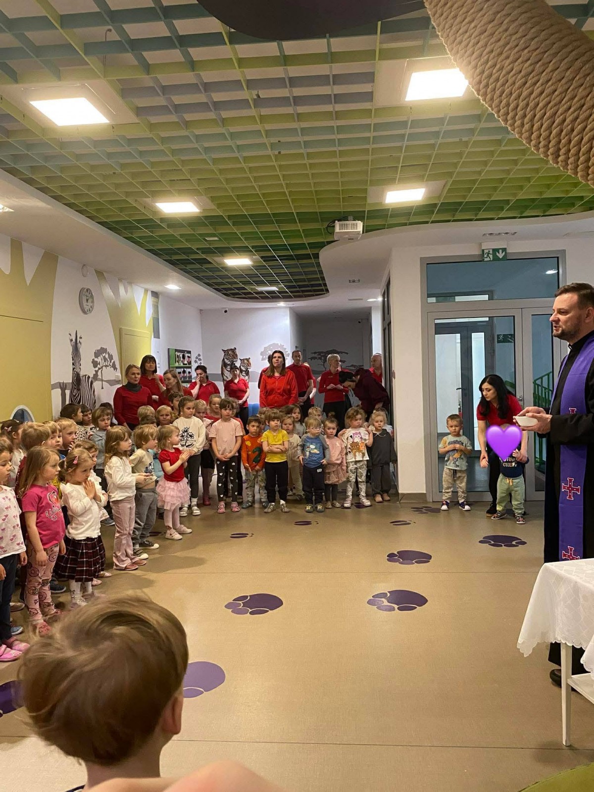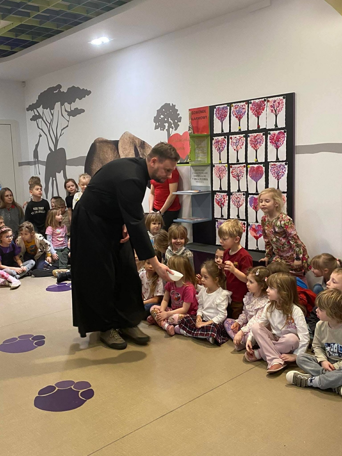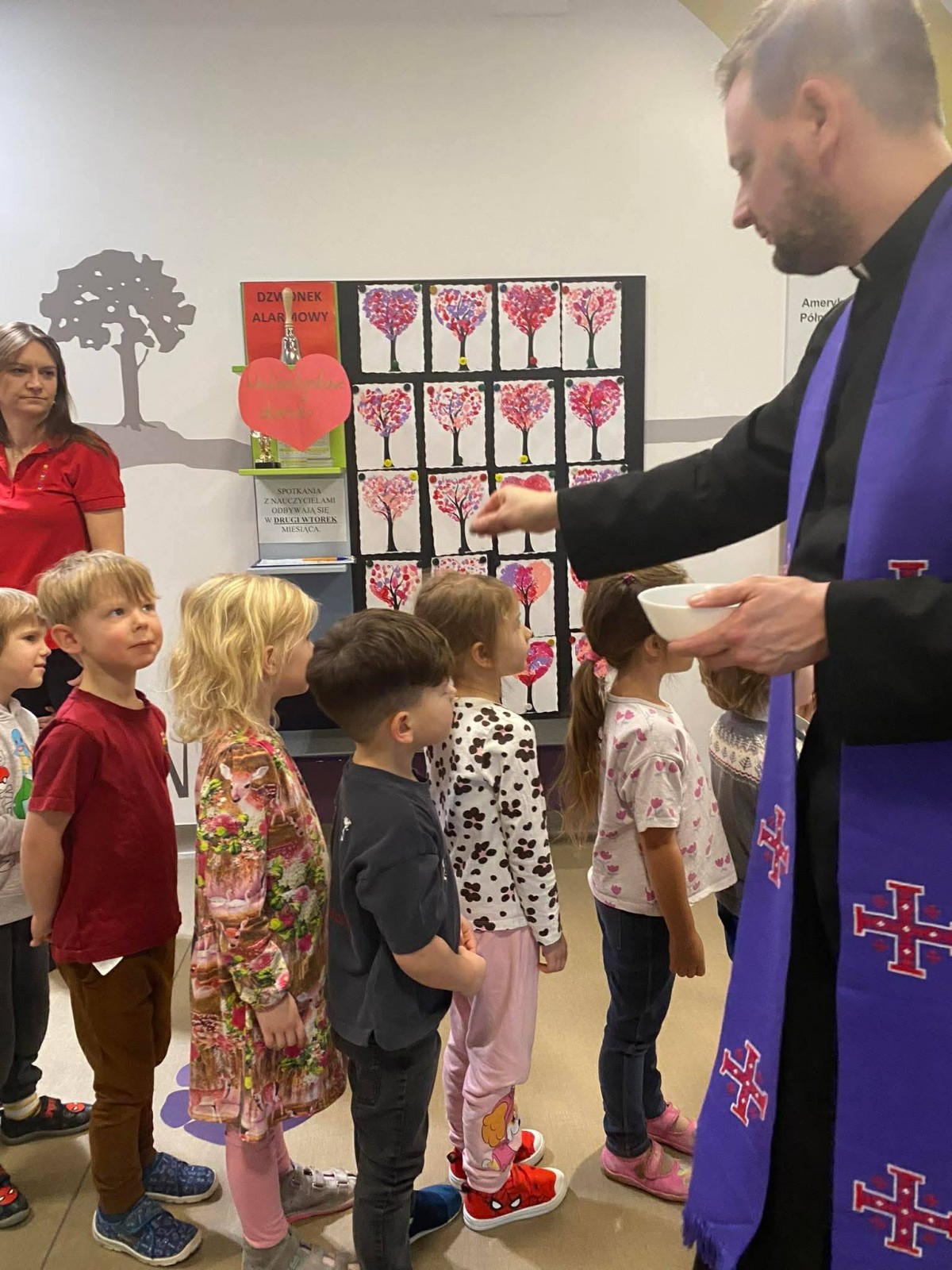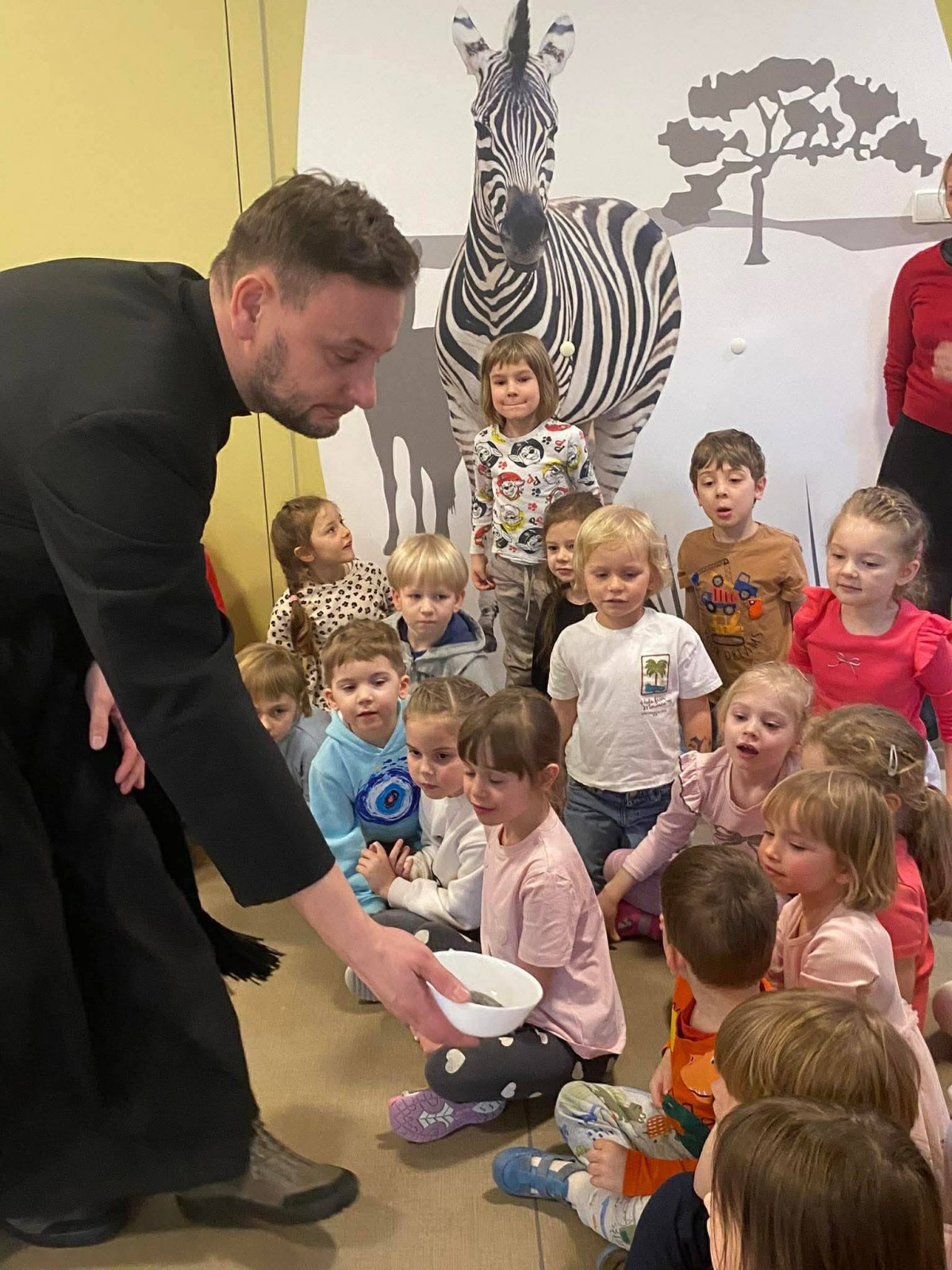 Dzisiaj w naszym przedszkolu obchodziliśmy Środę Popielcową. Ojciec Rafał odczytał fragment Ewangelii, która wprowadziła nas w nowy czas okresu liturgicznego- Wielki Post.Na znak rozpoczęcia okresu pokutnego nasze głowy zostały posypane popiołem. Przez post, modlitwę i jałmużnę przygotowujemy się do Zmartwychwstania Pańskiego.