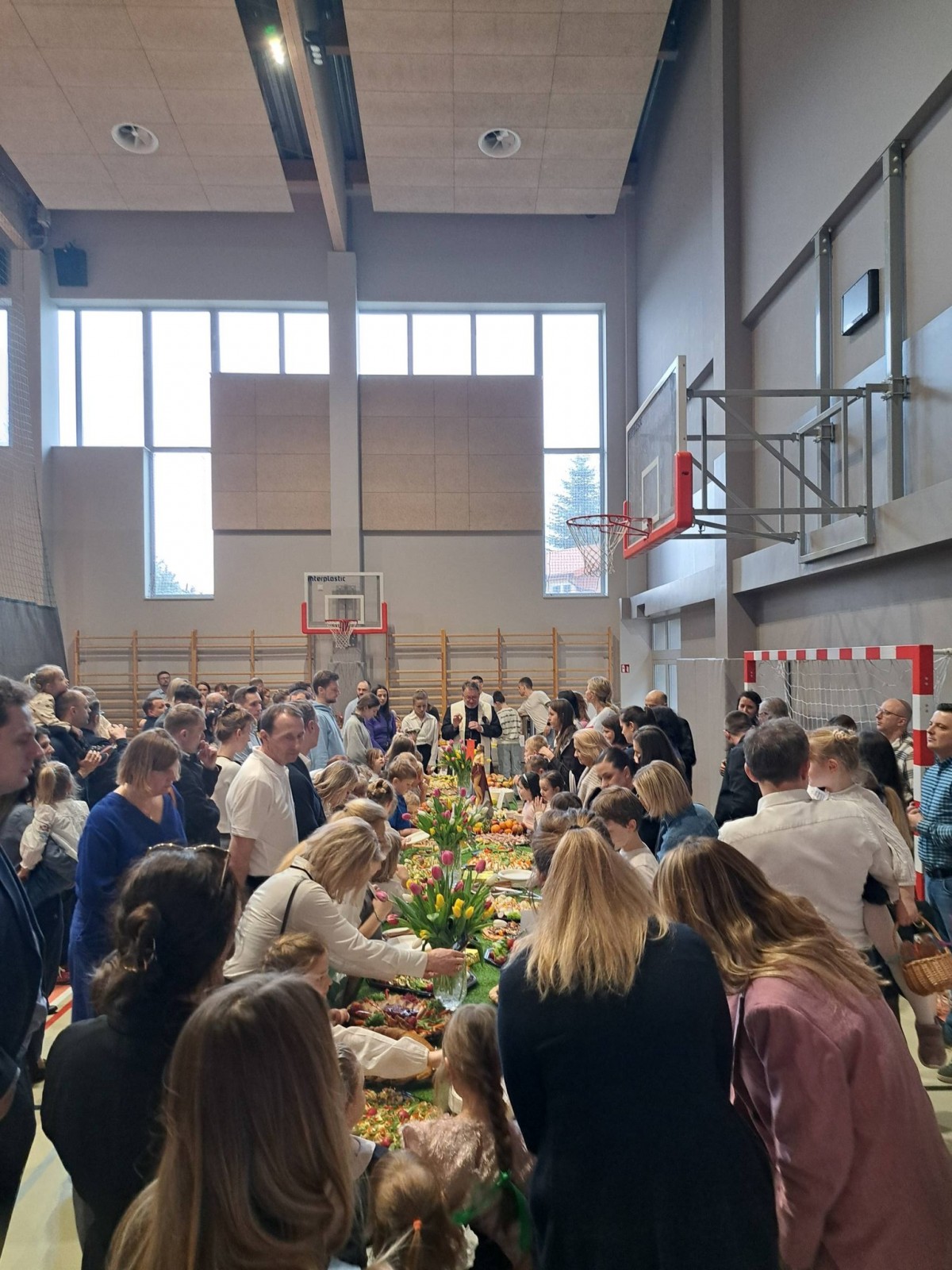 Wczoraj po południu gościła nas Pijarska Szkoła Podstawowa. O godzinie 15.00 całe Pijarskie Przedszkole z grupą żłobkową, Rodzice i Pracownicy Przedszkola zgromadziliśmy się w sali sportowej, aby podtrzymać naszą przedszkolną tradycję i przed Niedzielą Palmową wykonać wspólnie palmy. Po przywitaniu wszystkich przez Panią Dyrektor Ewę, grupy zabrały się do wykonania jednej wspólnej palmy. Powstałe palmy są piękne, kolorowe, wiosenne i bardzo radosne. Czujemy już Święta Wielkanocne. W najbliższą niedzielę Palmową o godzinie 16.00, każda grupa ze swoją Palmą w procesji wejdzie do kościoła Sanktuarium na Siekierkach. Niedzielą Palmową rozpoczniemy Wielki Tydzień a w nim Triduum Paschalne.Po wykonaniu palm w drugiej części sali czekał na wszystkich wielkanocny poczęstunek przygotowany przez naszych kucharzy. Po modlitwie i błogosławieństwie pokarmów przez Ojca Bogdana wspólnie świętowaliśmy. Dziękujemy wszystkim za włączenie się i pomoc w przygotowaniu tego świątecznego spotkania, które miało wyjątkowy charakter i pokazało, jak wiele radości może przynieść wspólne tworzenie i pielęgnowanie tradycji wielkanocnych.